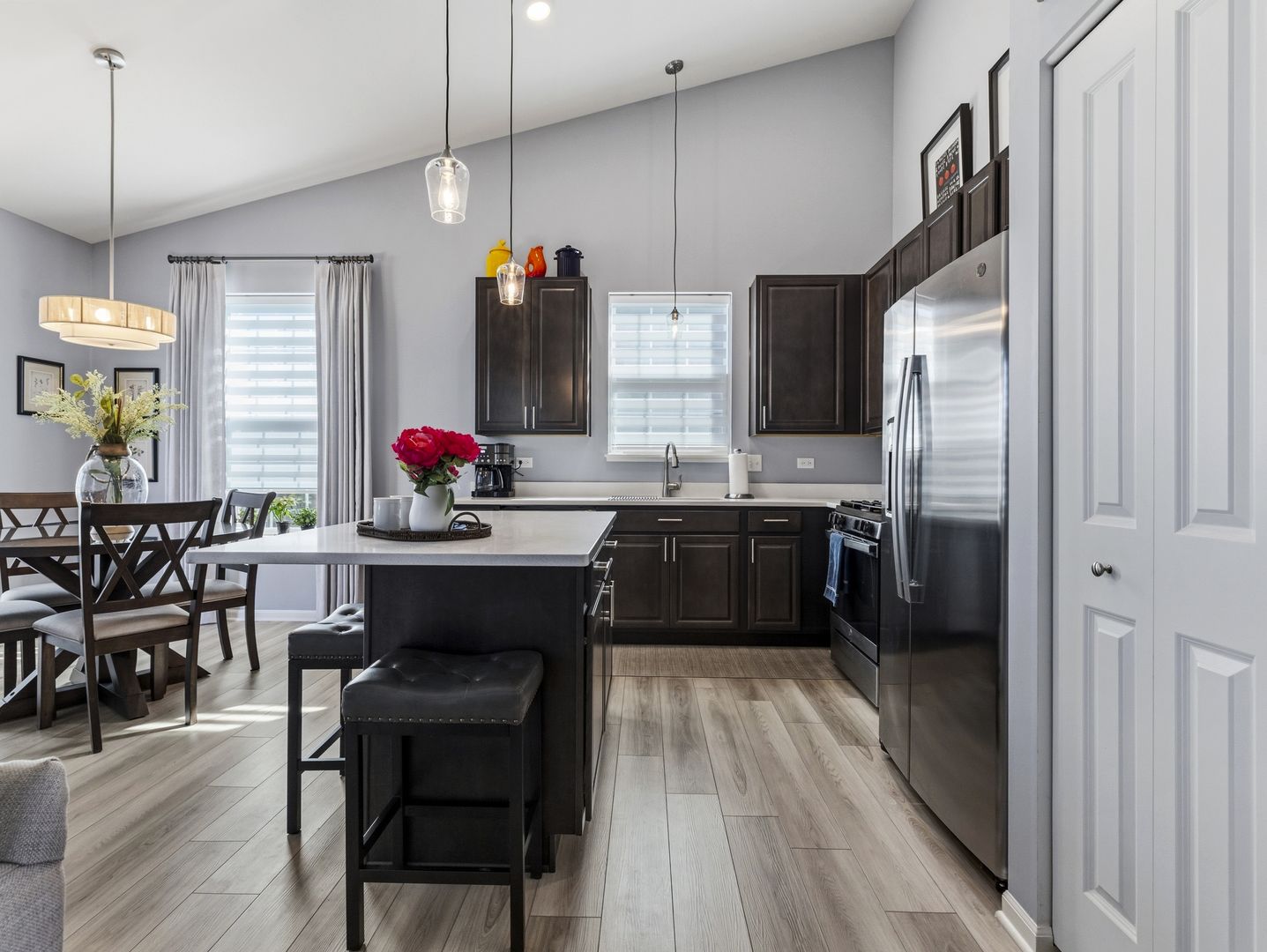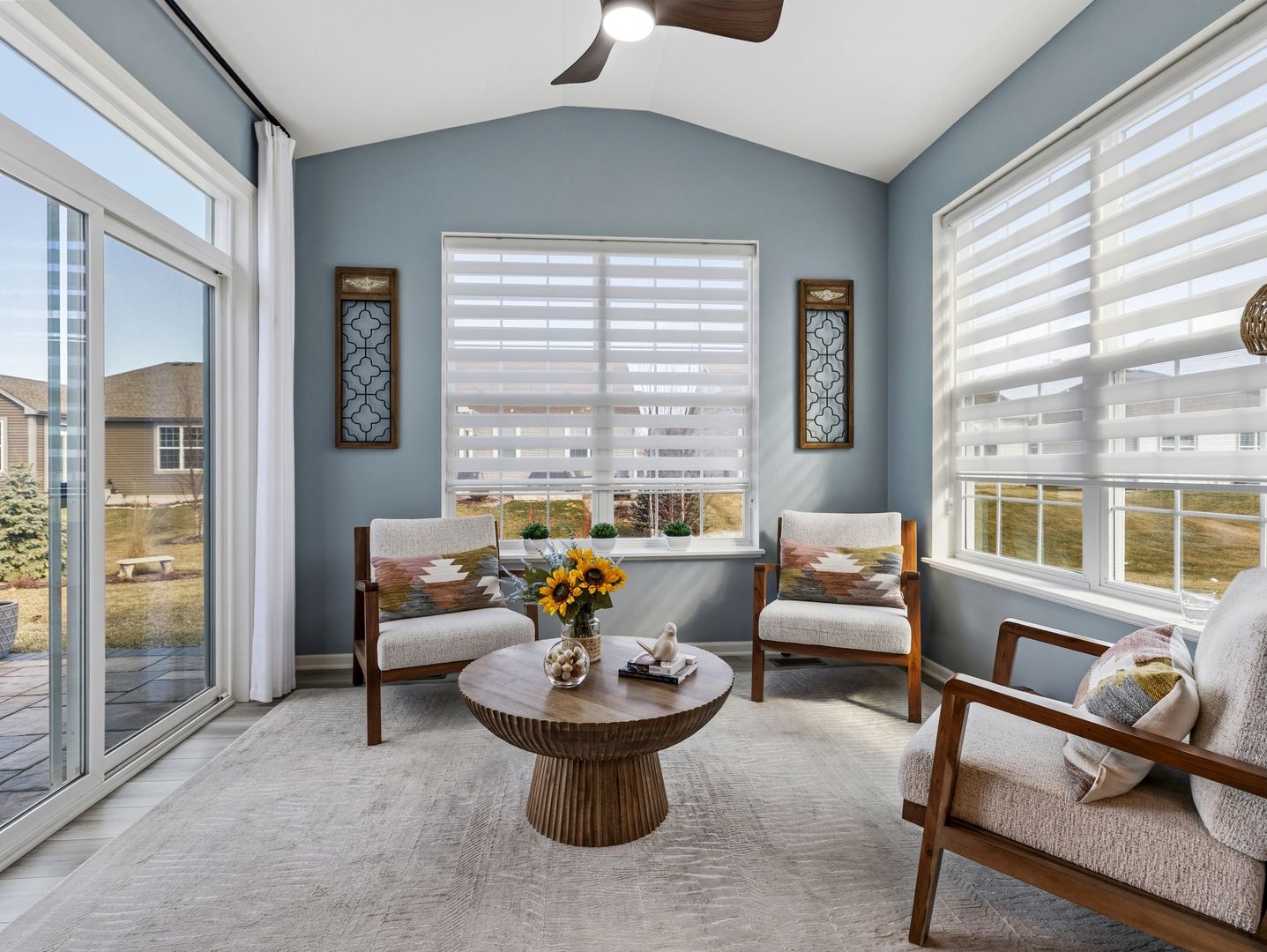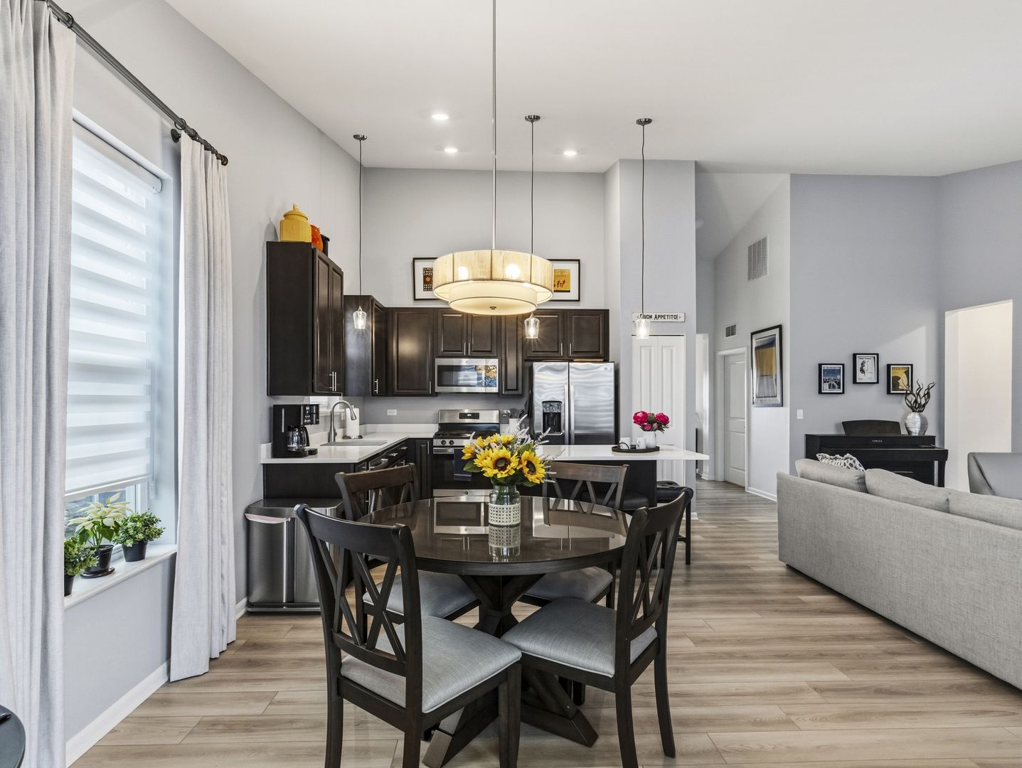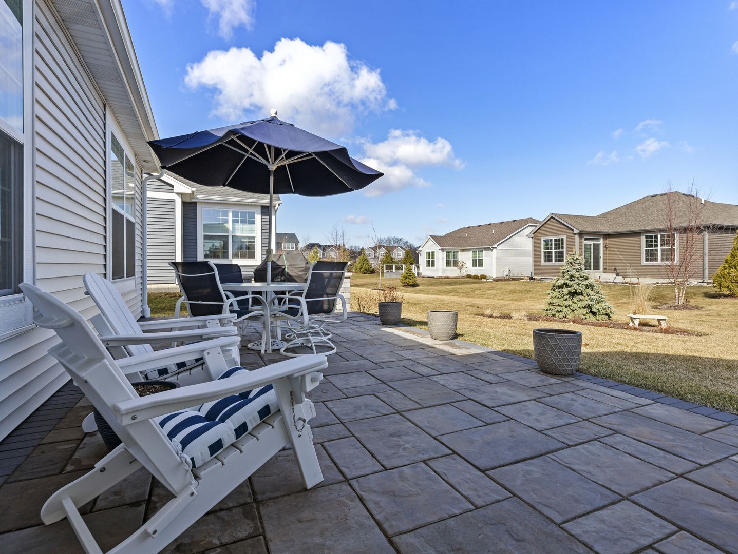 Enjoy easy living in this Florence model located in the sought-after 55+ community of Andare at Woodlore Estates. Step inside to an inviting open layout featuring wood-look luxury vinyl plank flooring throughout the living room, kitchen, and dining area-perfect for both everyday living and entertaining. Just off the main living space, the sunroom offers windows on three sides, filling the home with natural light and creating the perfect spot to relax. The gorgeous kitchen showcases Aristocrat dark brown birch cabinetry, quartz countertops, a large center island, pantry, and GE stainless steel appliances, combining style with everyday functionality. The spacious primary suite includes a walk-in closet and a private bath with a quartz vanity. Two additional bedrooms offer flexibility for guests or a home office, study, or den, while the convenient first-floor laundry adds everyday ease. Additional highlights include an oversized garage with custom shelving, new interior paint, new modern light fixtures, and a new custom paver patio-perfect for outdoor relaxation or entertaining. Quality craftsmanship is evident throughout with features such as a Wi-Fi Honeywell thermostat, Ring doorbell, whole-home Wi-Fi coverage with no dead spots, Schlage smart locks, and a 4-foot garage extension. If you're ready to simplify life while enjoying resort-style amenities, this is the perfect place. Residents enjoy access to the Andare Clubhouse, featuring a fitness center, meeting room, stunning great room, outdoor patio with fire pit, walking paths, bocce ball, pickleball courts, and a picnic pavilion. The surrounding Woodlore Estates community also offers scenic ponds, walking paths, and acres of park space for outdoor recreation. Conveniently located just off Rt. 31 north of Rt. 176, you'll be close to shopping, healthcare, restaurants, and the Metra, while also enjoying everything the Crystal Lake Park District has to offer.