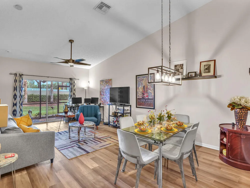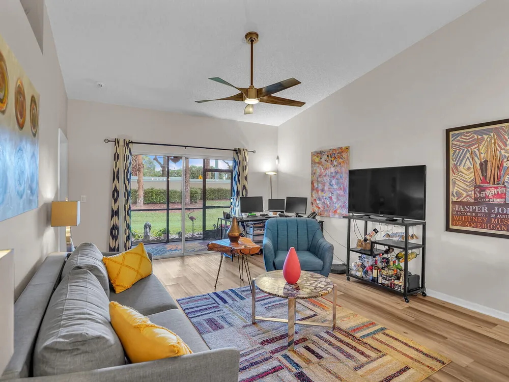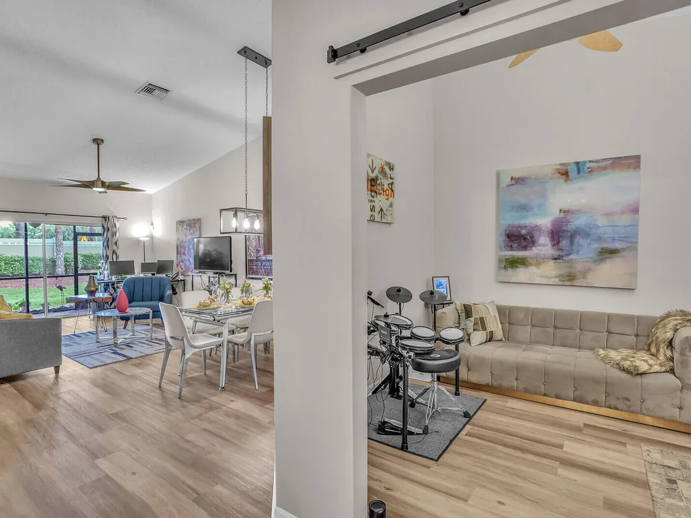 ''HOME SWEET HOME''. THIS PERFECT VILLA HAS AN OPEN FLOOR PLAN, HIGH VOLUME CEILINGS, 2 BEDROOMS PLUS A DEN! NEWER APPLIANCES, FRESHLY PAINTED CABINETS, NEW FINISHES ON COUNTERTOPS, NEW MODERN HARDWARE, NEW KITCHEN SINK, NEW WATER FILTER, CUSTOM BARN DOOR DEN/BEDROOM, NEW BATHROOM FLOOR & NEW UPDATES, ELECTRONIC SMART ENTRY SYSTEM. THIS VILLA IS A MUST SEE! SCREENED IN LANAI WITH LUSH GREENERY & GORGEOUS LANDSCAPING. GREAT NEIGHBORS! SOCIAL! TUSCANY BAY IS A 55+ PET FRIENDLY ACTIVE EAST COMMUNITY. PARTIES, CLUBS, EVENTS, GYM, EXERCISE CLASSES IN THE NEW EXPANDED STUDIO, 3 PICKLEBALL NEW COURTS, OCT FINISH, TENNIS, LEAGUE & SOCIAL PLAY, BOCCE BALL, PUTTING GREEN, SPA POOL, VERANDA IN SEASON BARBEQUES OCT-MAY, ALL CARD/MAJHONG GAMES. CLOSE TO ALL BEACHES, WHOLE FOODS & MORE. LOOK NO FURTHUR