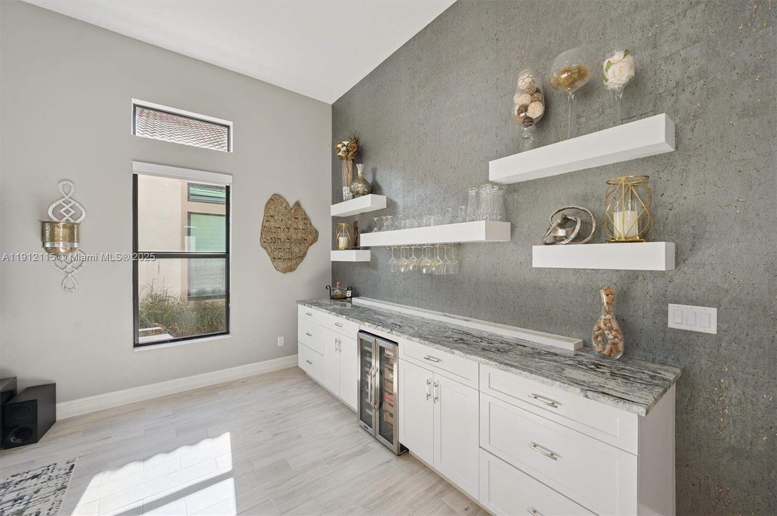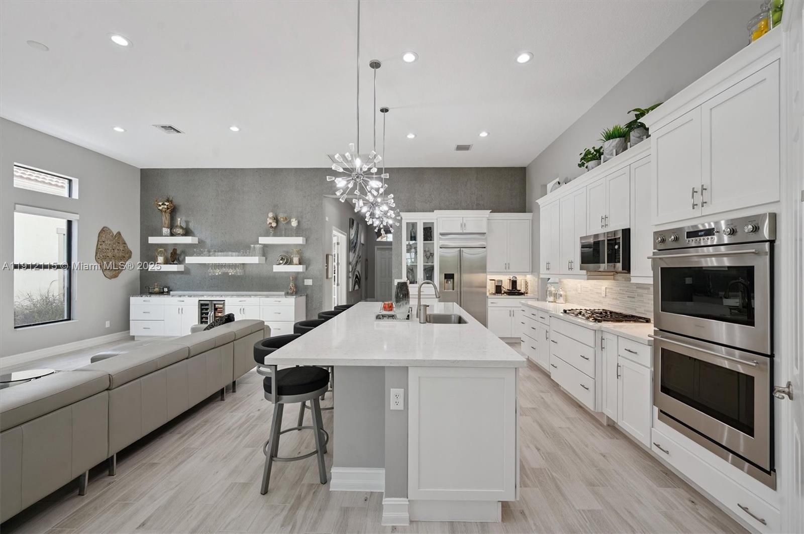 Experience sophisticated living in Four Seasons Parkland. This rare Everett model offers the ultimate in privacy and serenity, backing to a lush preserve with exceptional indoor-outdoor flow. The chef’s kitchen shines with GE Monogram appliances, gas range, built-in refrigerator, and custom cabinetry. Entertain effortlessly with a formal dining area and designer granite bar featuring wine display and accent lighting. Expansive living spaces open seamlessly to the outdoors and a versatile flex room (3rd bedroom, office, or media lounge). With two private suites, 2.5 baths, new washer/dryer, extended garage, and elegant finishes, this home epitomizes refined 55+ living with resort amenities, lush grounds, and 24-hour security.
