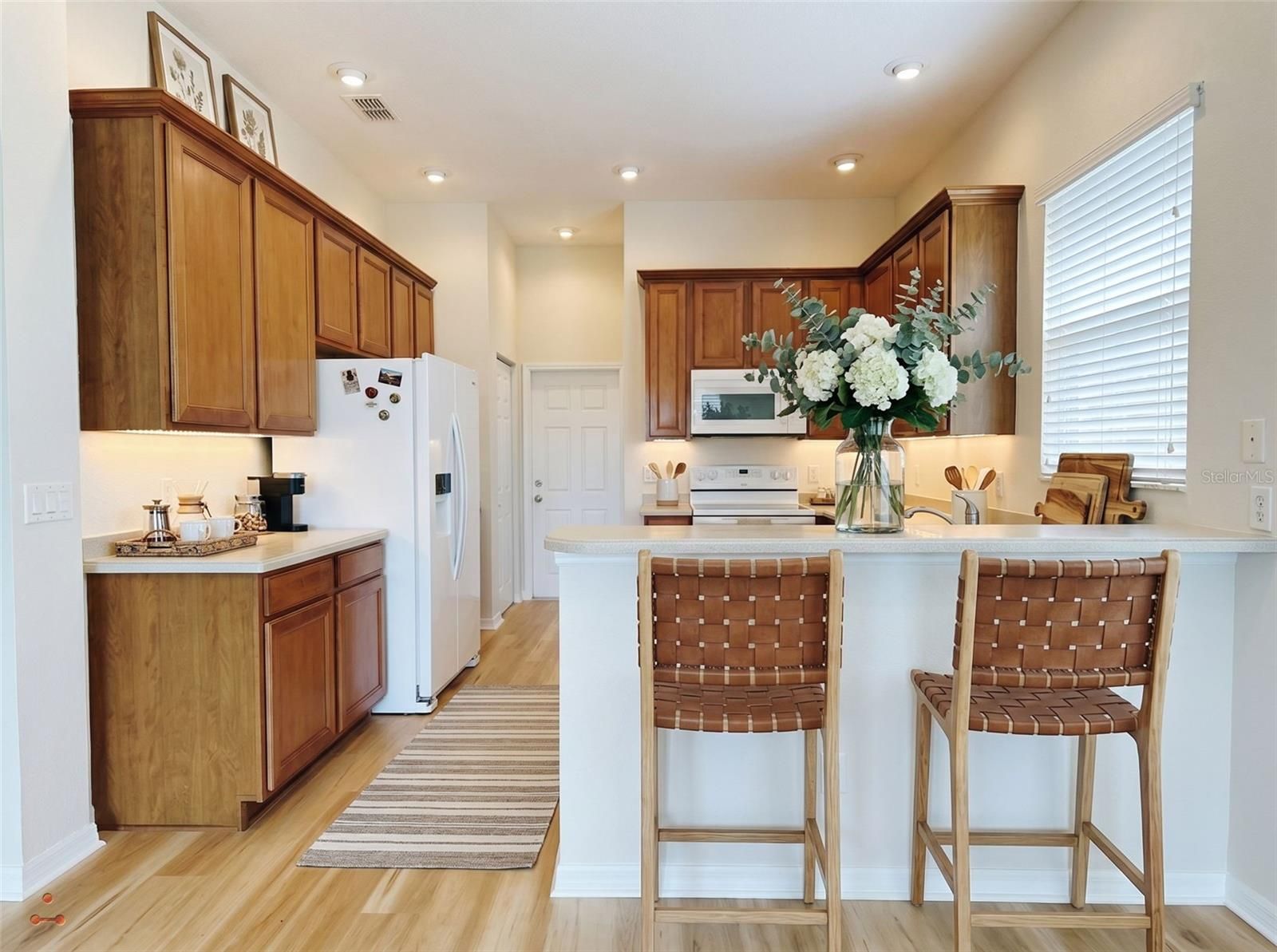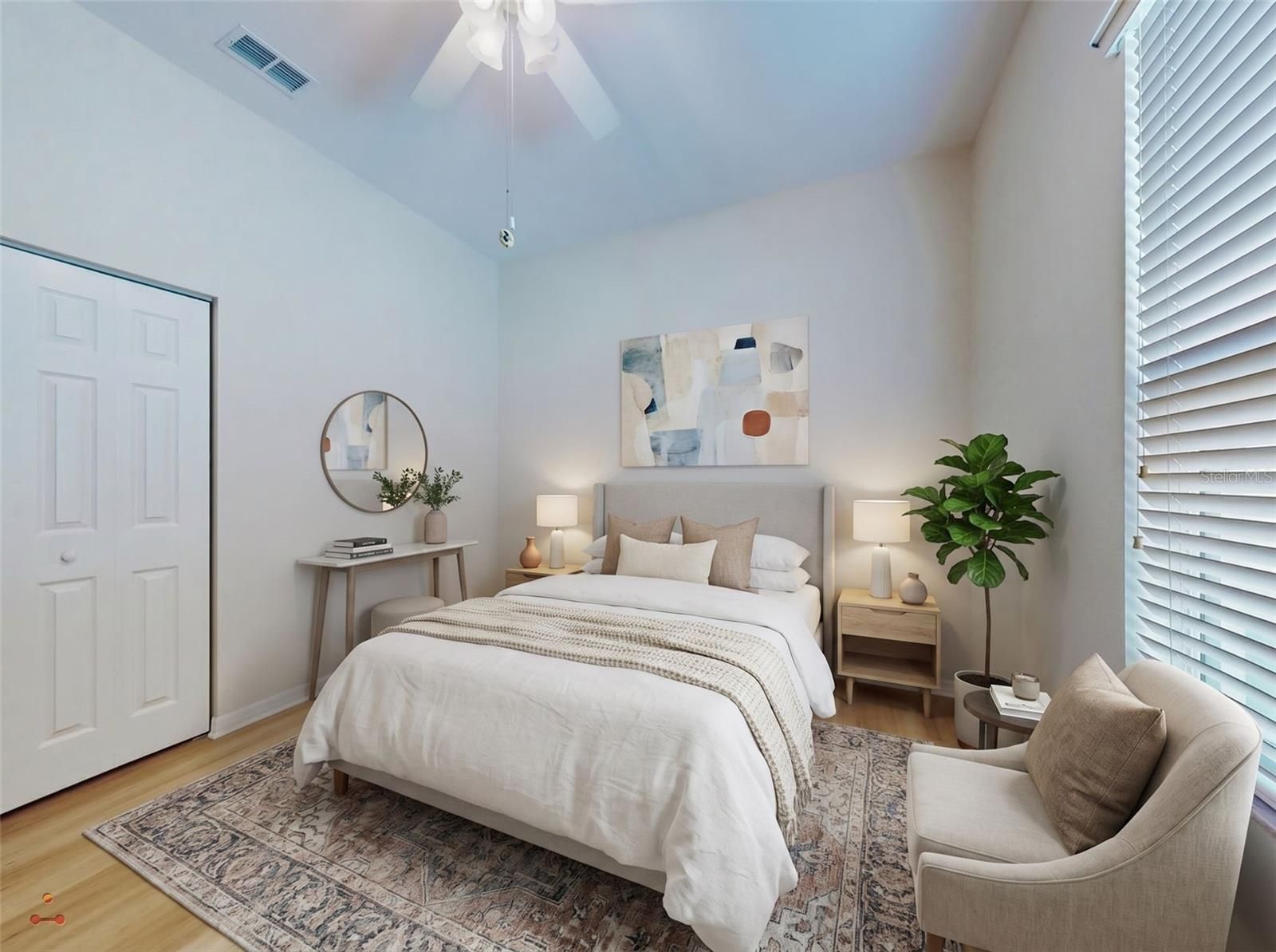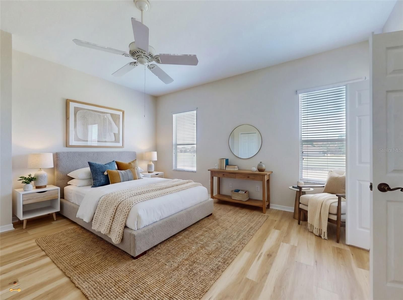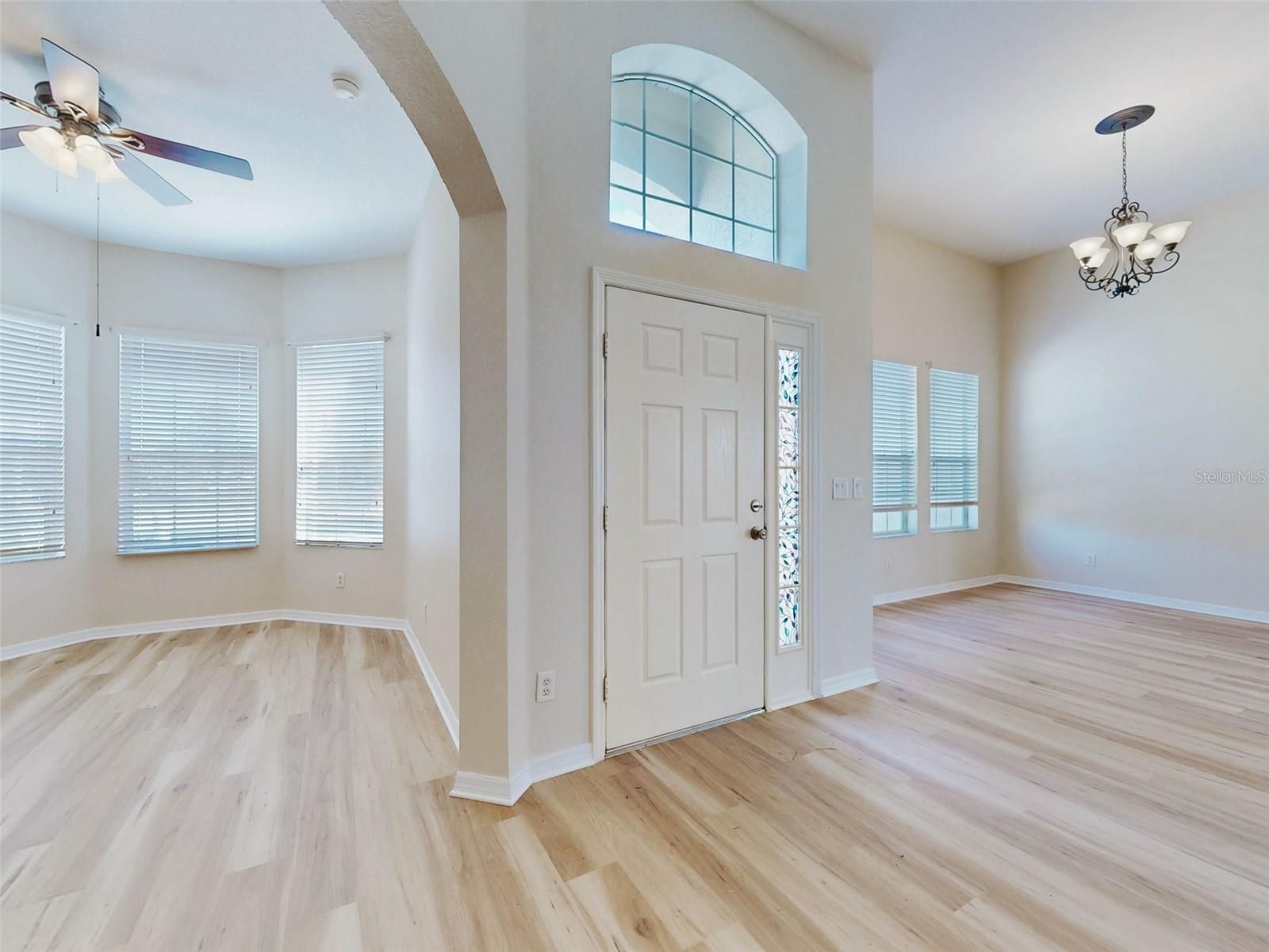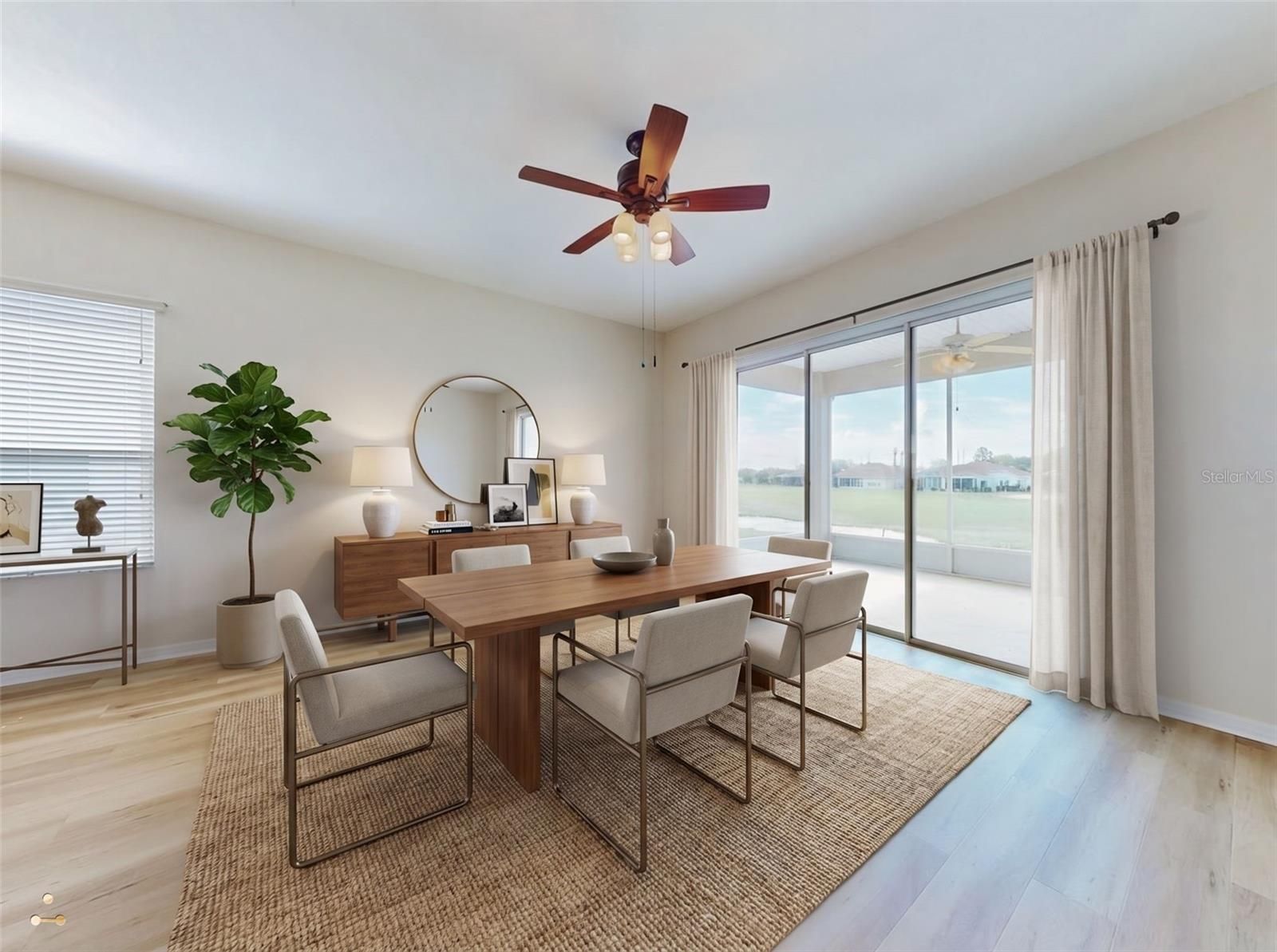 One or more photo(s) has been virtually staged. One or more photos has been virtually staged. Stonecrest - This newly updated home is located on the 8th hole of the Stonecrest Championship Golf Course. This home has been completely updated with a new roof (2025) HVAC (2024) tankless water heater (2021), new vinyl plank flooring throughout and newly painted both interior and exterior. The kitchen has new appliances (2023) and 42 inch cabinets. The spacious floor plan features 10 foot ceilings and split bedroom plan. The primary suite features walk-in closet, ensuite bath with dual vanities, sunken tub, shower and separate water closet. The guest bath has a tub with shower. The third bedroom is currently being used as a home office. The living room has glass sliders that open to a screened patio overlooking the golf course. Stonecrest is a golf course community offering a wide varity of activities and amenities including 3 outdoor pools, an all weather enclosed pool, spa, fitness center, restaurant, community activity center and so much more. A golf cart ride to The Villages.