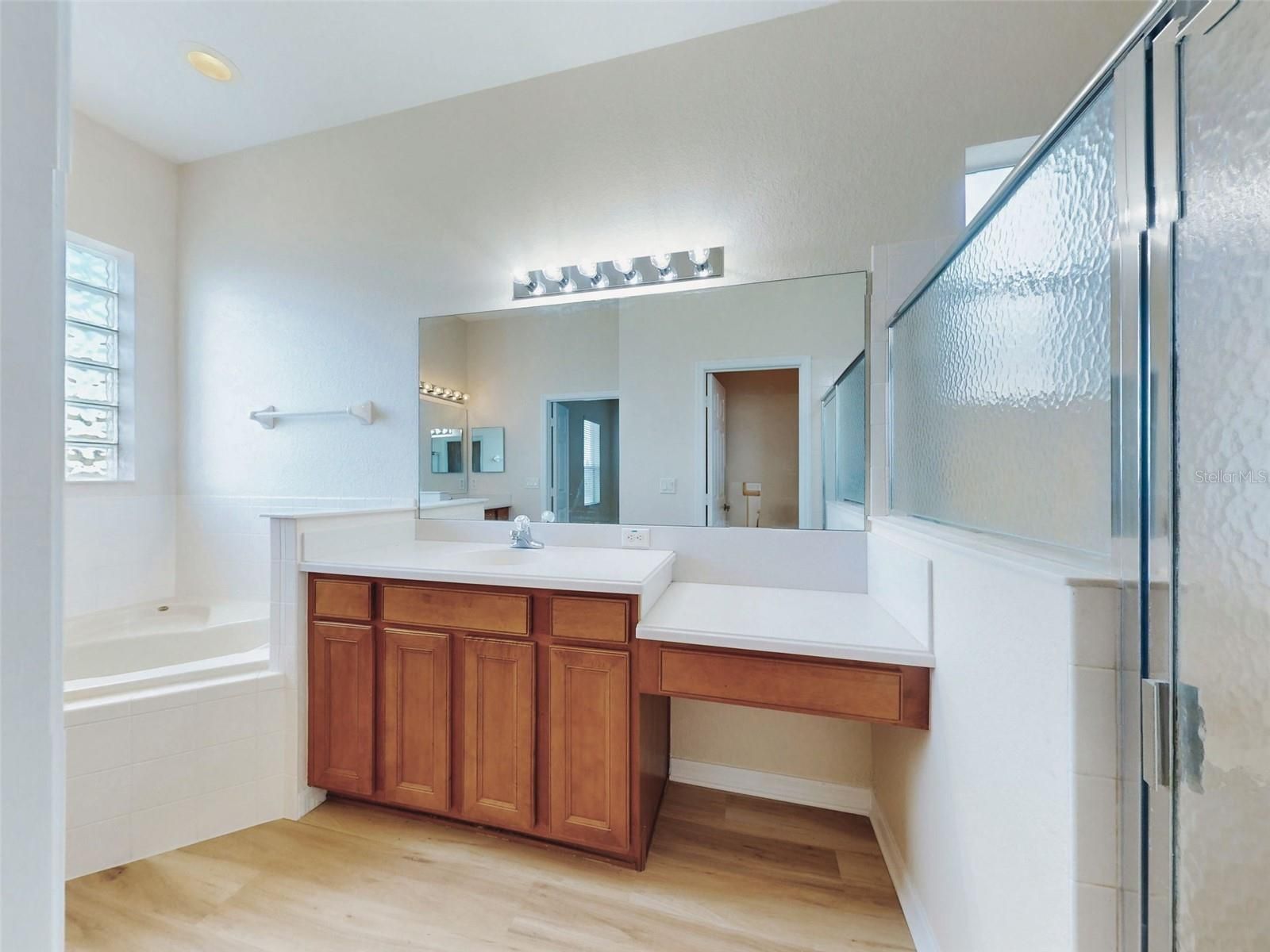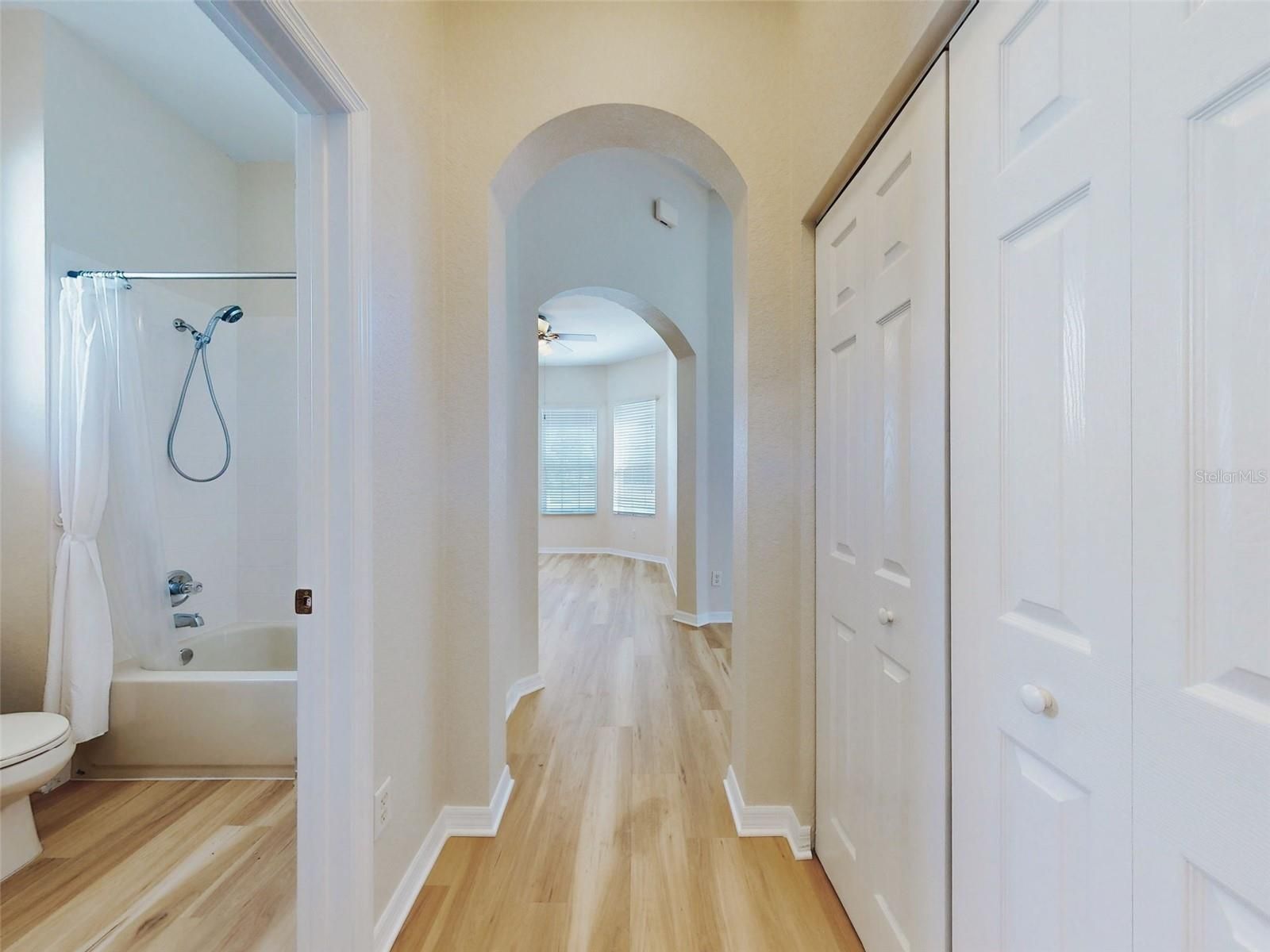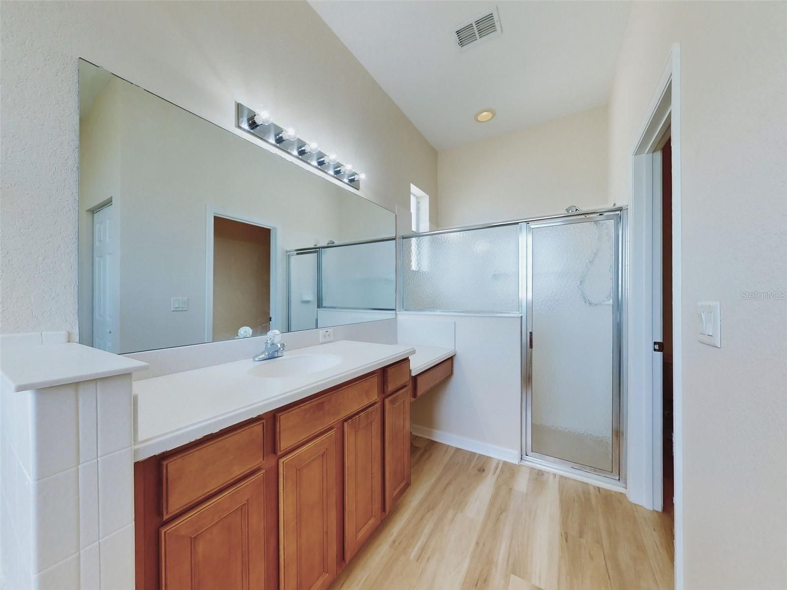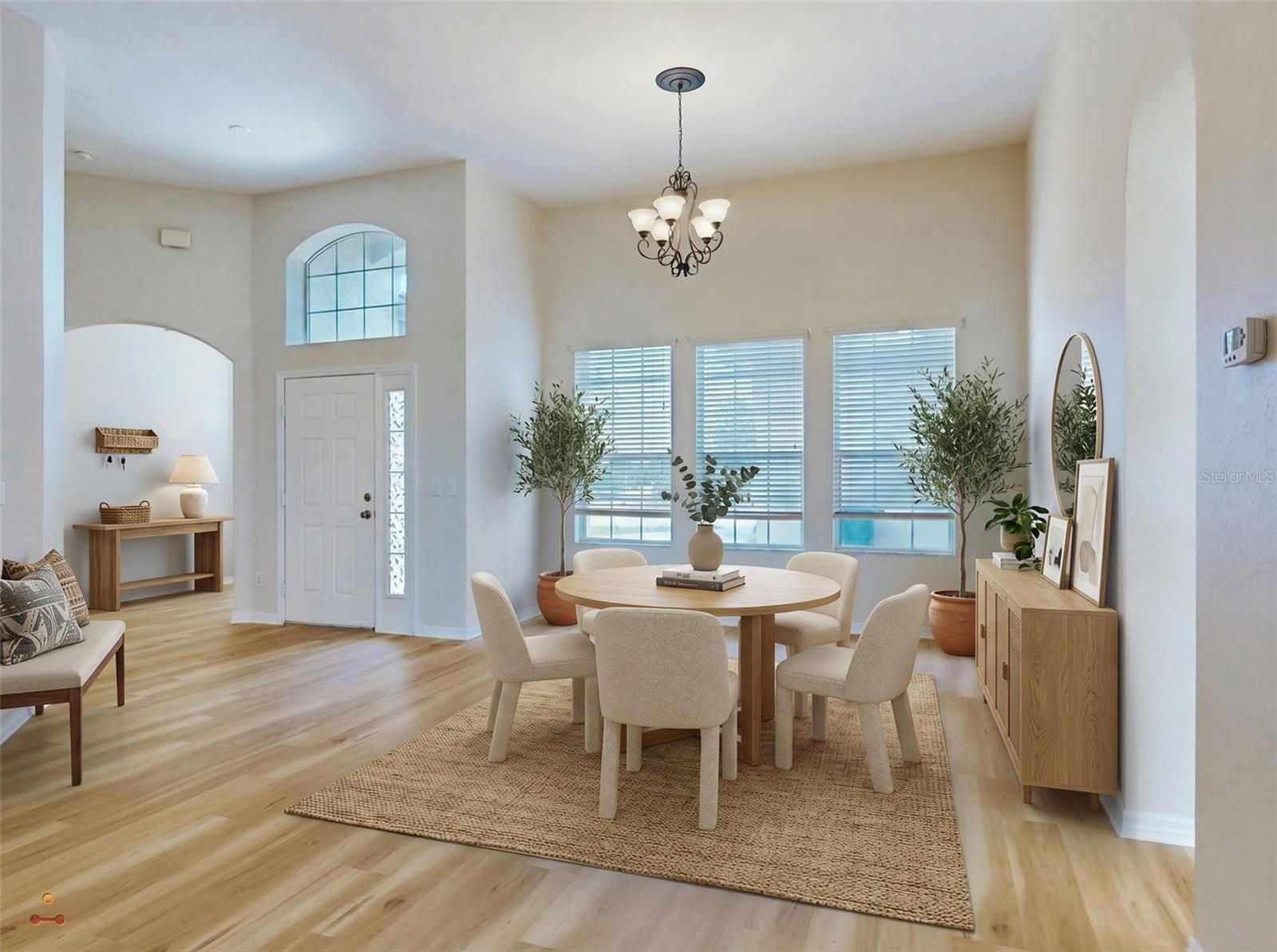 One or more photo(s) has been virtually staged. One or more photos has been virtually staged. Stonecrest - This newly updated home is located on the 8th hole of the Stonecrest Championship Golf Course. This home has been completely updated with a new roof (2025) HVAC (2024) tankless water heater (2021), new vinyl plank flooring throughout and newly painted both interior and exterior. The kitchen has new appliances (2023) and 42 inch cabinets. The spacious floor plan features 10 foot ceilings and split bedroom plan. The primary suite features walk-in closet, ensuite bath with dual vanities, sunken tub, shower and separate water closet. The guest bath has a tub with shower. The third bedroom is currently being used as a home office. The living room has glass sliders that open to a screened patio overlooking the golf course. Stonecrest is a golf course community offering a wide varity of activities and amenities including 3 outdoor pools, an all weather enclosed pool, spa, fitness center, restaurant, community activity center and so much more. A golf cart ride to The Villages.