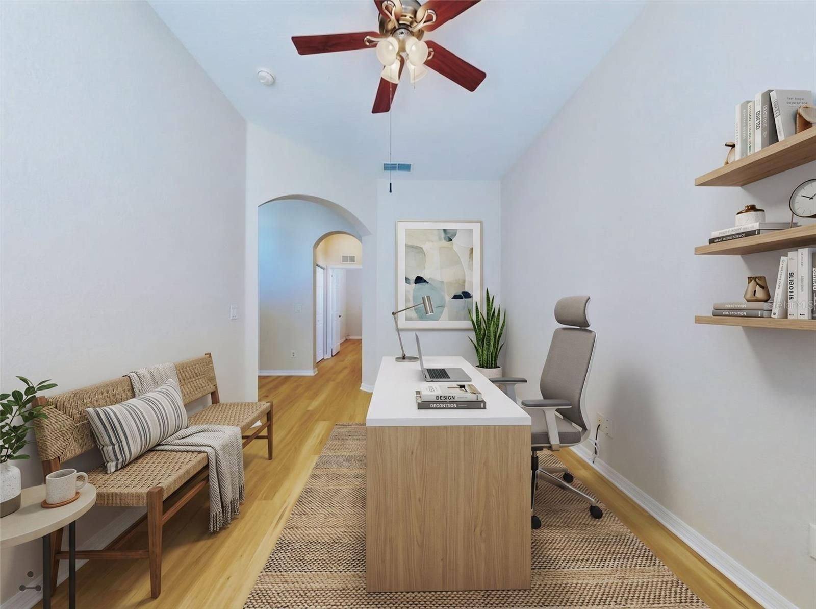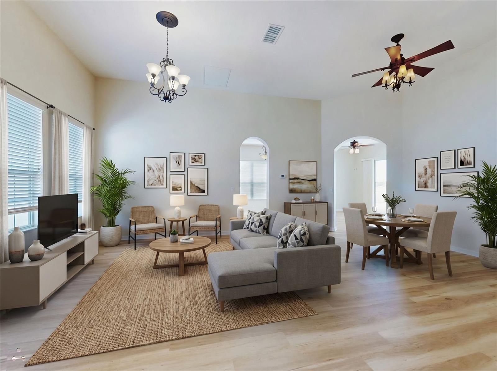 - Ceiling Fan(s), High Ceilings, Open Floorplan, Split Bedrooms, Walk-In Closet(s), Window Treatments