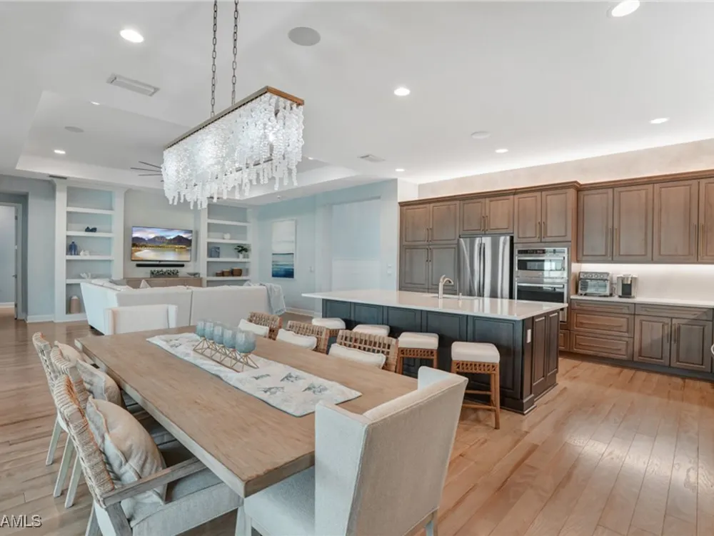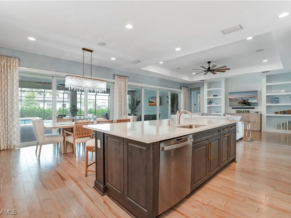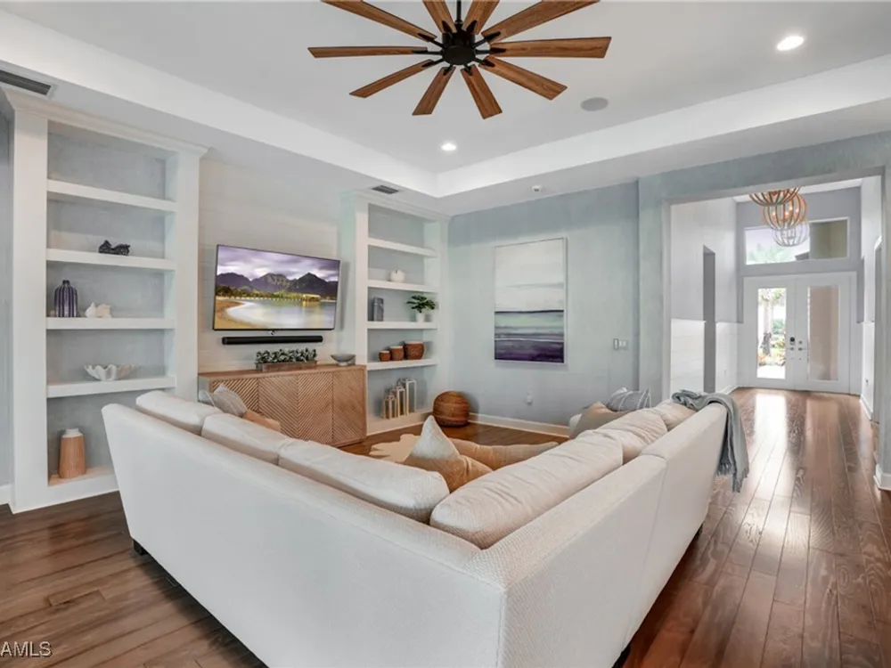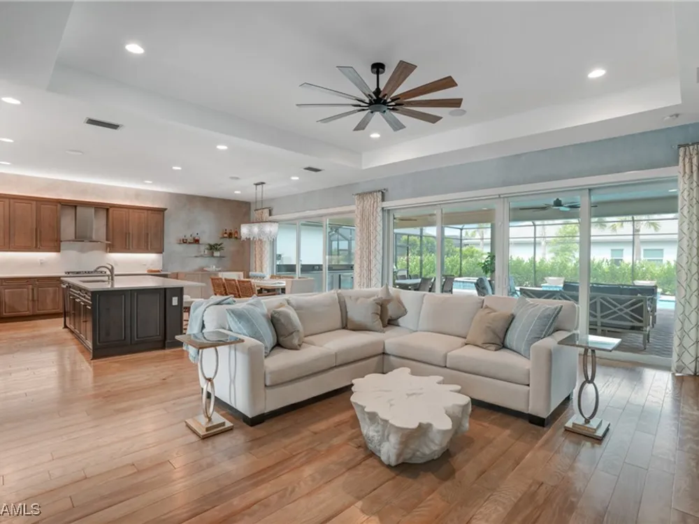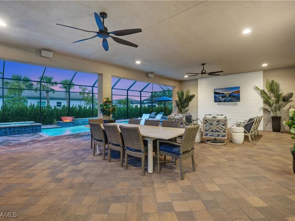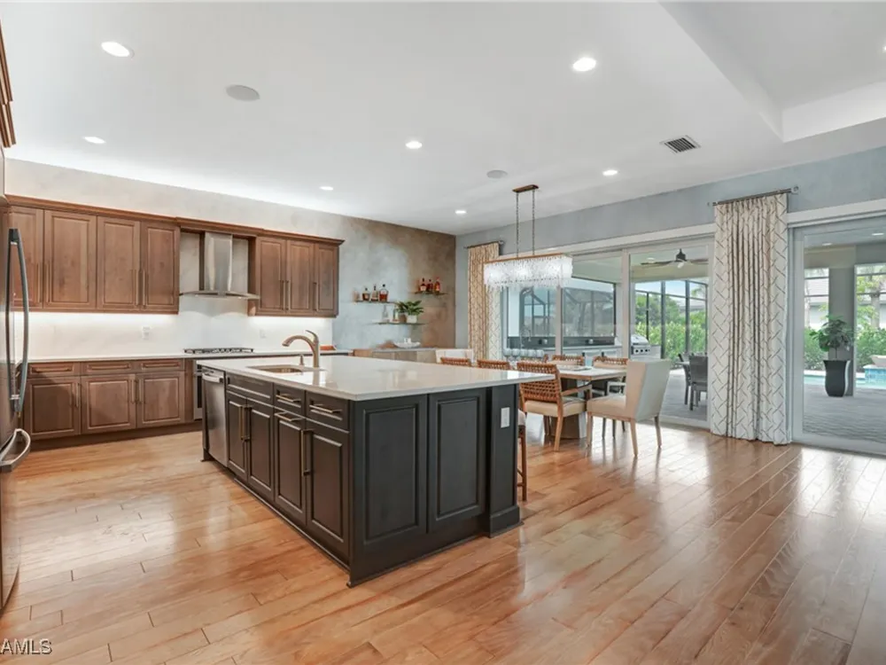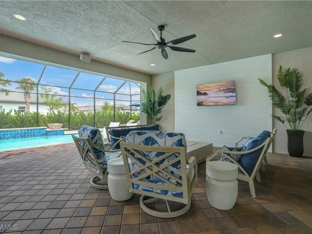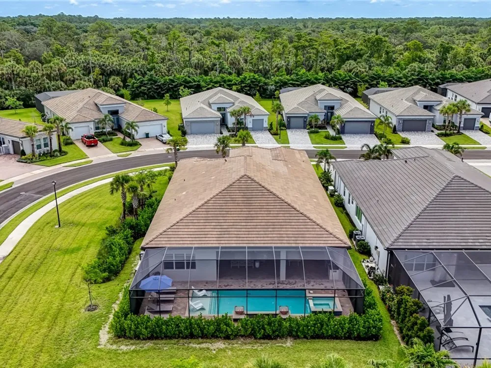 Discover unparalleled luxury in Naples' premier 55+ community, Valencia Trails, with this exquisite Captiva floorplan home, a highly sought-after design by GL Homes. Built in 2023, this newly constructed residence boasts professional decor and nearly every premium builder upgrade available. Situated on one of the largest lots in the community—nearly half an acre—this corner property on a private cul-de-sac street offers both space and serenity. The renowned Valencia Trails clubhouse is just a short stroll around the corner. This expansive home features 4 bedrooms, each with its own en suite bathroom, plus an additional half guest bath for ultimate convenience. Car enthusiasts will appreciate the air-conditioned, extended-length 3-car garage, perfect for your collection. Step outside to the iconic Captiva covered lanai, measuring an impressive 37 x 22 feet, complete with a state-of-the-art summer kitchen and exceptional outdoor living space. The custom saltwater pool and spa create a refreshing daytime oasis and transform into a dazzling nighttime retreat with a lighted spa waterfall and elegant spill-over bowls. Valencia Trails is equipped with natural gas, and this home includes a natural gas cooktop, water tank, and pool heater for added efficiency and comfort.