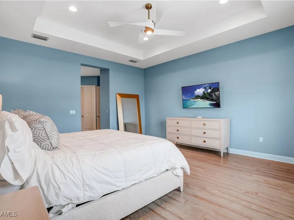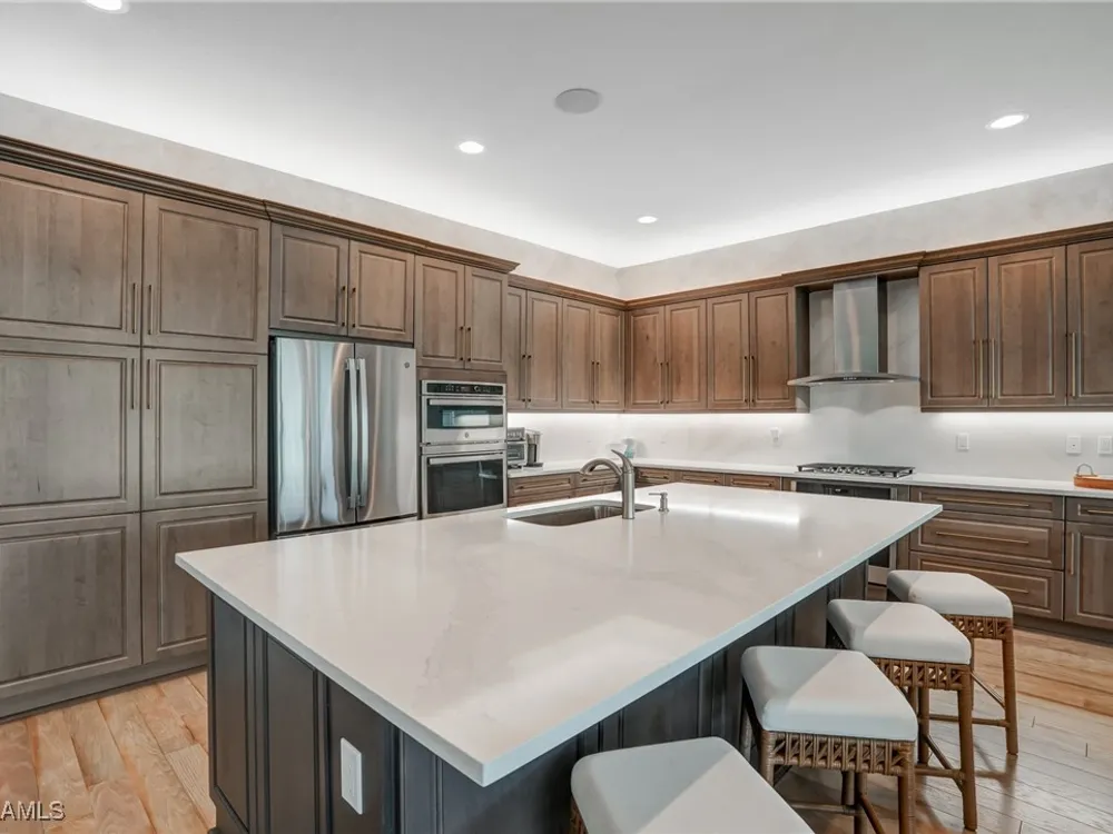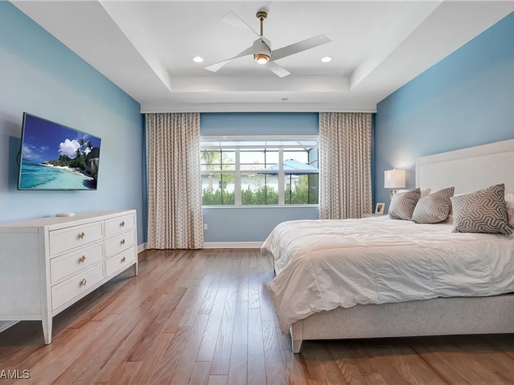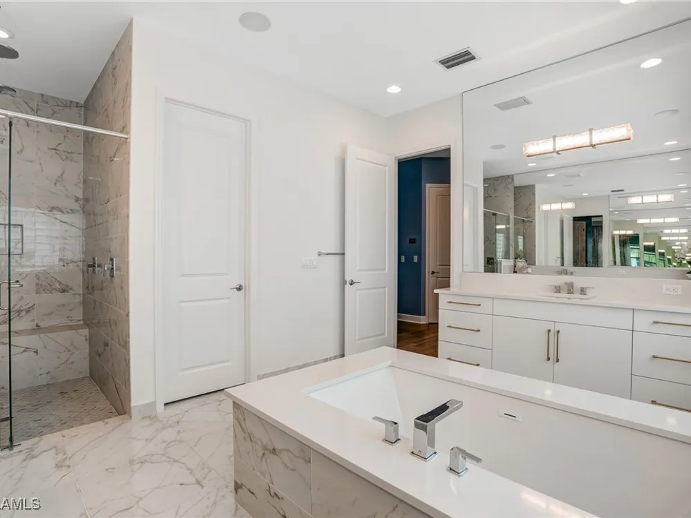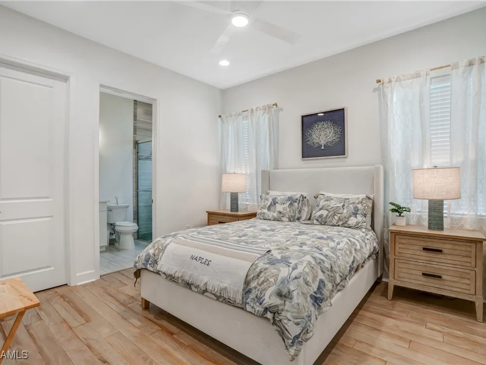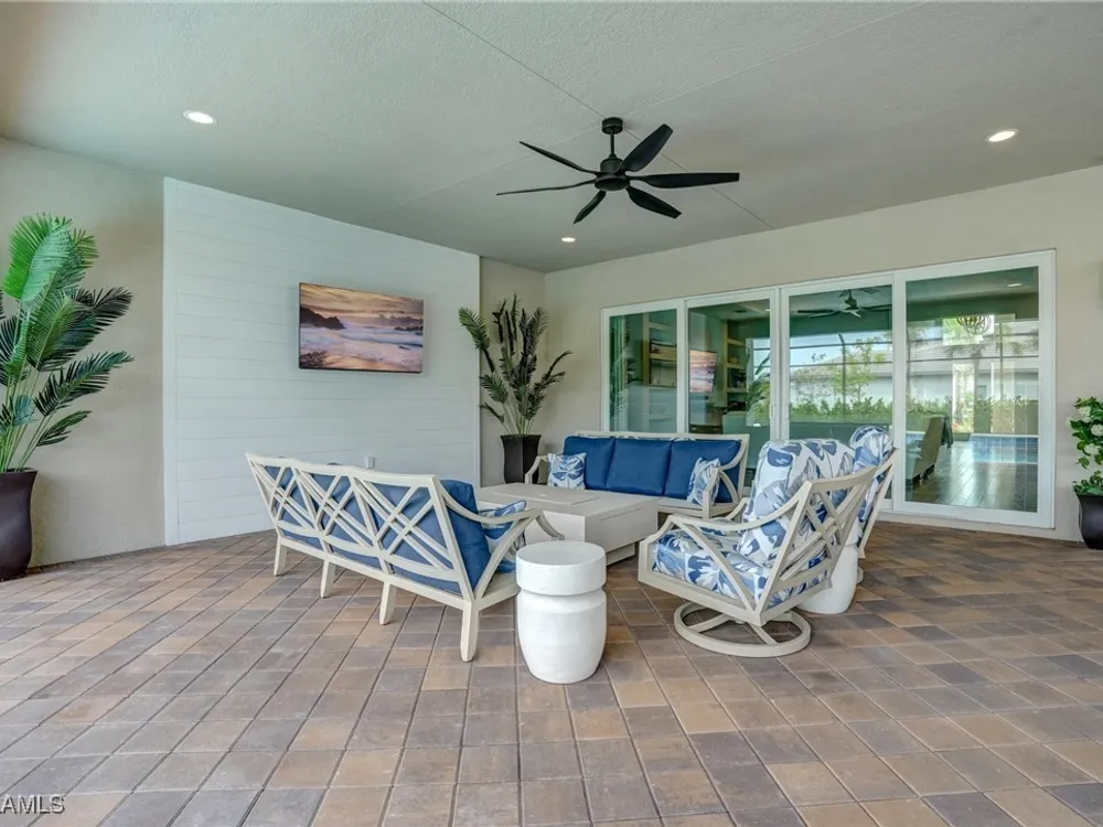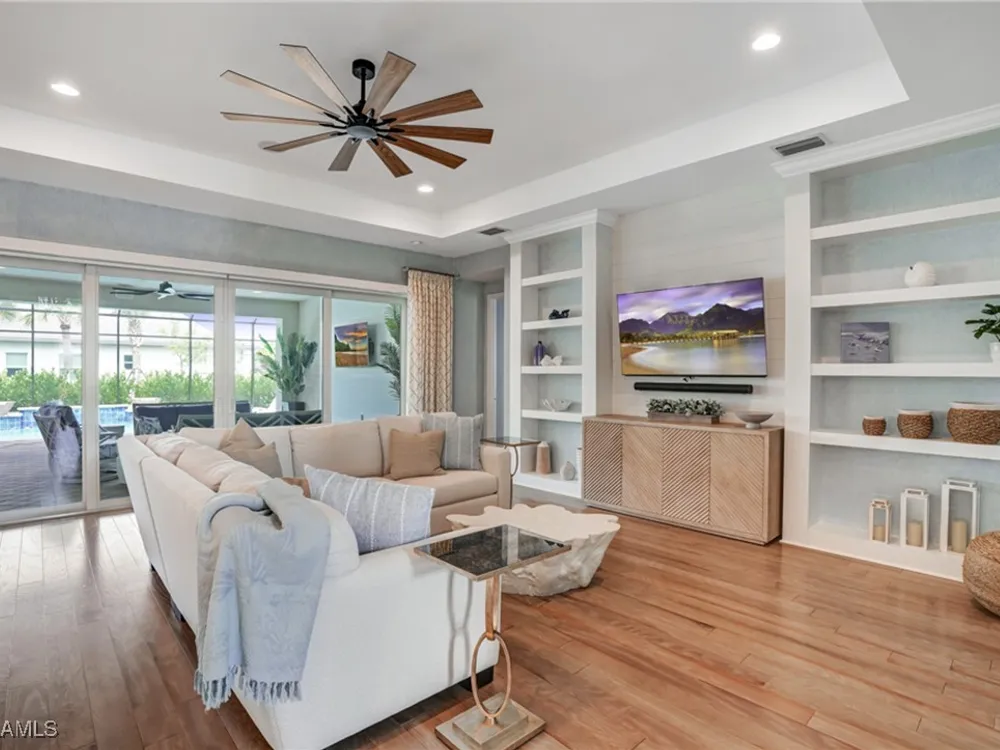 Discover unparalleled luxury in Naples' premier 55+ community, Valencia Trails, with this exquisite Captiva floorplan home, a highly sought-after design by GL Homes. Built in 2023, this newly constructed residence boasts professional decor and nearly every premium builder upgrade available. Situated on one of the largest lots in the community—nearly half an acre—this corner property on a private cul-de-sac street offers both space and serenity. The renowned Valencia Trails clubhouse is just a short stroll around the corner. This expansive home features 4 bedrooms, each with its own en suite bathroom, plus an additional half guest bath for ultimate convenience. Car enthusiasts will appreciate the air-conditioned, extended-length 3-car garage, perfect for your collection. Step outside to the iconic Captiva covered lanai, measuring an impressive 37 x 22 feet, complete with a state-of-the-art summer kitchen and exceptional outdoor living space. The custom saltwater pool and spa create a refreshing daytime oasis and transform into a dazzling nighttime retreat with a lighted spa waterfall and elegant spill-over bowls. Valencia Trails is equipped with natural gas, and this home includes a natural gas cooktop, water tank, and pool heater for added efficiency and comfort.
