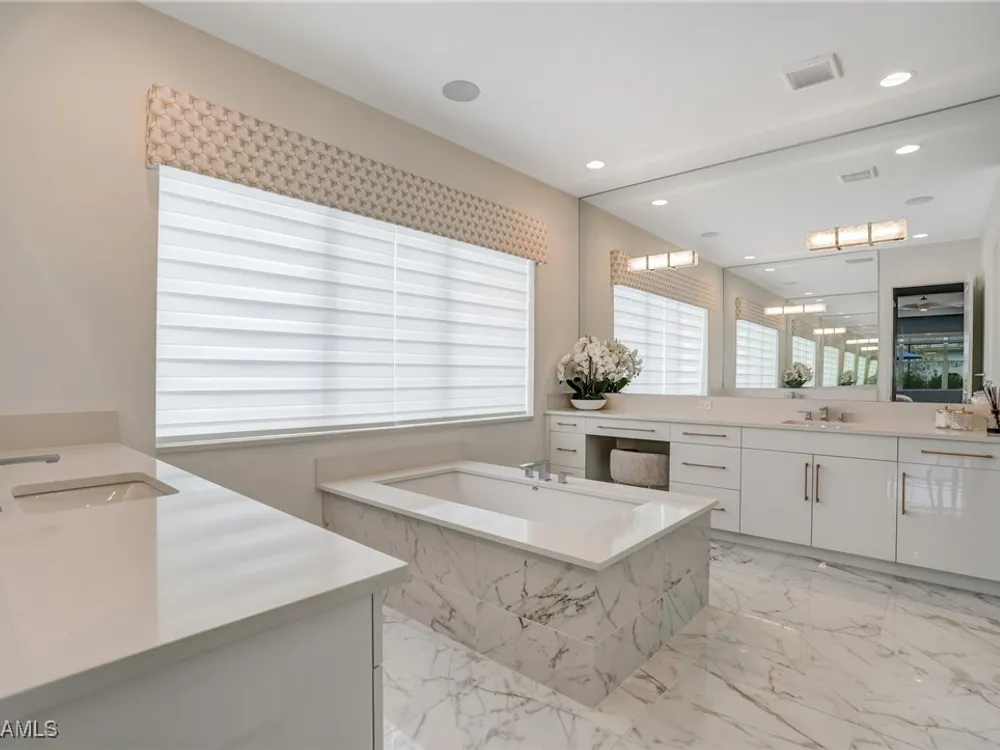 - Built-in Features, Bathtub, Tray Ceiling(s), Closet Cabinetry, Coffered Ceiling(s), Dual Sinks, Entrance Foyer, French Door(s)/Atrium Door(s), High Ceilings, Living/Dining Room, Multiple Shower Heads, Custom Mirrors, Pantry, Separate Shower, Cable TV, Walk-In Closet(s), Wired for Sound, Window Treatments, High Speed Internet, Home Office, Split Bedrooms