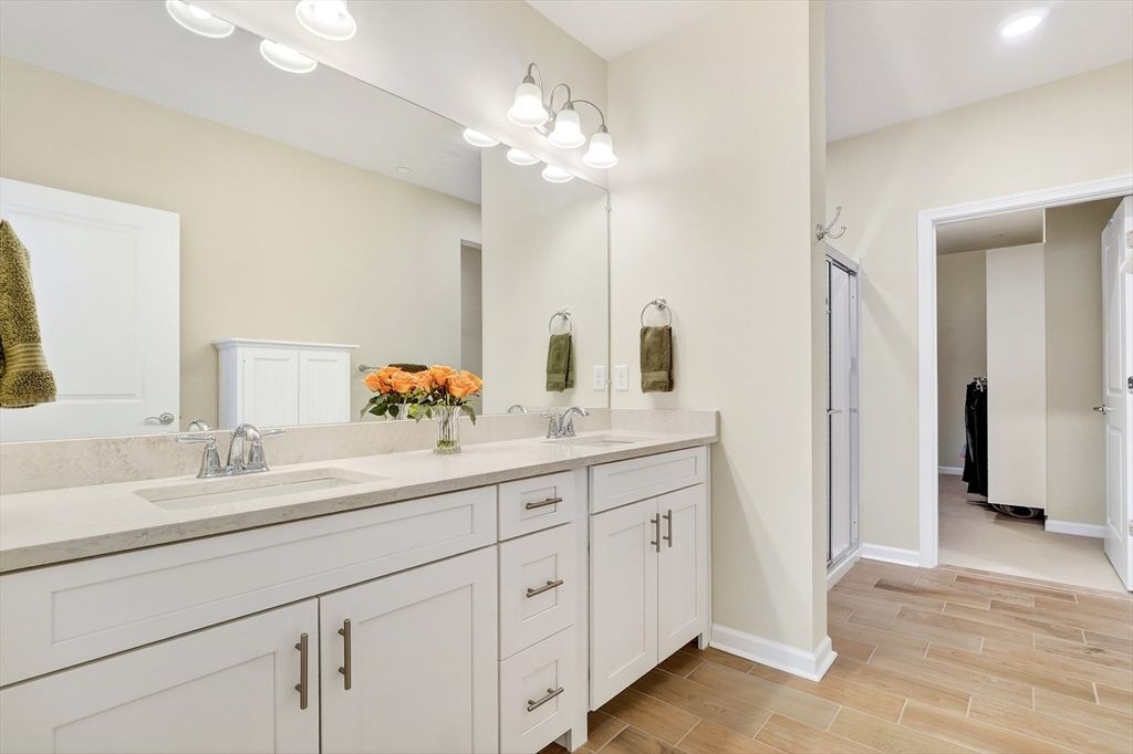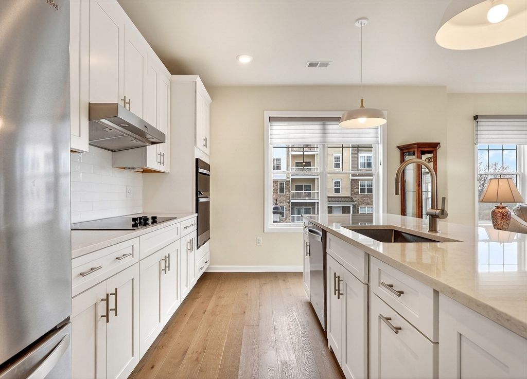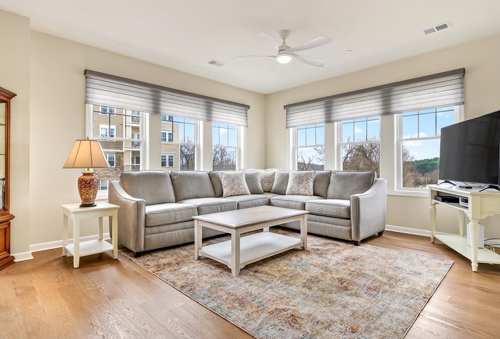 Better than new! Beautifully maintained, move-in ready Ivywood gem in premier lakeside community w/ resort style amenities. Spacious 2 bed/2 bath 1,469 sf condo offering an open floor plan w/ 9ft.ceilings & sun-drenched living & dining rooms. Thoughtfully designed kitchen includes quality cabinets, all appliances, island w/ granite counters & extra seating; perfect for entertaining or day to day living. Enjoy gleaming HW floors, CA, in-unit laundry, oversized custom closets, designer window treatments, garage parking and a cozy porch with peaceful wooded views. Additionally, this home offers access to an incredibly vibrant way of life. Along with a FT Life Style Director & Onsite Mgmt. office, this premier 55+community boasts an inviting 11,500 sf clubhouse w/fitness ctr & classes, heated, outdoor pool w/sundeck & fire pits, event space w/ catering kitchen, cafe, game room, 40 active clubs, tennis/pickleball & MORE!. Pet friendly. Simply condo living at its best. Welcome Home!!