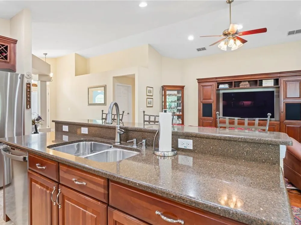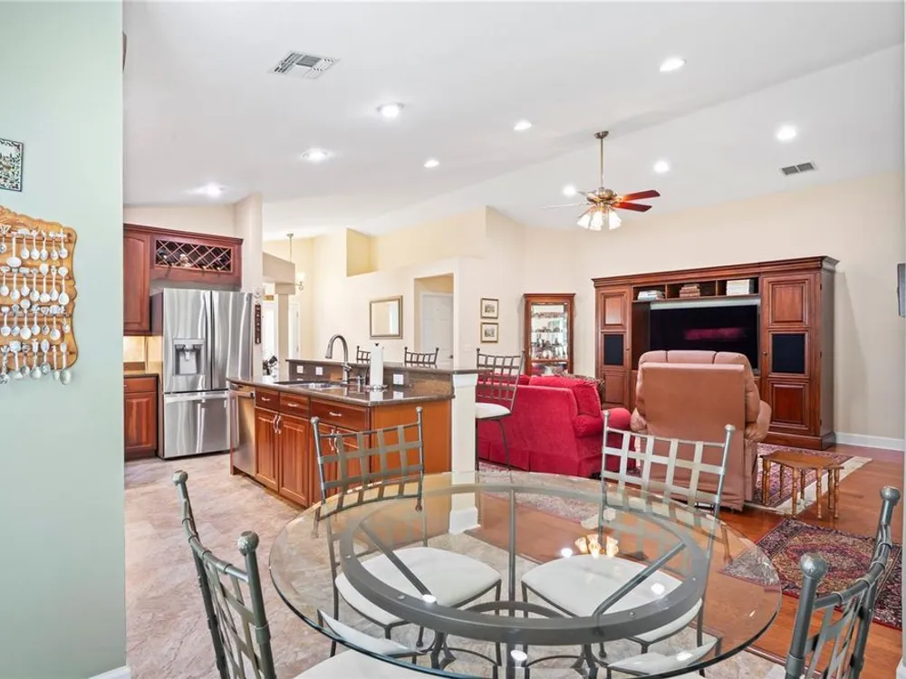 - Cathedral Ceiling(s), Ceiling Fan(s), Eat-in Kitchen, Kitchen/Family Room Combo, Living/Dining Room, Open Floorplan, Split Bedrooms, Walk-In Closet(s)