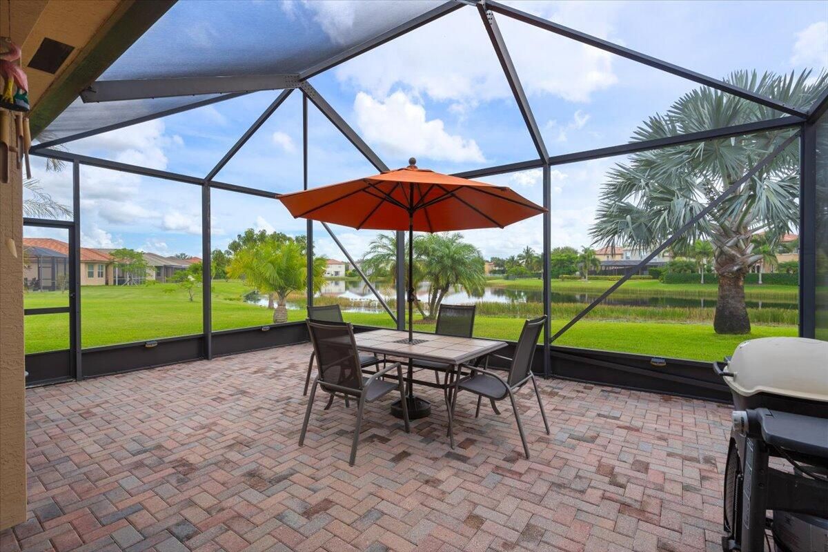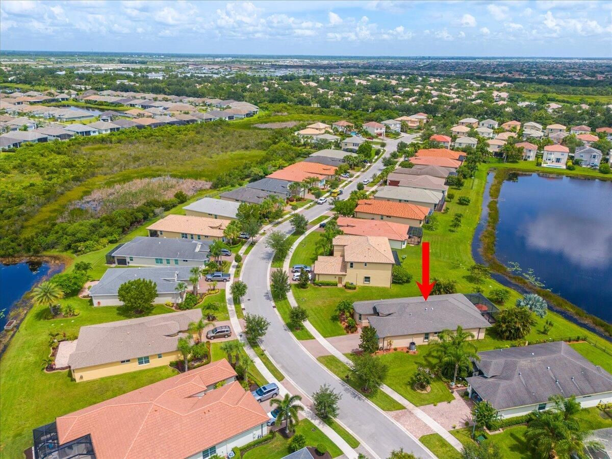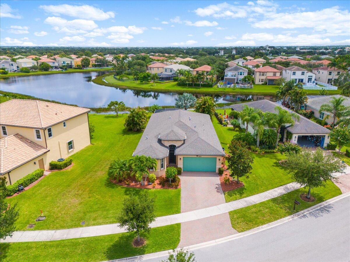 Spectacular 3Bd + Den, 2.5Ba home located in TownPark at Tradition. Situated on an oversized lakefront lot offering premium water views. A 24' extended screened lanai provides comfort, privacy as well as a perfect space to relax and entertain. Interior is thoughtfully designed with functionality with a modern kitchen open to the adjacent dining nook and living room. Separate formal dining area to host friends and family. The split bedroom floor plan features a generous master suite with stunning lake views complete with a well-appointed ensuite bath. High-end hardwood flooring in bedrooms. Home is equipped with complete accordion hurricane shutters and whole home surge protector. 240V/30Amp Generator hookup with Interlock installed. Newer Lennox A/C w/12yr warranty and digital thermostat.
