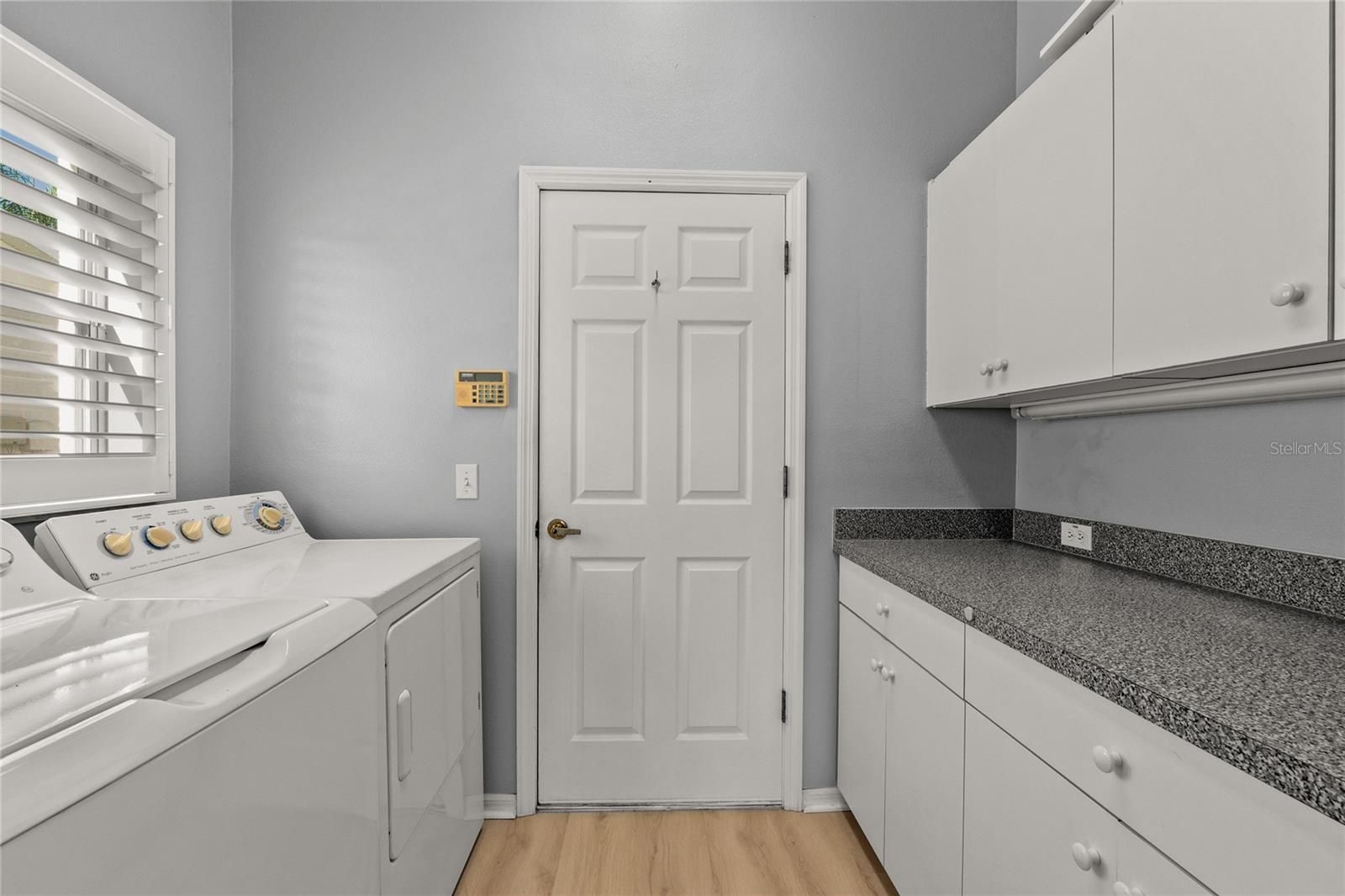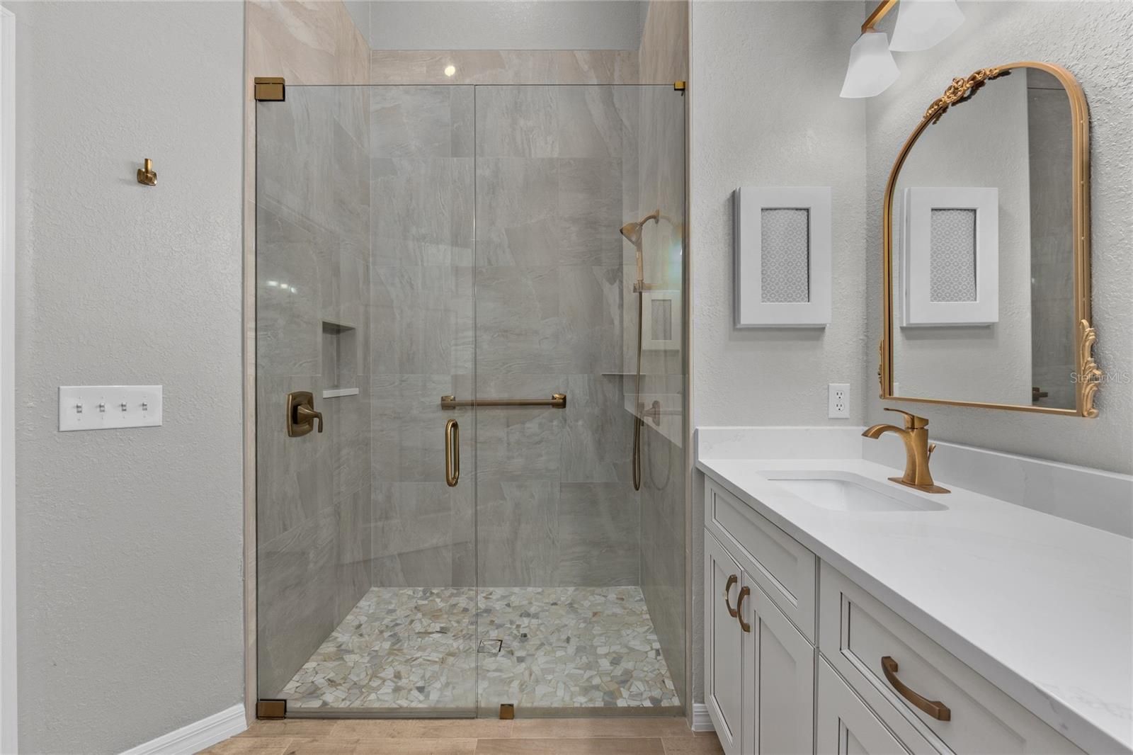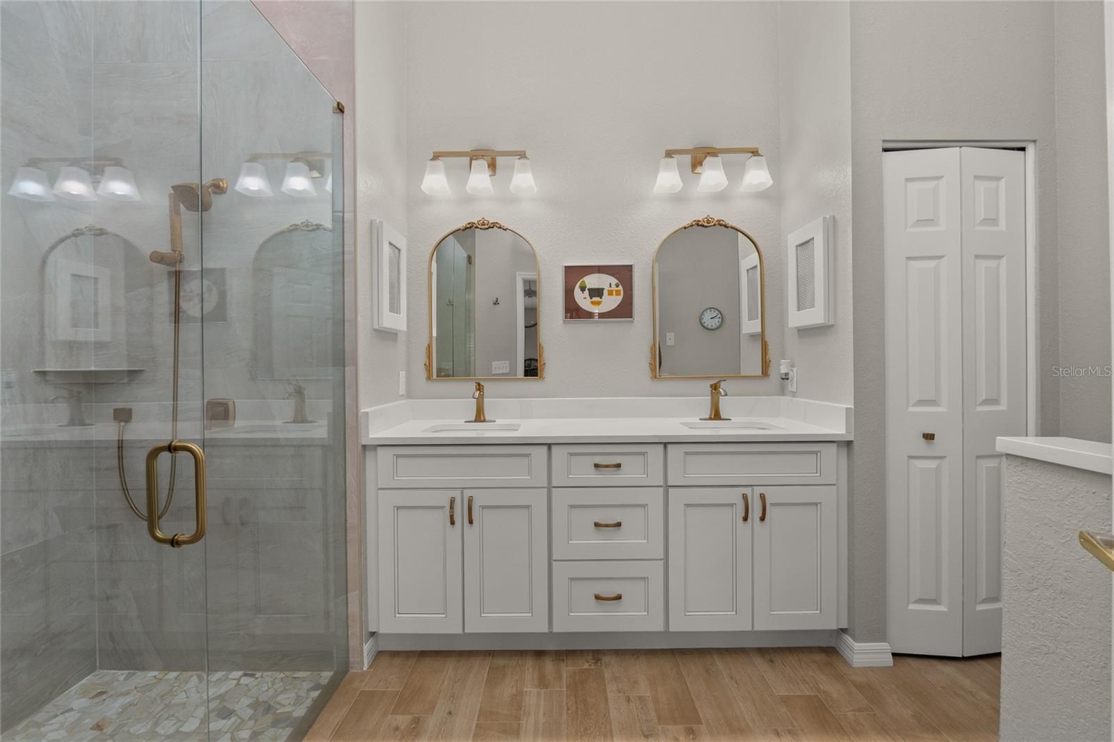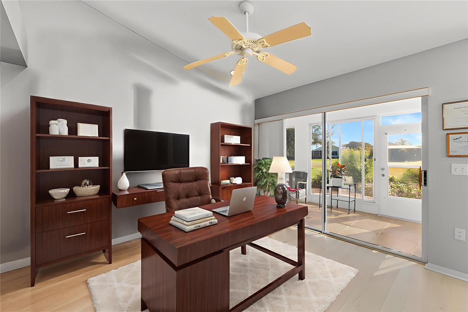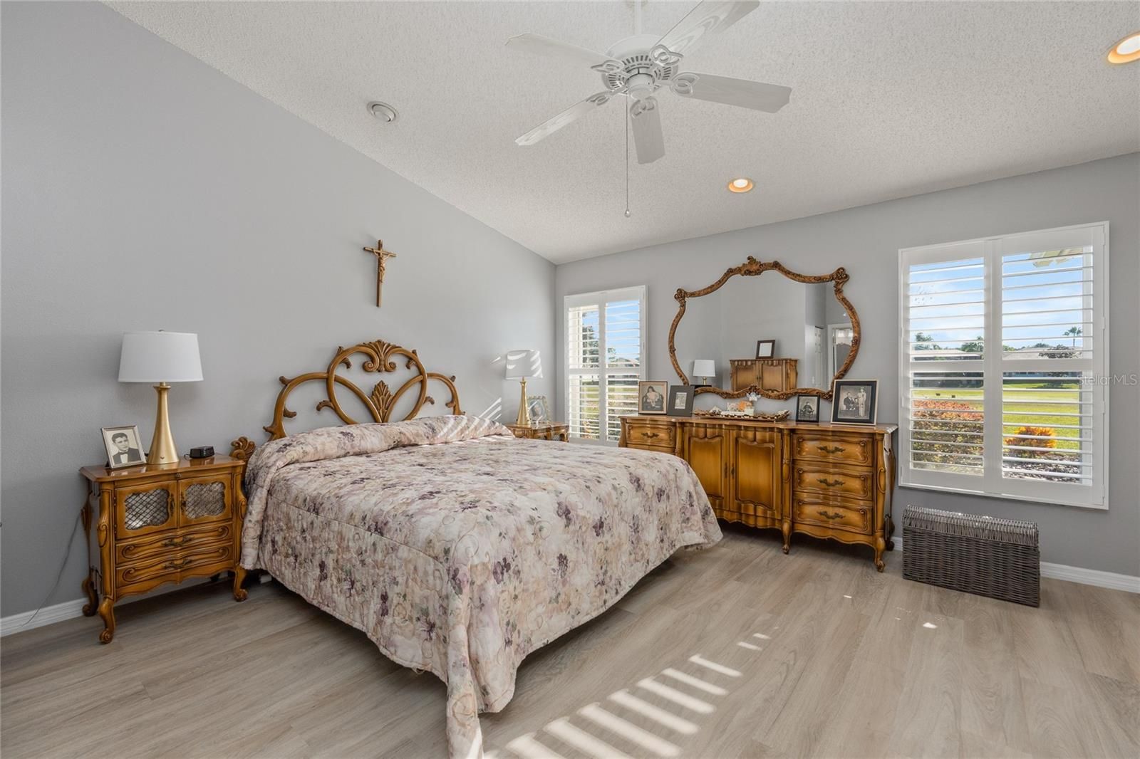 One or more photo(s) has been virtually staged. Everything's already done. You just get to enjoy it. The current owners spent the last few years turning this Heritage Springs villa into their dream home—over $55,000 in upgrades that you'll appreciate from day one. Brand new AC system (June 2025, $11,200). Completely renovated primary bathroom ($24,500) with oversized designer tile, dual vanities, and a walk-in shower that feels like a spa. Custom plantation shutters on every window ($5,000). Gorgeous luxury vinyl plank flooring throughout the main areas ($2,700). No carpet anywhere—just easy, stylish living. This is an end unit, which means more privacy, more natural light, and those soaring cathedral ceilings that make the whole place feel open and airy. Nearly 1,800 square feet, 2 bedrooms, 2 baths, 2-car garage. The kind of space that just works. The inside is designed for how you actually want to live. Open-concept living and dining area—perfect for having friends over without feeling cramped. The bright sunroom looks out onto serene golf course views (the kind of spot where you'll drink your morning coffee and wonder why you didn't move here sooner). The screened lanai is your outdoor room, surrounded by lush tropical landscaping, ideal for reading, relaxing, or just watching the world go by. The kitchen has a newer range (2023) and a really nice refrigerator ($2,250). The laundry room has a 2023 washer and plenty of storage. The roof was replaced in 2021. Even the garage got the treatment—upgraded flooring ($3,000), new garage door (December 2023), and the exterior has seamless gutters ($2,100). Your HOA fee is $508/month, and it actually covers everything. Cable, internet, all exterior and grounds maintenance, pool maintenance, common area taxes, recreational facilities, road upkeep, professional management. True maintenance-free living. You literally just lock the door and go—whether that's for the weekend or the winter. Heritage Springs is the kind of community everyone talks about. The 20,000 square foot clubhouse has a professional concierge, card rooms, billiards, arts and crafts studio, library, and a 250-seat performing arts center. There's a full-service restaurant and bar, so you can have dinner out without leaving the community. The heated pool overlooks a scenic lake. If you golf, the championship 18-hole course is available year-round for just $3,300 annually. Fitness center, tennis courts, bocce ball, shuffleboard—it's all here. You're in Trinity, which means you're close to everything but it still feels peaceful. Premium shopping and dining nearby. Parks, healthcare, Gulf Coast beaches. Tampa International Airport is less than 30 minutes away. Someone else spent $55,000 upgrading this villa. You get to walk in and just start living. New AC means no surprise expenses. Renovated bathroom means you're not dealing with that project. Custom shutters, beautiful floors, end-unit location, golf course views—it's all done. **This is the lifestyle you've earned. Come see it.**