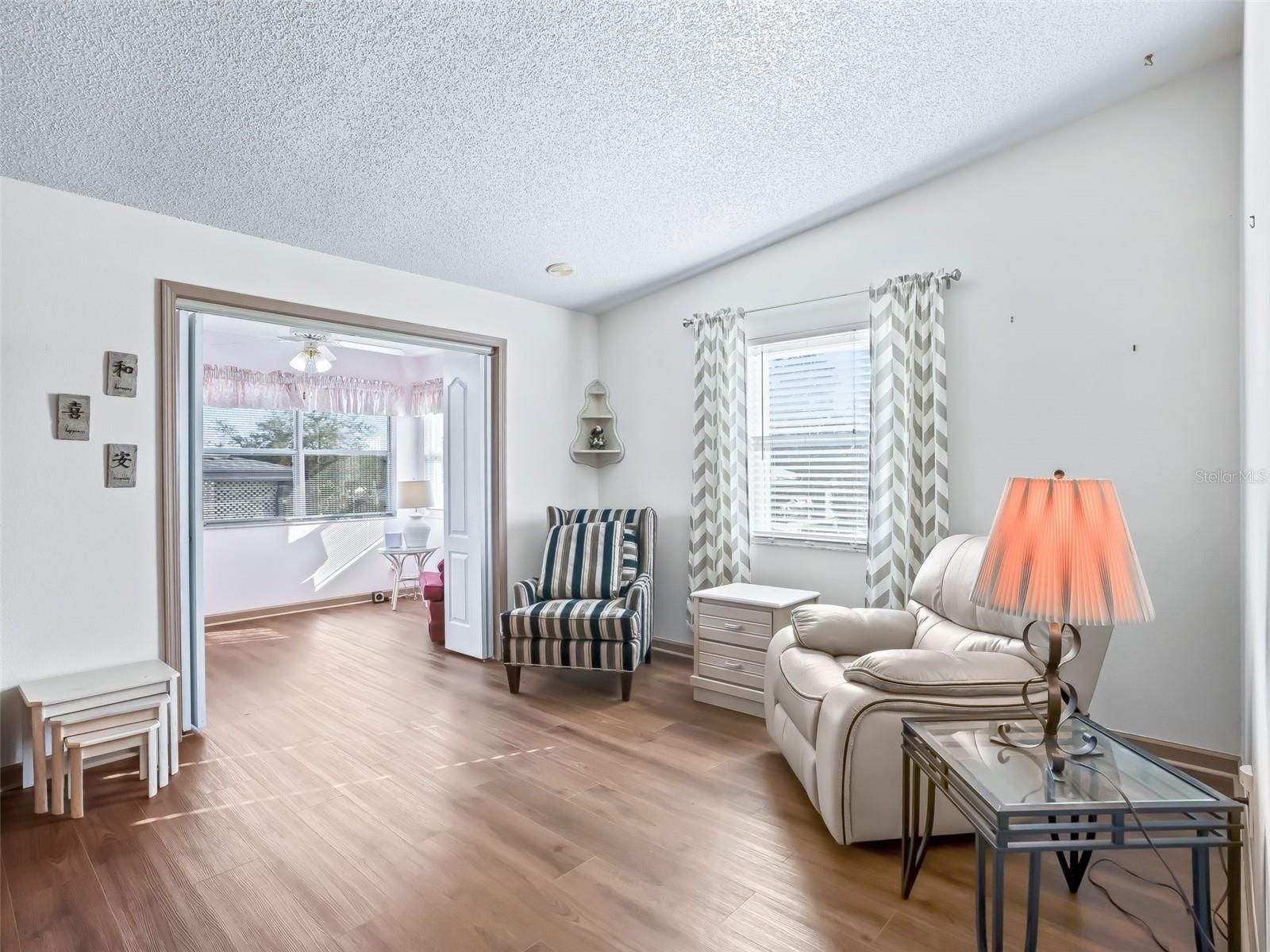 MOTIVATED SELLER!! Located in the heart of the Villages, this charming 2-bedroom, 2-bathroom site-built home in Orange Blossom Gardens offers a comfortable lifestyle and comes fully furnished with extras 3 solar tubes, ceilings fans throughout with vaulted ceiling. The kitchen features Corian countertops and stainless-steel appliances. The primary bedroom includes an en-suite with a low-flush toilet and a new walk-in shower, while the guest bedroom has a closet, and the guest bathroom offers a low-flush toilet with a jetted tub/shower combo, also a den office or speakeasy room with private entrance. Enjoy a spacious Florida room and an inside laundry area with a chest freezer, all under heat and air. The living room is large with a separate reading or sitting area, Outside, you'll find a back patio and a golf cart garage with a convenient rear entrance. Roof 2022 and A/C 2022, Tankless water heater. Call for a private showing