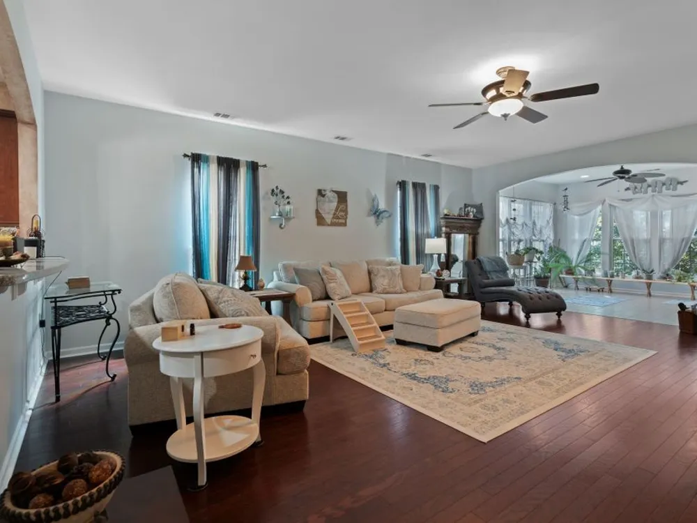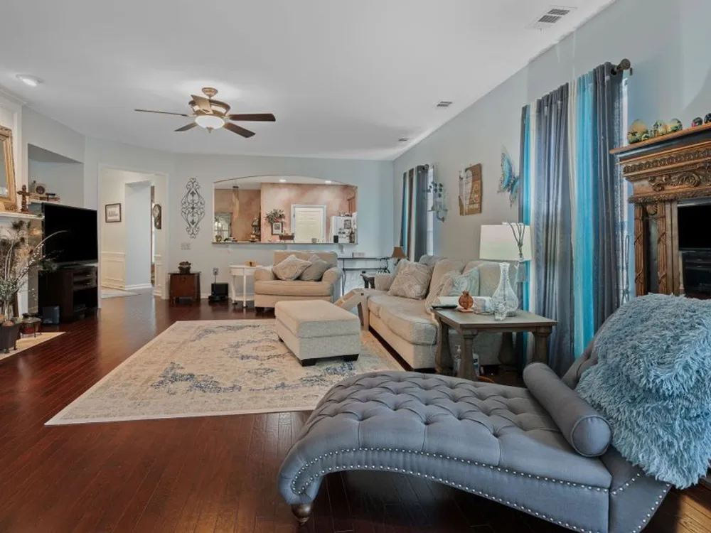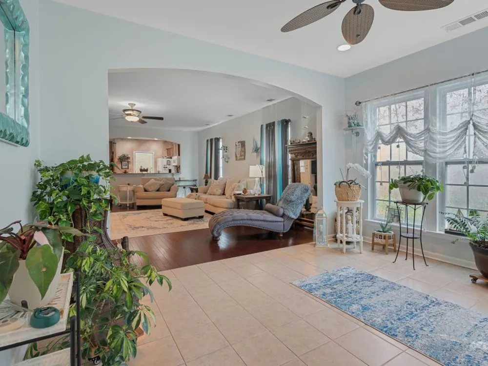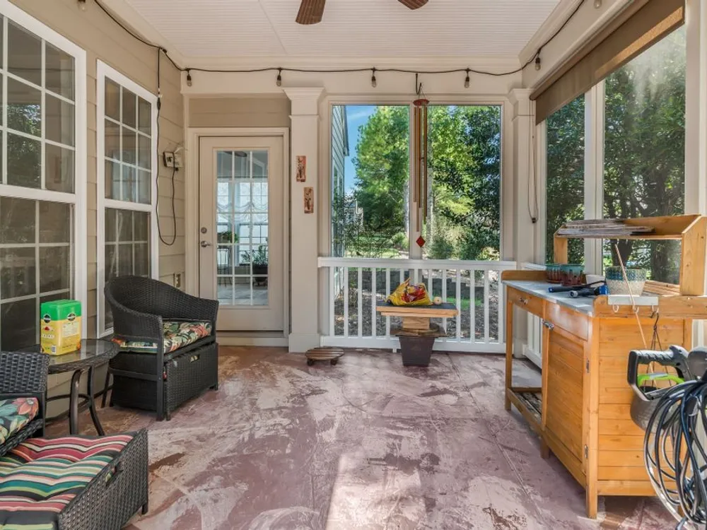 OPEN HOUSE SUNDAY 10/12-25 2:00-4:00 "Welcome Home" to this 55+ gated community, Del Webb. This attractive floor plan has all you need with 2 bedrooms, 2 baths with a beautiful sunroom off the living room. Screened in porch with a stamped outdoor patio space to do all your grilling. Kitchen with farmhouse sink, granite counter, Island with lots of cabinets. All appliances remain including refrigerator, and washer and dryer. Open living room with hardwood floors and fireplace. Office with Double doors. Master has trey ceiling, separate shower and jetted tub, double vanities and huge walk in closet. Laundry room has sink and cabinets. Attic storage Irrigation system. Very nice Home!!!