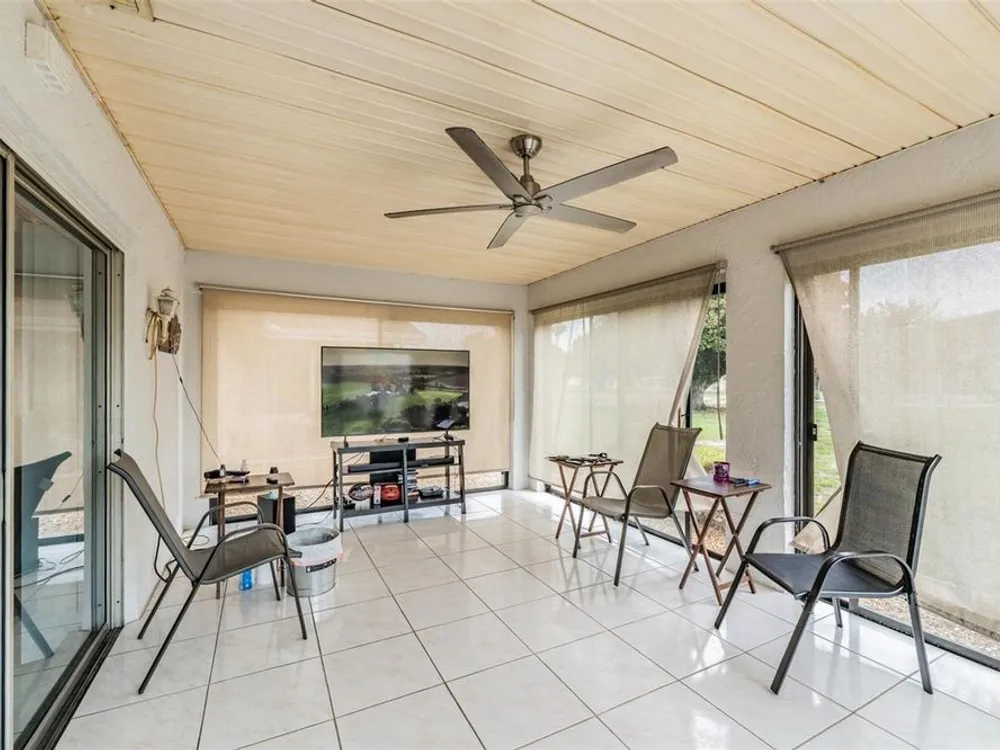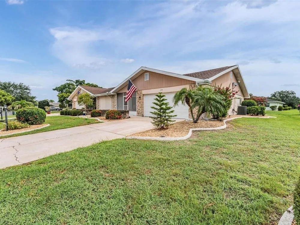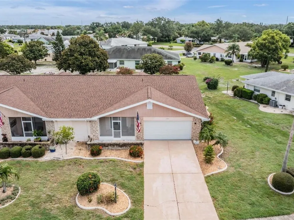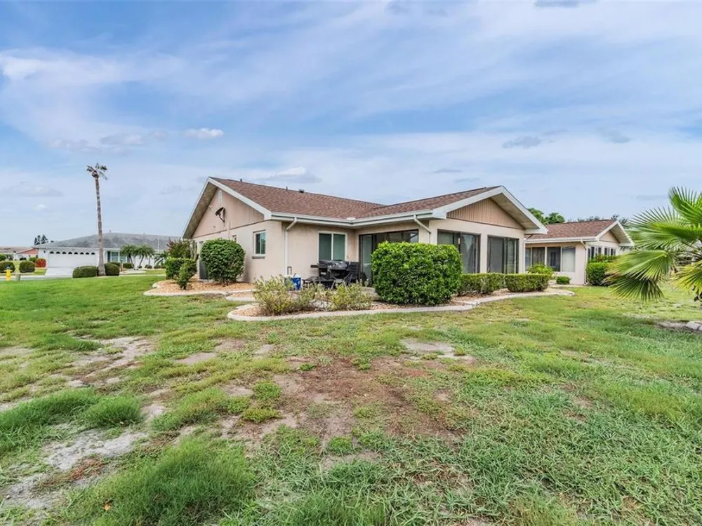 Short Sale. Spacious 2-bedroom, 2-bath, 2-car garage home in Sun City Center! Features include an open living/dining area, granite kitchen, and an enclosed back porch overlooking the big back yard. Both bedrooms have walk-in closets and appealing baths. Big laundry room with storage cabinetry and washer/dryer and utility sink. For your additional comfort, roof new in 2025, AC new in 2024, a two-car garage with natural light, and the landscape upkeep is covered by the association. Located in a 55+ golf cart-friendly community with pools, clubs, fitness center, and more, this is Florida living at its best! Pet friendly, too!