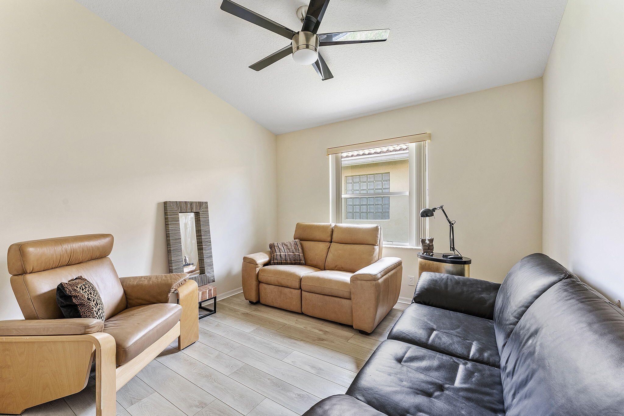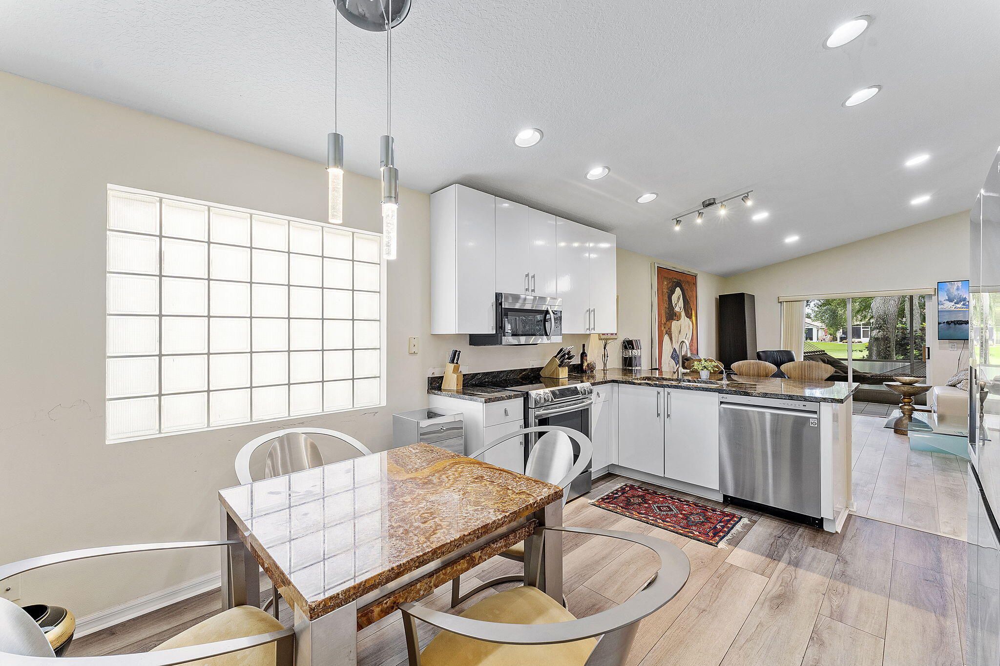 Lovely 3BR 2 BA 2 Car garage home in 55 + San Marco of Westchester Estates. Open kitchen is newly renovated with designer Quartz counter. European Style cabinetry and new stainless appliances. High end vinyl wood flooring throughout. New ceiling lights and both baths have been updated. Glass sliders off living area and Primary Bedroom. Full house accordian shutters. Community offers various amenities including : clubhouse, fitness center, swimming pool, tennis, pickleball, clubs and activities. This active lifestyle community is conveniently located to shopping, restaurants, golf, major roadways and entertainment venues. This is a pet friendly community.