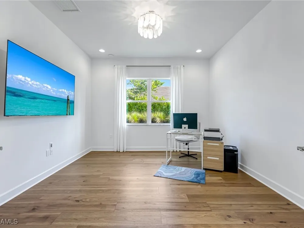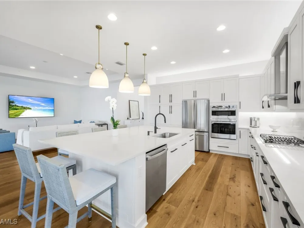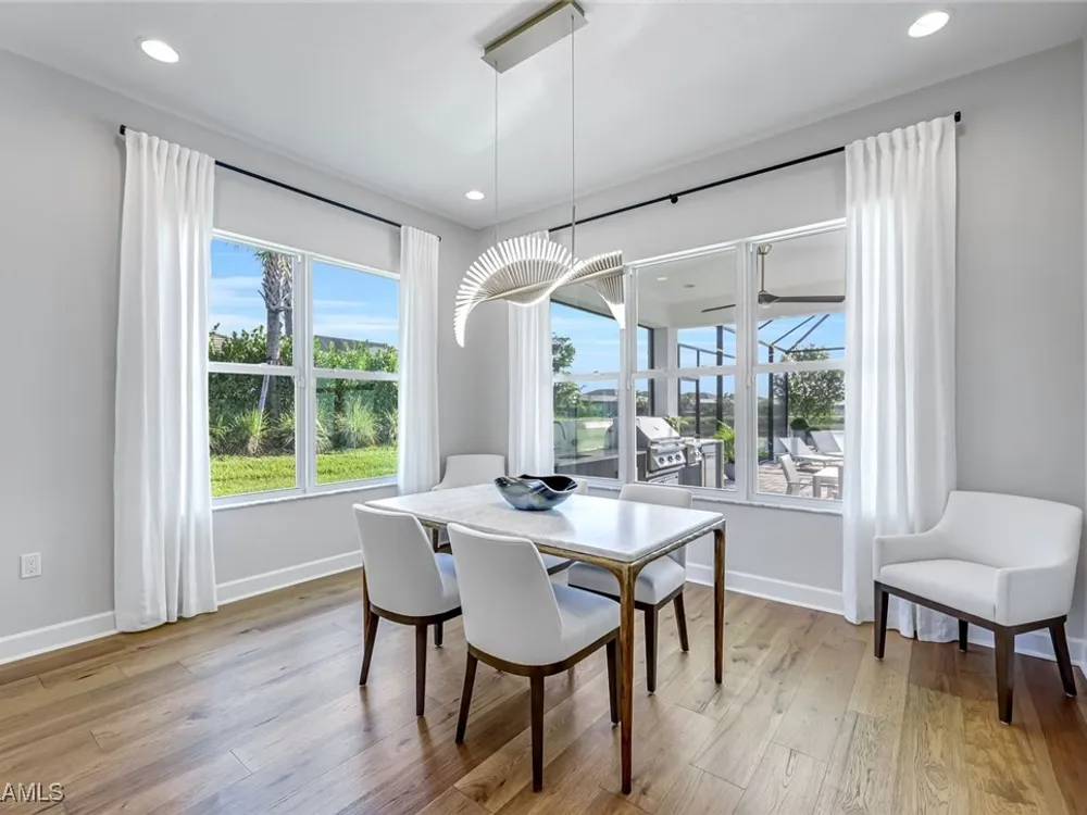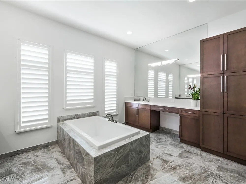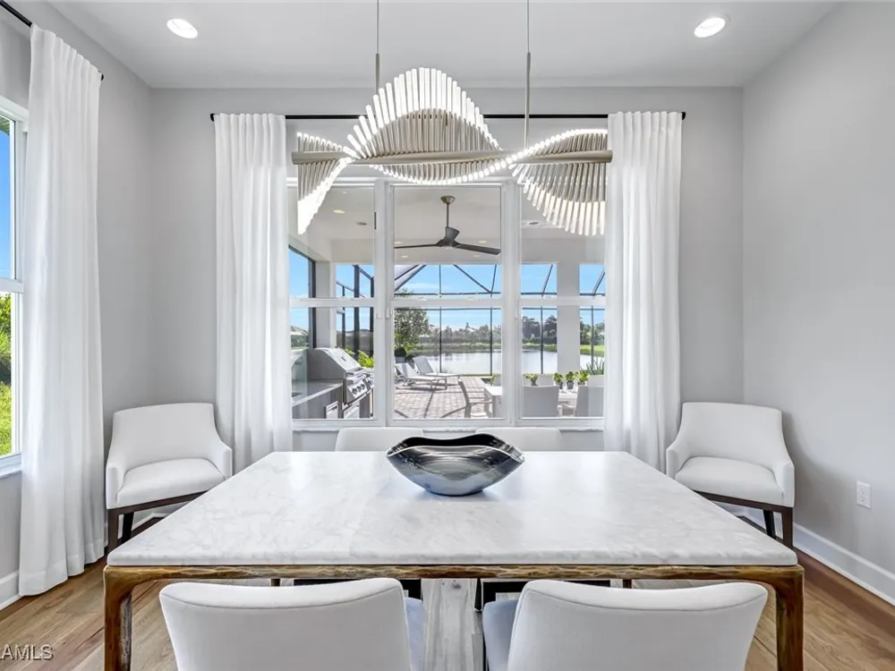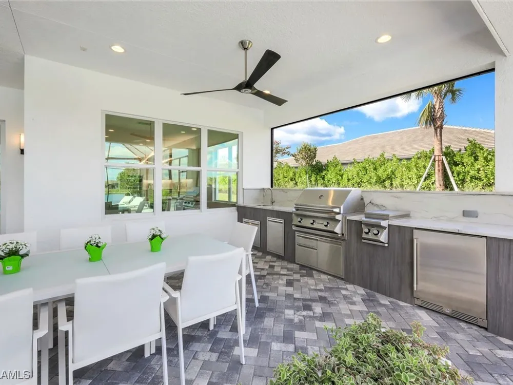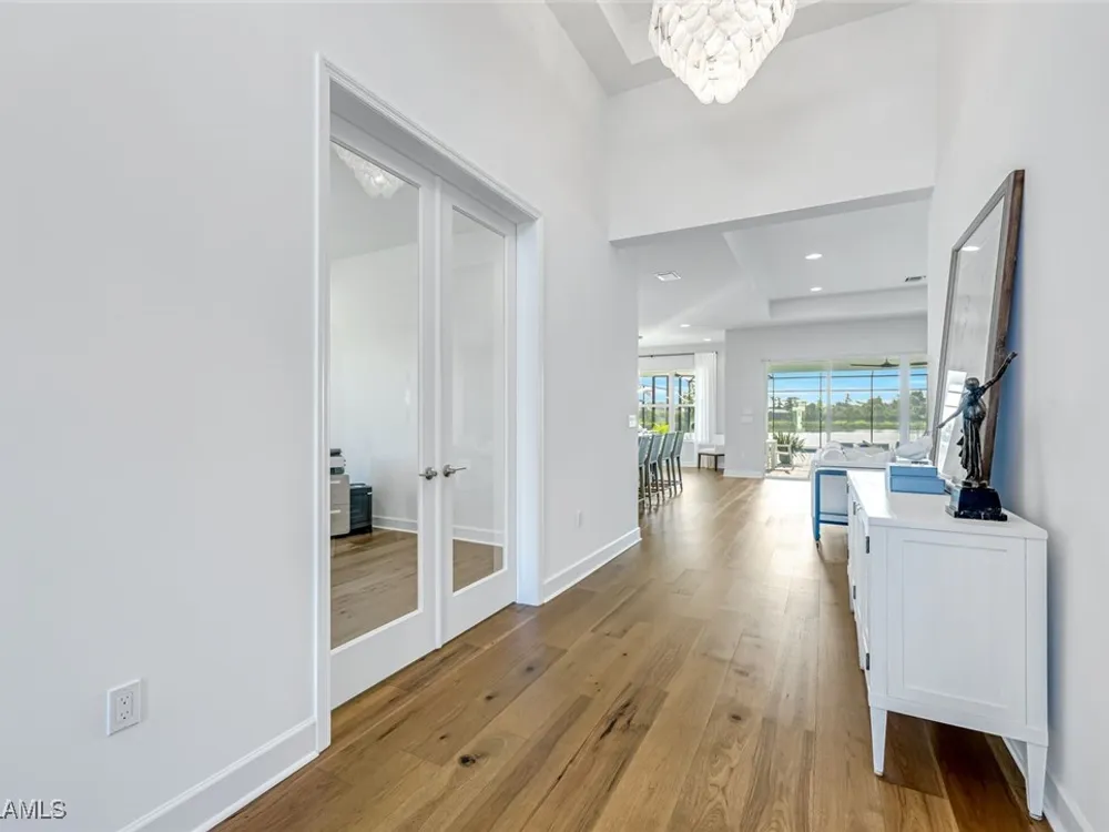 Stunning Lakefront Retreat in Valencia Trails – Your Private Oasis Awaits! Welcome to a breathtaking sanctuary nestled at the end of a peaceful cul-de-sac in the highly sought-after community of Valencia Trails. This exquisite 3-bedroom + den, 3.5-bath home boasts ultimate privacy and offers a rare opportunity to indulge in lakefront living with long, unobstructed views that will take your breath away. As you step through the grand entryway, you are greeted by soaring 14-foot ceilings that create an airy, open ambiance. Natural light floods the space through expansive windows, illuminating the elegant coastal-inspired design and highlighting the stunning wide plank wood flooring that flows seamlessly throughout—say goodbye to carpet! The heart of this home is undoubtedly the show-stopping gourmet kitchen, a dream for any culinary enthusiast. Boasting premium white solid wood cabinetry with integrated lighting, sleek quartz countertops, and a massive center island with seating for five, this kitchen is the perfect space for entertaining friends and family. High-end GE Profile appliances promise both functionality and style, while designer pendant lights and chandeliers add a touch of glamour to the heart of the home. Your luxurious primary suite is a true retreat, featuring a spa-like bathroom equipped with a custom linen closet, oversized rainfall shower, deep soaking tub, and dual vanities with stunning counter-to-ceiling mirrors. Step outside through the sliding glass doors into your very own private oasis, where the sun-drenched saltwater pool awaits—perfect for year-round enjoyment. The extended lanai, complete with dual oversized ceiling fans, offers a cool, shaded refuge for relaxation or entertaining guests. Take advantage of the magnificent custom summer kitchen, adorned with a striking waterfall-edge countertop, designed to elevate your outdoor gatherings to new heights. The spacious side yard, fence-ready and ideal for pets or play, adds to the allure of this stunning property. Additional features of this remarkable home include a three-car garage with epoxy flooring and modern floating cabinetry, full impact windows and doors for peace of mind. Enjoy the added benefit of living in a community with NO Community Development District (CDD) fees. Just a short walk or bike ride away lies the spectacular clubhouse, on-site restaurant, and lighted pickleball courts—making this not just a home, but a lifestyle filled with active living and vibrant community engagement. Opportunities like this are truly rare—don’t miss your chance to own a piece of paradise in Valencia Trails. Schedule your private showing today and step into a world of luxury, tranquility, and endless possibilities!