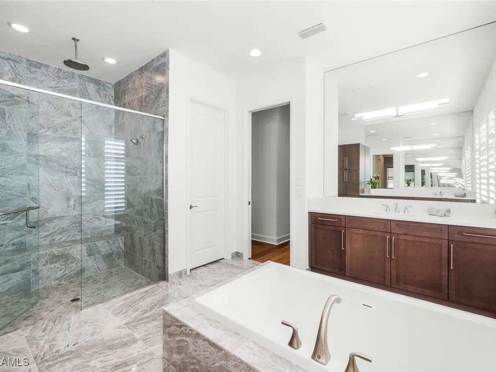 - Breakfast Bar, Built-in Features, Bedroom on Main Level, Breakfast Area, Bathtub, Dual Sinks, Eat-in Kitchen, French Door(s)/Atrium Door(s), Kitchen Island, Living/Dining Room, Multiple Shower Heads, Custom Mirrors, Main Level Primary, Pantry, Separate Shower, Cable TV, Walk-In Closet(s), Window Treatments, High Speed Internet, Home Office, Split Bedrooms