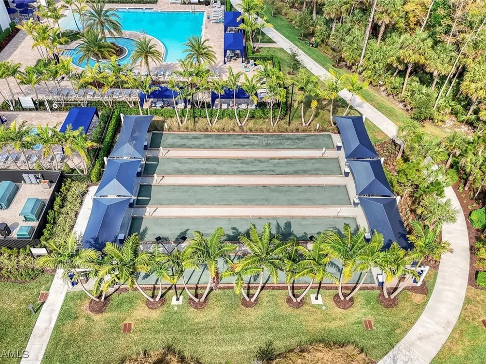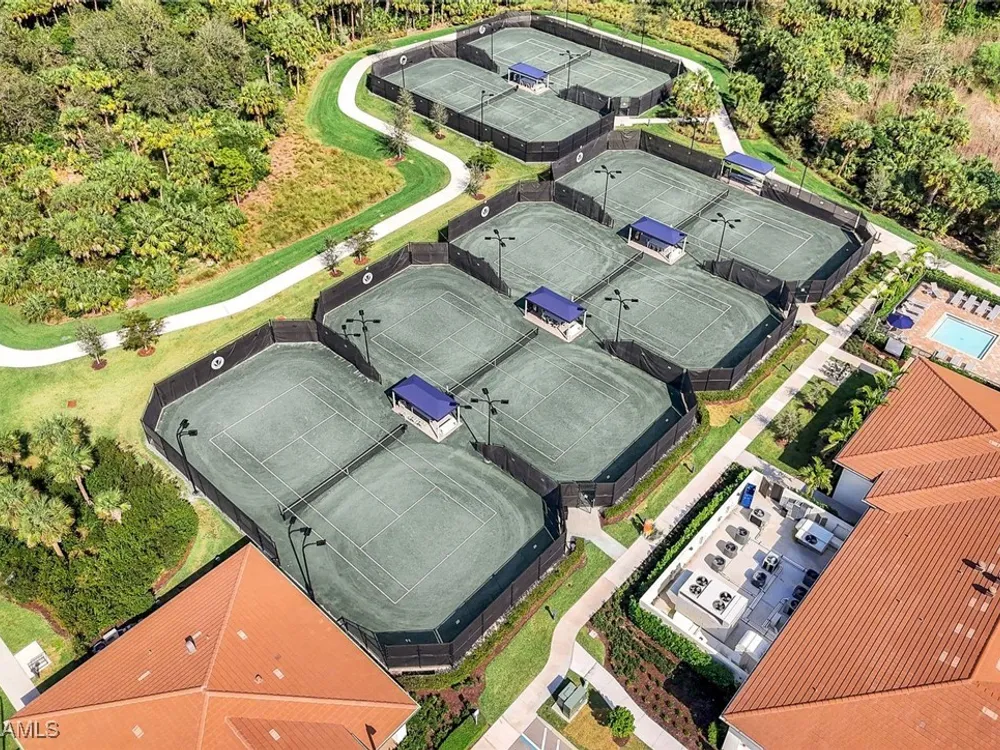 - Includes: Bocce Court, Billiard Room, Business Center, Clubhouse, Dog Park, Fitness Center, Pickleball, Pool, Restaurant, Spa/Hot Tub, Sidewalks, Tennis Court(s), Trail(s), Management