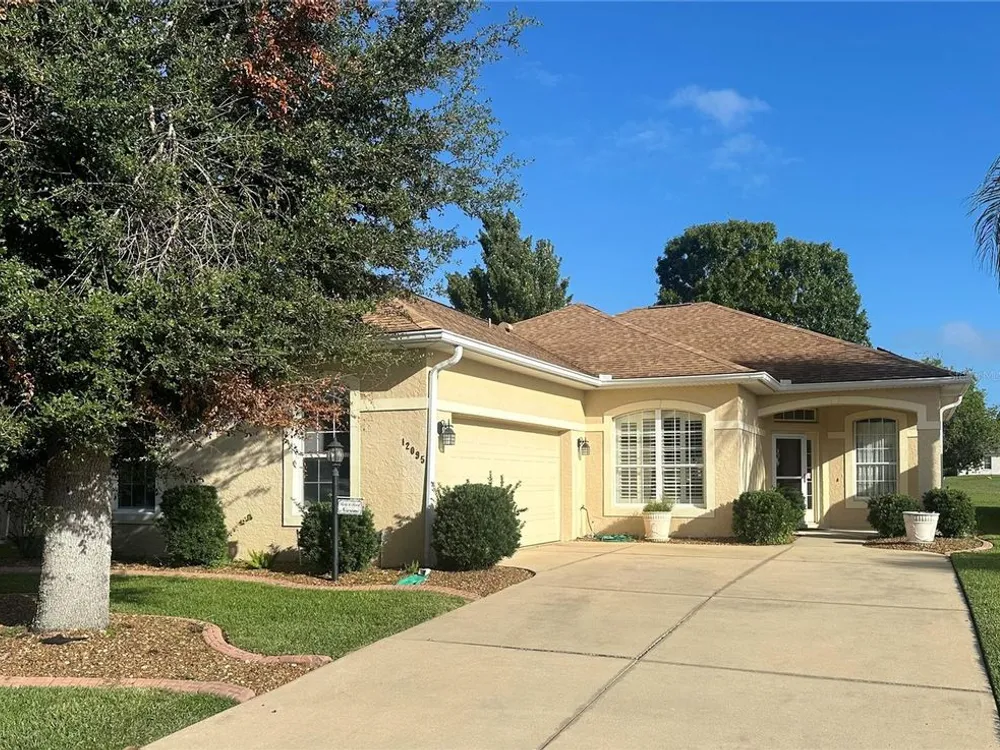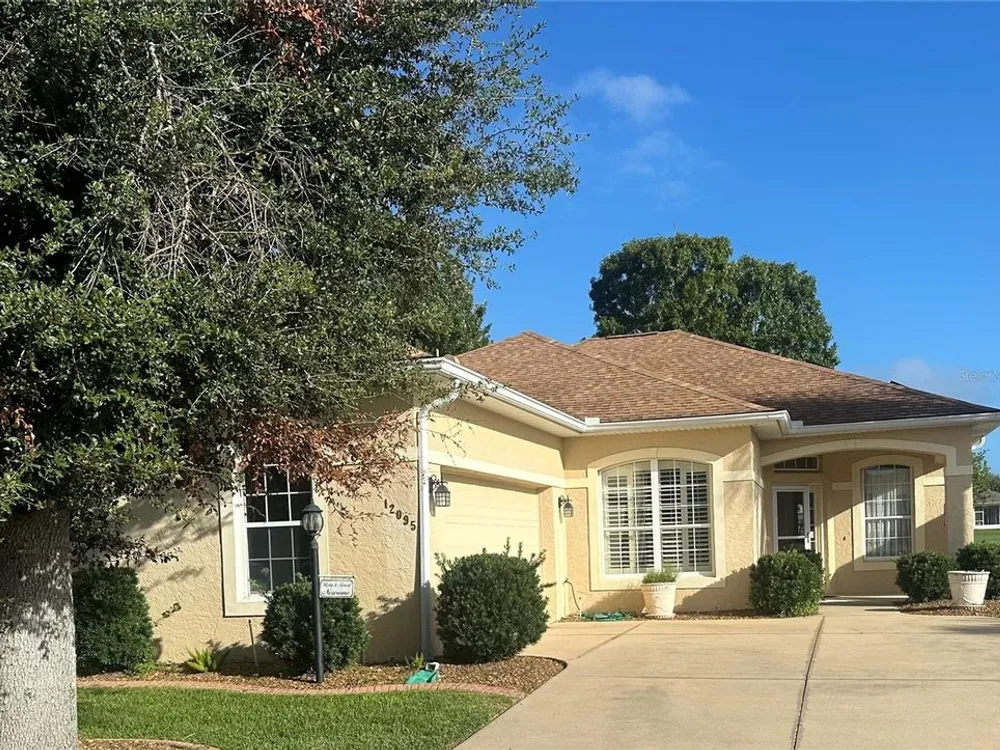 ++NEW LISTING- Additional photos will be added soon++ Welcome to STONECREST a beautiful and active 55+ Golf Course Community with 18 HOLE CHAMPIONSHIP GOLF COURSE, Broad Stripes Golf and Social Club with onsite restaurant, 4 swimming pools, pickleball & tennis courts, Bocce and shuffleboard courts, corn hole, softball field, walking trails and dog parks and over 90 groups offering something for everyone! This fantastic Kingsley Model is located directly on the golf course with fantastic views featuring 2 bedrooms, 2 baths and a bonus room equipped with lovely french doors that could easily be converted to a 3rd bedroom. NEW ROOF and SOLAR SYSTEM in 2022 that will be paid in full by the seller at closing offering very LOW power bills! This open concept Living, Dining area with kitchen bar has newer stainless steel appliances, neutral corian countertops, gorgeous custom crown molding and a fully enclosed lanai making this home perfect for entertaining. The spacious primary bedroom features luxury vinyl with a large walk-in closet and en-suite with double vanity, large tiled shower, separate soaking tub and enclosed water closet. STONECREST residents enjoy golf cart access to shopping, restaurants, retail shops, and entertainment with and a short trip to Spanish Springs Town Square in The Villages.