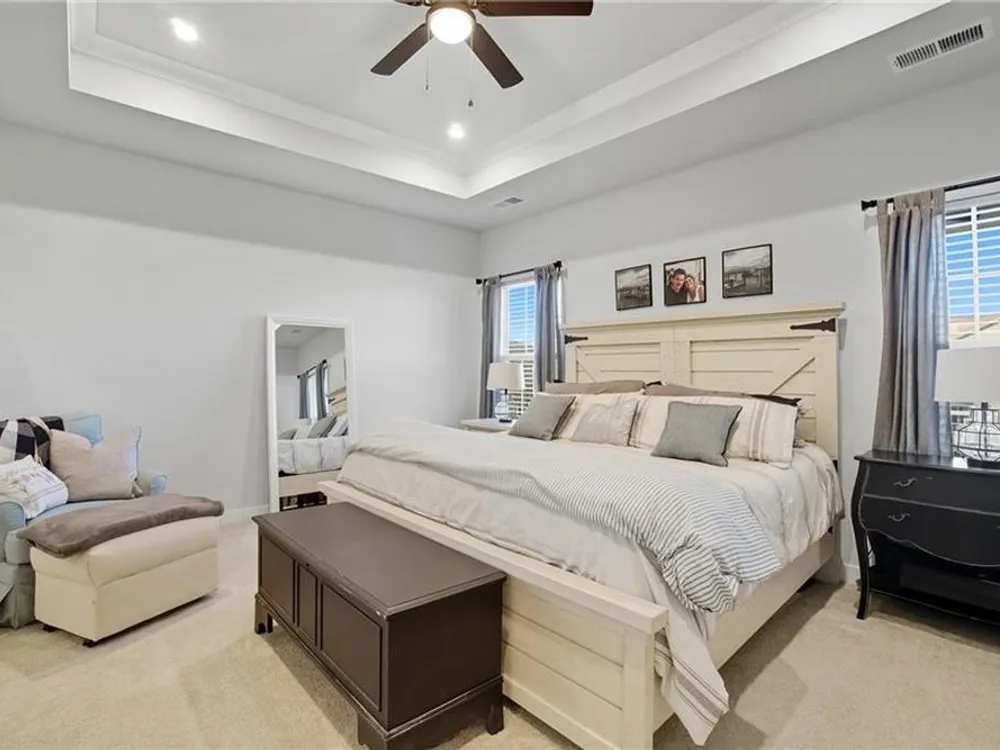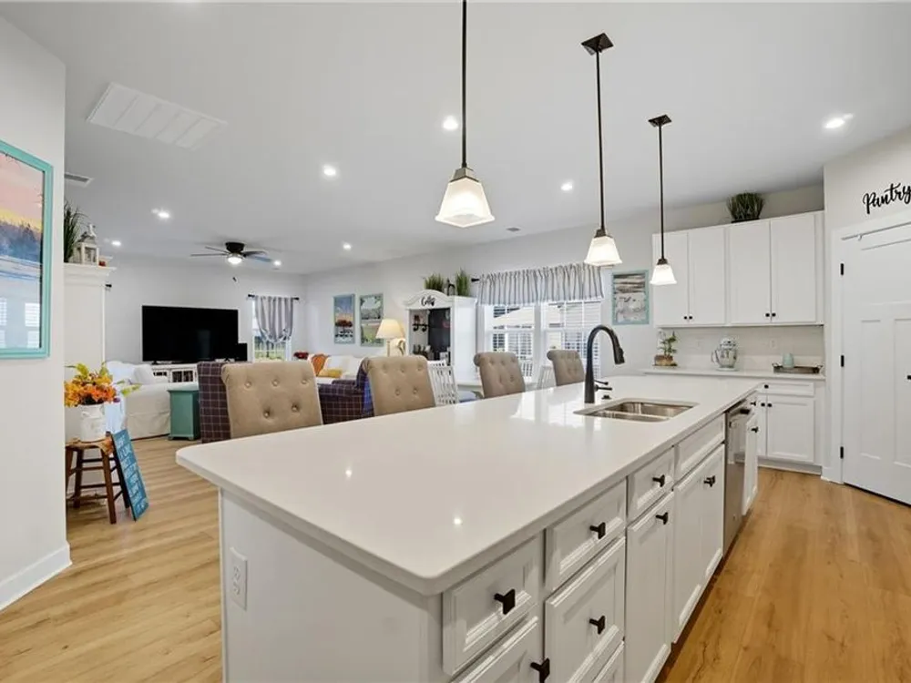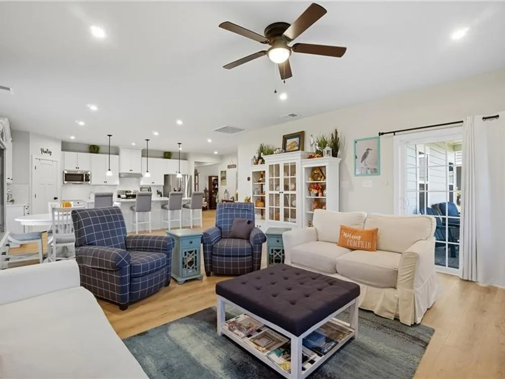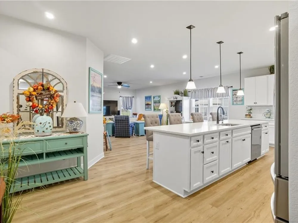Welcome home to 121 Ayrshire Loop, located in the Parke, Cypress Creek's premier 55+ community. This stunning 3-bedroom, 3-bath home offers over 2,600 sq ft of open, light-filled living space. Enjoy a gourmet kitchen with upgraded cabinetry, granite counters, large island, and stainless appliances—great for entertaining. Designer touches and upgrades are found throughout, from the trim and lighting to the flooring and fixtures. The spacious primary suite provides a peaceful retreat, while additional bedrooms and loft offer flexible living options. Step outside to a beautifully hardscaped backyard oasis, made for relaxing or gatherings year-round. Located in one of Smithfield’s premier golf communities with resort-style amenities, this home combines comfort, elegance, and lifestyle.