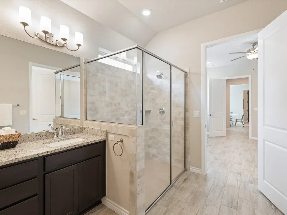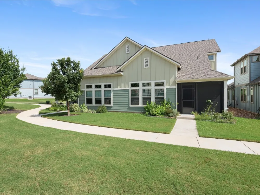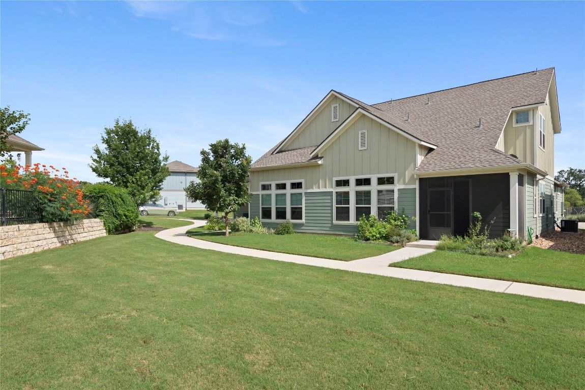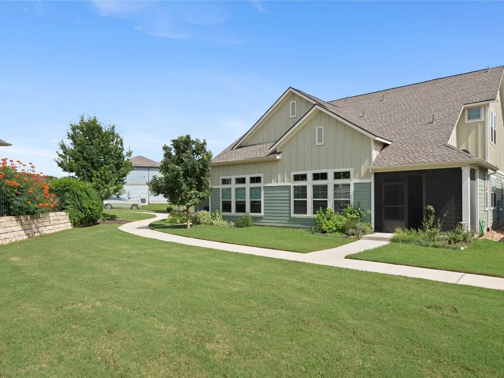 ***Motivated Seller*** All reasonable offers considered! You'll love this beautiful Seawall floorplan in Kissing Tree, a vibrant 55+ resort community located in San Marcos, TX. This charming villa is designed for comfort, convenience, and style, making it the perfect place to call home. You’ll love the open-concept layout with spacious living areas, ideal for both relaxation and entertaining. The gourmet kitchen boasts modern appliances, ample counter space, and a large island, perfect for casual dining or gathering with friends. Adjacent to the kitchen, the inviting living room features a high ceiling and lots of windows and natural light. Next to that is the dining room with access to the laundry and a half-bath. This villa includes two primary suites, each complete with luxurious en-suite bathrooms, walk-in showers, and generous walk-in closets, ensuring comfort and privacy for both the homeowner and guests. You’ll find ample storage throughout the home, a whole-home water filtration system, a screened-in, covered front porch, a great kitchen appliance package, and blinds on all windows. Living in Kissing Tree offers safety with 24/7 security guards on duty, a gated community with access to a plethora of amenities and activities tailored for an active lifestyle. Starting with a large clubhouse, fitness center, restaurant, indoor and outdoor swimming pools, hot tub, a competitive golf course, pickleball courts, bocce ball, walking trails, a dog park, live music, game nights, day trips, group travel, and a variety of social clubs and events. There is something for everyone in Kissing Tree. Experience the perfect blend of luxury, community, and tranquility in Kissing Tree. Welcome home! Ask about getting an interest rate under 6%.