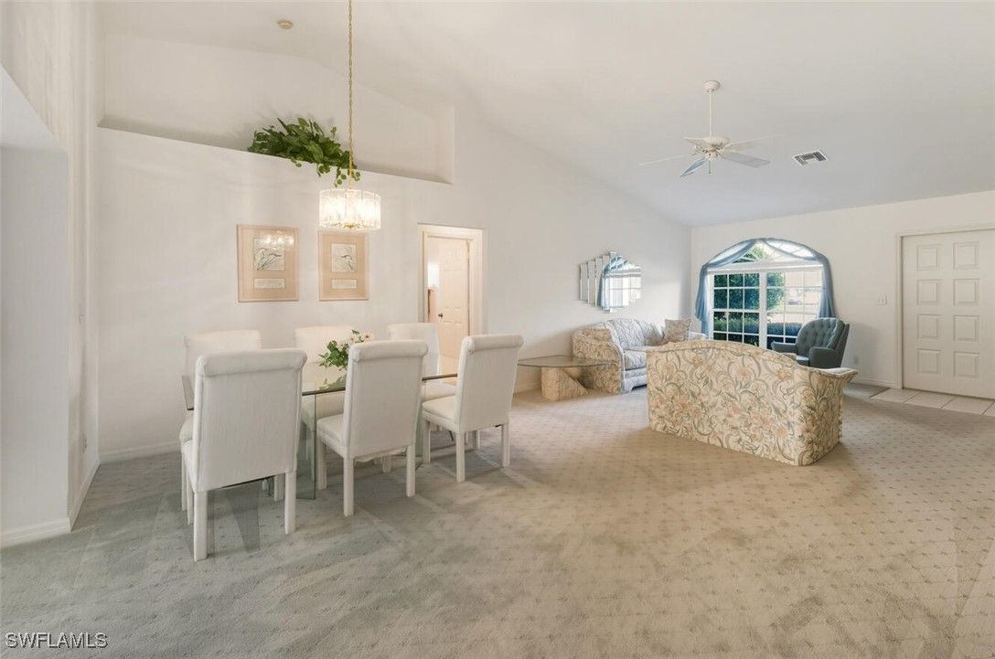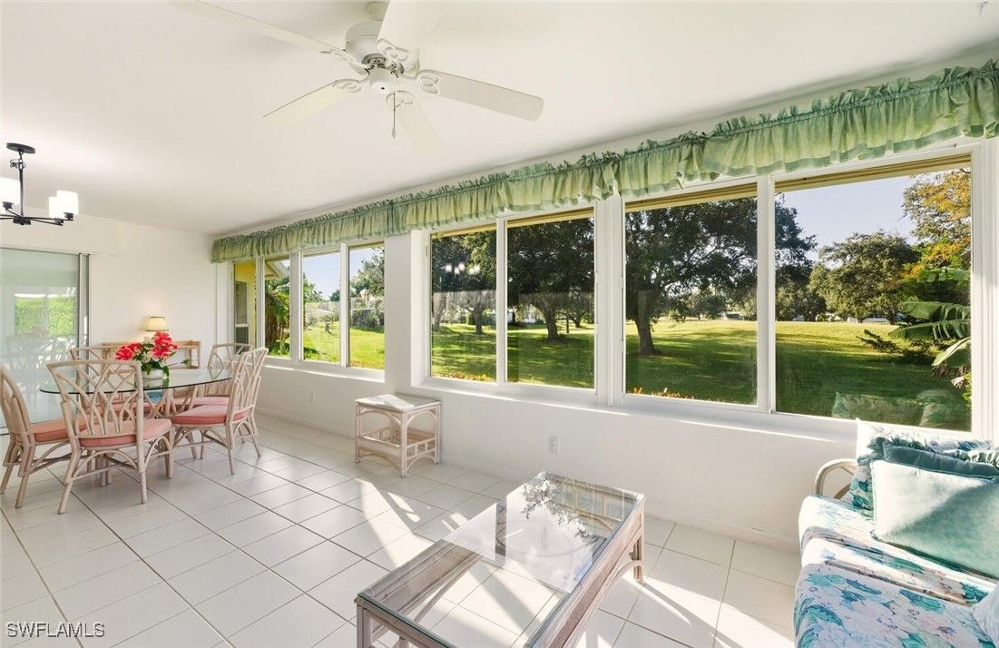 This spacious 3BR/2BA home features an oversized 26’ x 13’ Florida Room with impact resistant windows and tile flooring, in addition to the 1,592 s/f under air. This space is seamless with the rest of the interior, so the home feels like a property with over 1,900 s/f when you walk through the front door. The vaulted ceilings and open floor plan add to this effect, while the split bedroom design offers privacy when guests visit. There is a bay window in the breakfast nook (currently set up as a tv room). The well for lawn irrigation drastically reduces the water bill. The big-ticket items are squared away: roof (2017), A/C (2018), water heater (2020). The view from the back of the home is perfect for those who value their privacy. Estelle Dr. is one of the most sought after streets in Riviera Golf Estates, a quiet 55+ community, with barely any traffic. Community amenities include a newer heated saltwater pool with lap lanes, tennis/pickleball/bocce/shuffleboard courts, exercise room, billiards room, and a large clubhouse with a very active social calendar. The community is just a ten-minute drive from 5th Avenue and eight miles from the beach. All of this for the low HOA fee of just $144/month (includes internet), one of the lowest in East Naples. If you are looking for an attractive and well maintained 3-bedroom home, at an affordable price, in beautiful Naples, Florida, this is one of the best deals in Collier County!