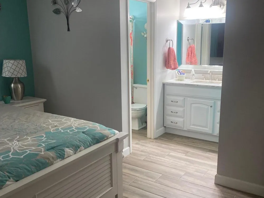 - Entry Level Living Area, Pantry, Split Bedrooms, Walk-In Closet(s), Family Room, Florida Room, Separate/Formal Dining Room, Blinds, Tub Shower, Primary Downstairs, Storm Shutters