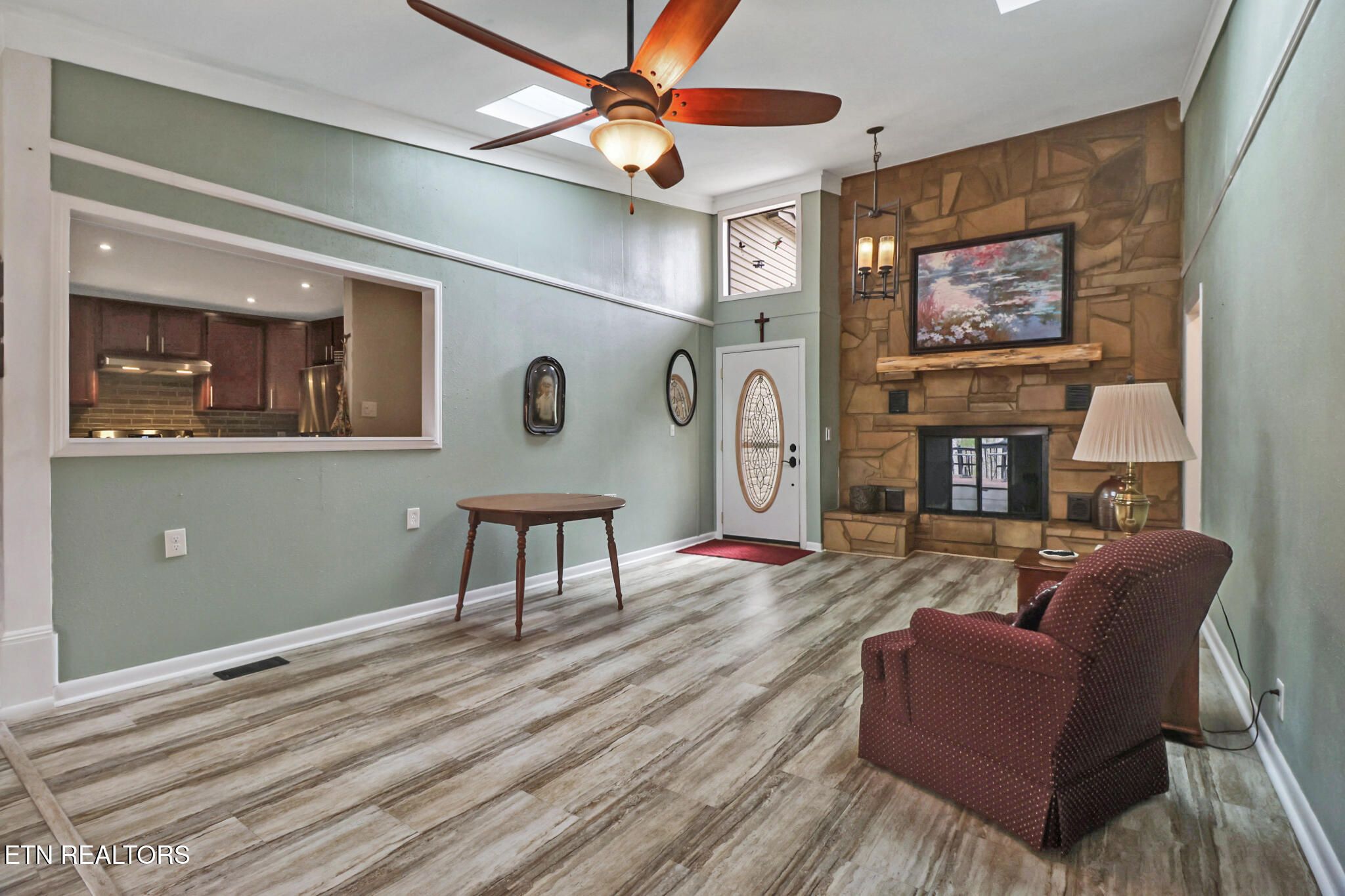 CUTE AND COZY UPDATED RANCH WITH 3 BEDROOMS AND 3 BATHS! Two of the 3 bedrooms are primary bedrooms, one has its own private entrance to the exterior. Large totally remodeled kitchen with plenty of cabinets and a breakfast bar too that's open to the dining/great room with a floor to ceiling fireplace that adds dimension to the room with LTV laminate flooring. The exterior is very unique with a front patio with TREX decking and the back deck (not TREX) leads to a sliding glass door to the encapsulated crawlspace with many options for you such as a workshop and plenty of storage with a dehumidifier. OTHER UPDATES: HVAC- 11/2024 (5-year Warranty which is transferable) Roof 10/2021, breaker box and some wiring updates) COME AND SEE FOR YOURSELF!!