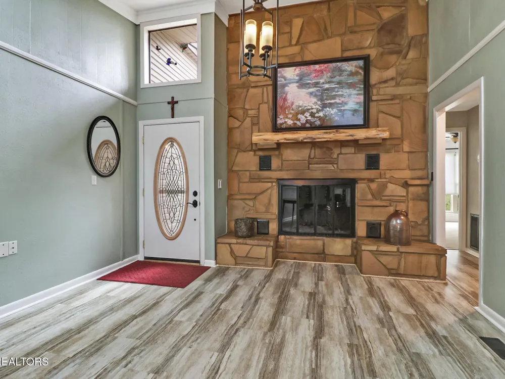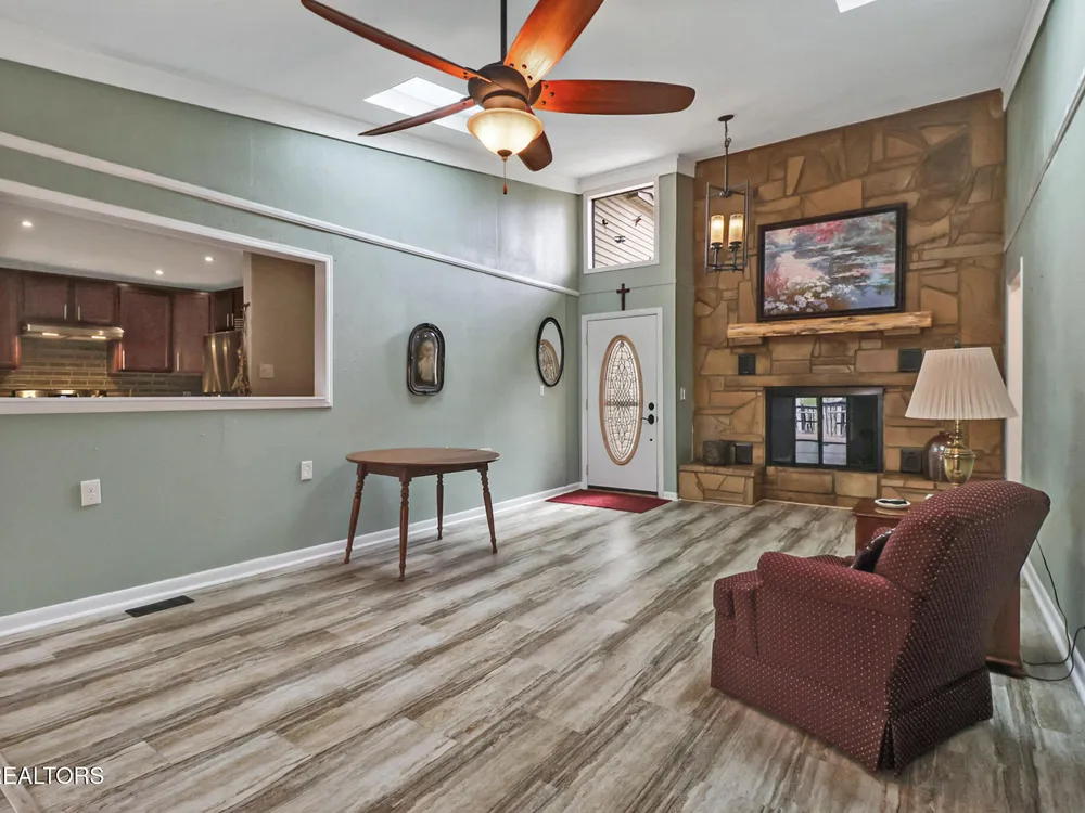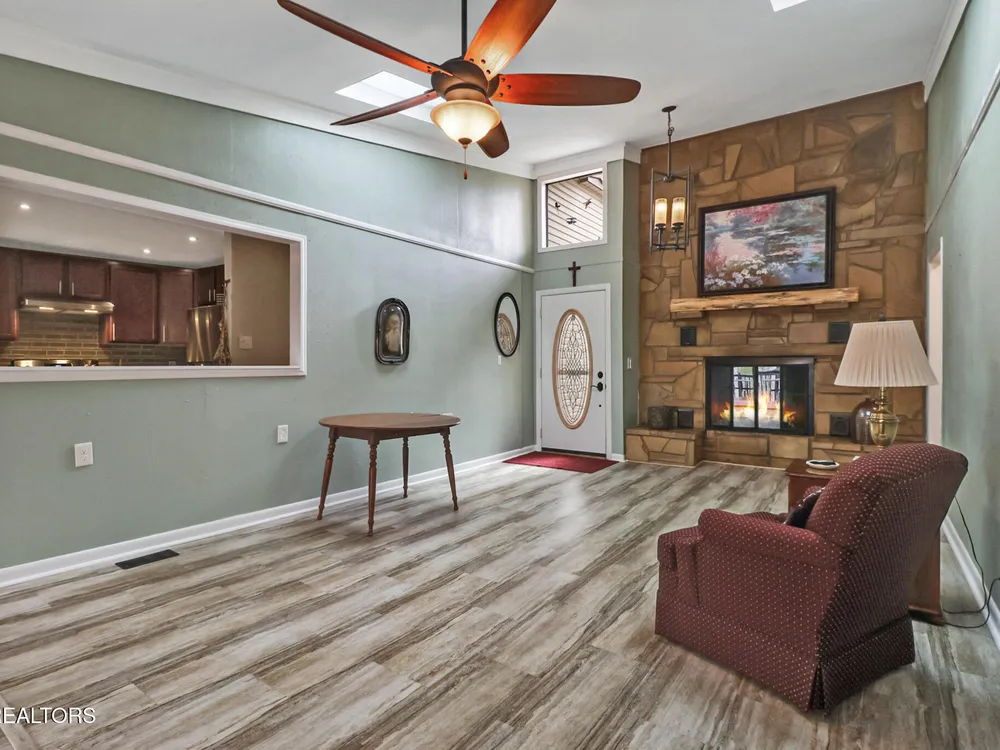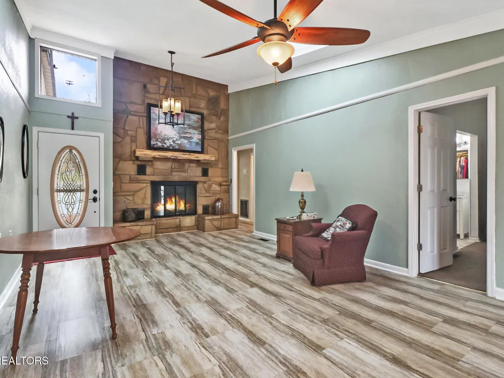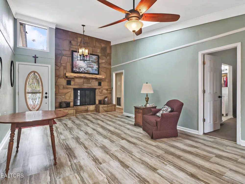 CUTE AND COZY UPDATED RANCH WITH 3 BEDROOMS AND 3 BATHS! Two of the 3 bedrooms are primary bedrooms, one has its own private entrance to the exterior. Large totally remodeled kitchen with plenty of cabinets and a breakfast bar too that's open to the dining/great room with a floor to ceiling fireplace that adds dimension to the room with LTV laminate flooring. The exterior is very unique with a front patio with TREX decking and the back deck (not TREX) leads to a sliding glass door to the encapsulated crawlspace with many options for you such as a workshop and plenty of storage with a dehumidifier. OTHER UPDATES: HVAC- 11/2024 (5-year Warranty which is transferable) Roof 10/2021, breaker box and some wiring updates) COME AND SEE FOR YOURSELF!!!