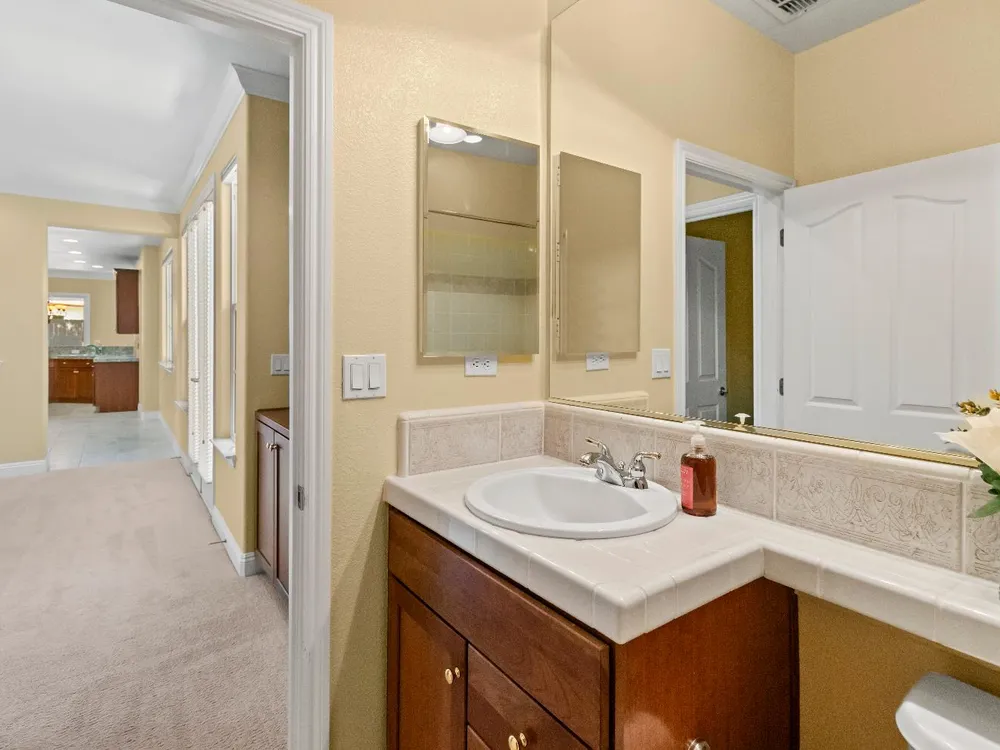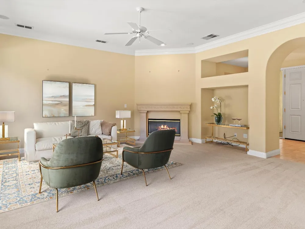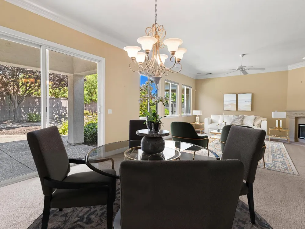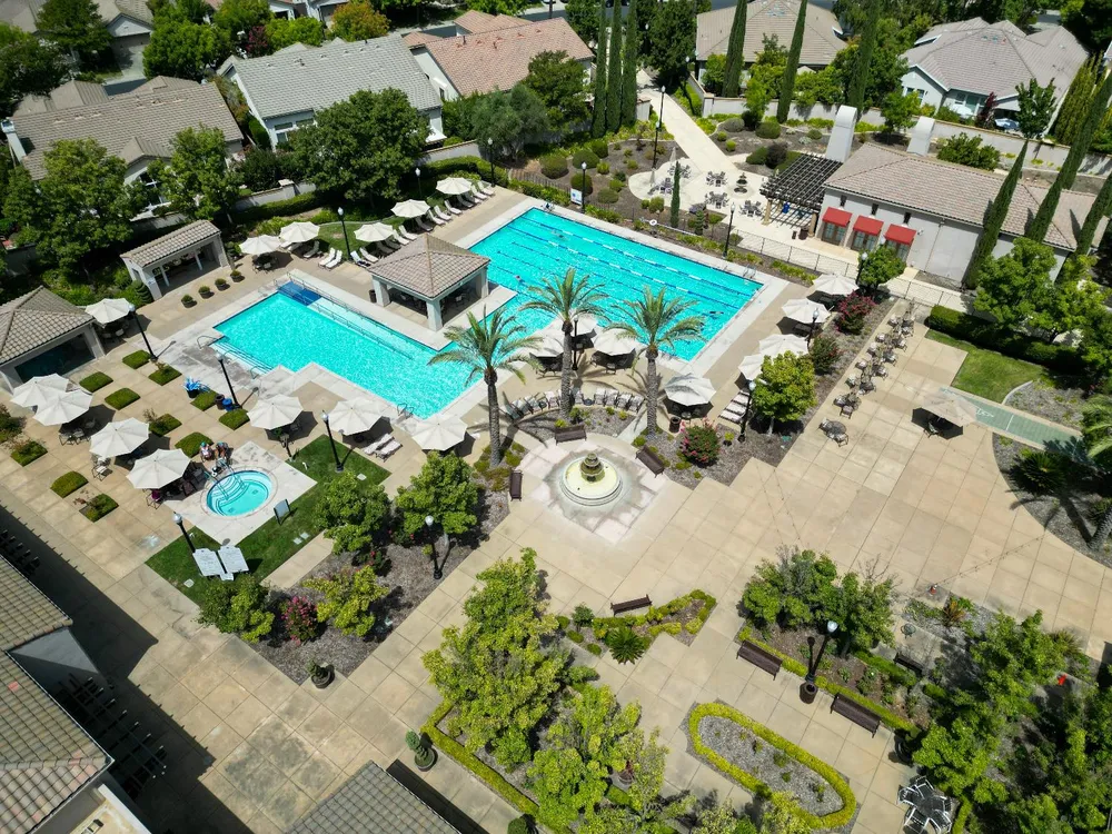 Welcome to this sought-after Sterling floor plan in Heritage Park, a popular 55+ gated resort community in Sacramento. This beautifully designed single-story 2 bed/2 bath home offers 2,040 sq ft of open, functional living space. Lush trees and a charming front walk lead you inside into a spacious living and dining room, complete with a cozy fireplace and access to your backyard retreat with its own meditative walking paths. The adjacent gourmet kitchen and breakfast nook complete the space, making it perfect for everyday living or entertaining guests. The kitchen flows into a separate wing that includes an office/den, bedroom, and full bathroom, an ideal space for long-term visitors. The private primary suite is a true sanctuary with patio access and a spa-inspired bath with a soaking tub, separate shower, and generous walk-in closet. Heritage Park residents enjoy unmatched amenities: a 25,000 sq ft clubhouse, indoor and outdoor pools, fitness center, restaurant, multiple parks, courts for tennis, pickleball, bocce, volleyball, and so much more! Come live the vibrant, active lifestyle you've been dreaming of! *Some photos have been virtually staged to show potential.