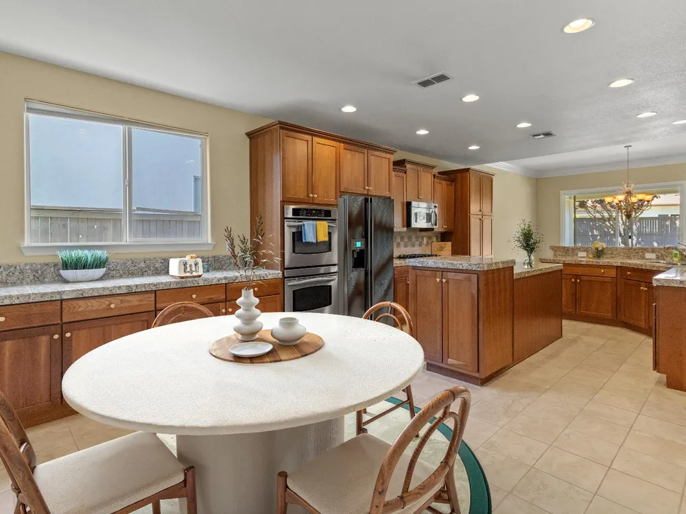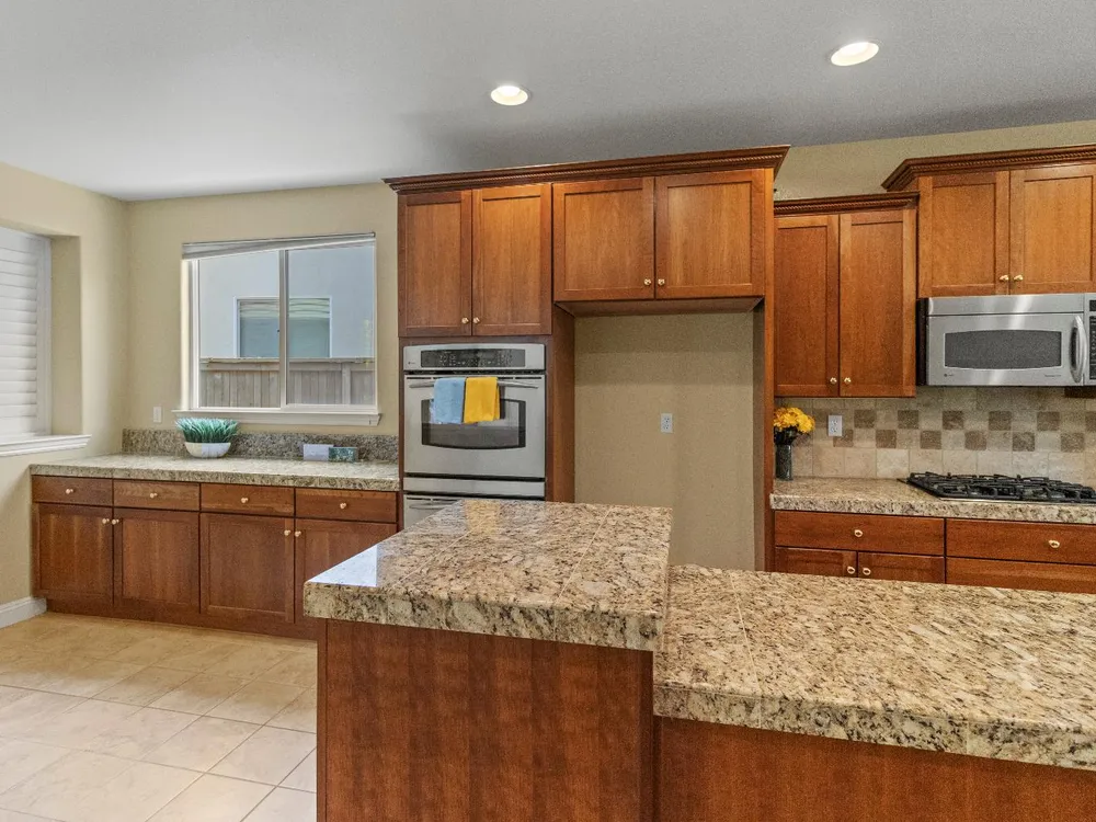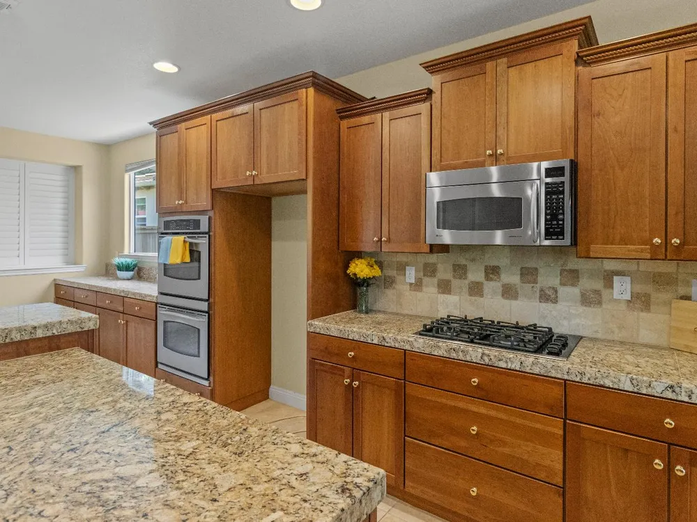 - Gas Cooktop, Built-In Gas Oven, Built-In Gas Range, Dishwasher, Disposal, Microwave, Double Oven, Plumbed For Ice Maker