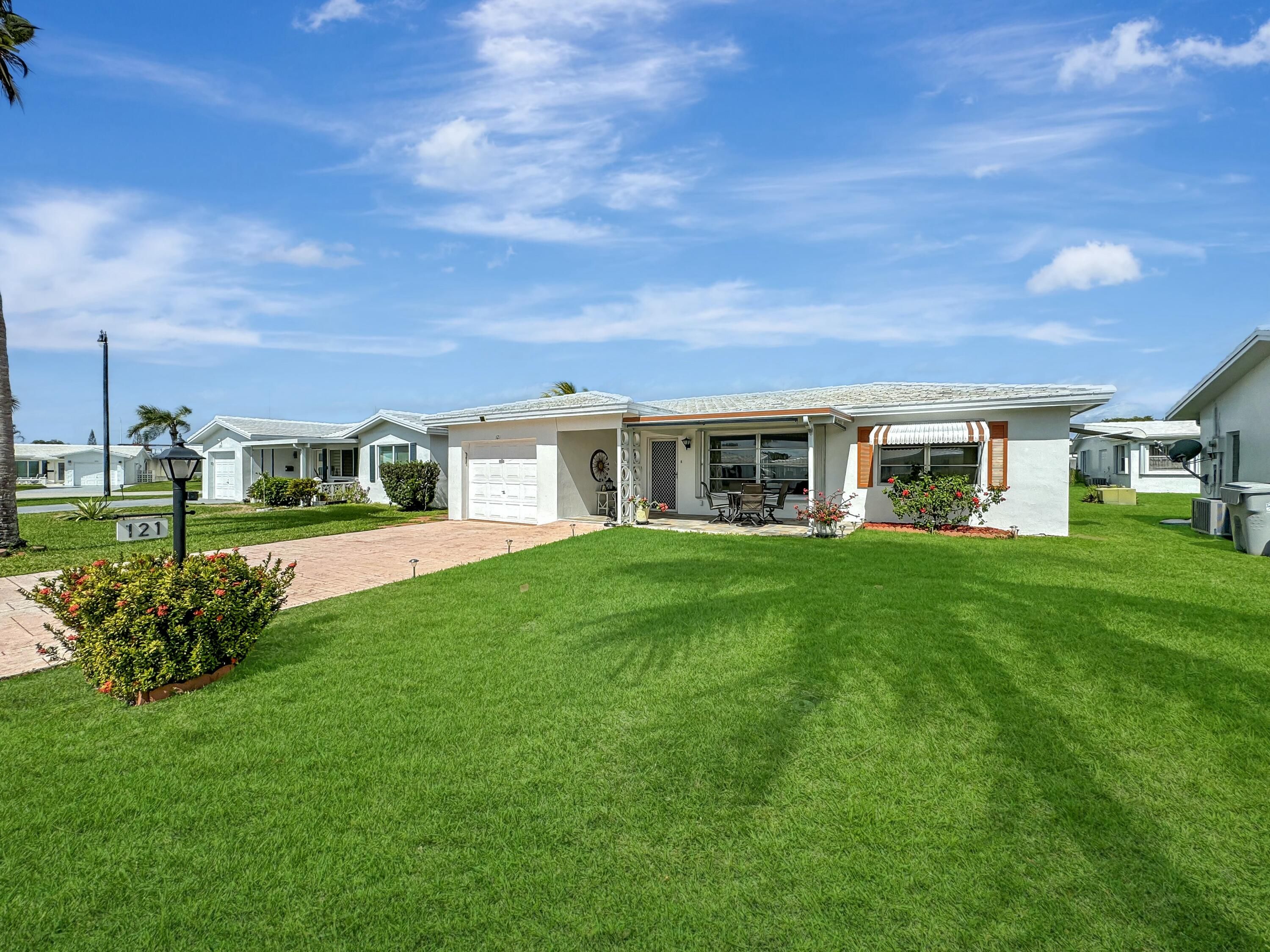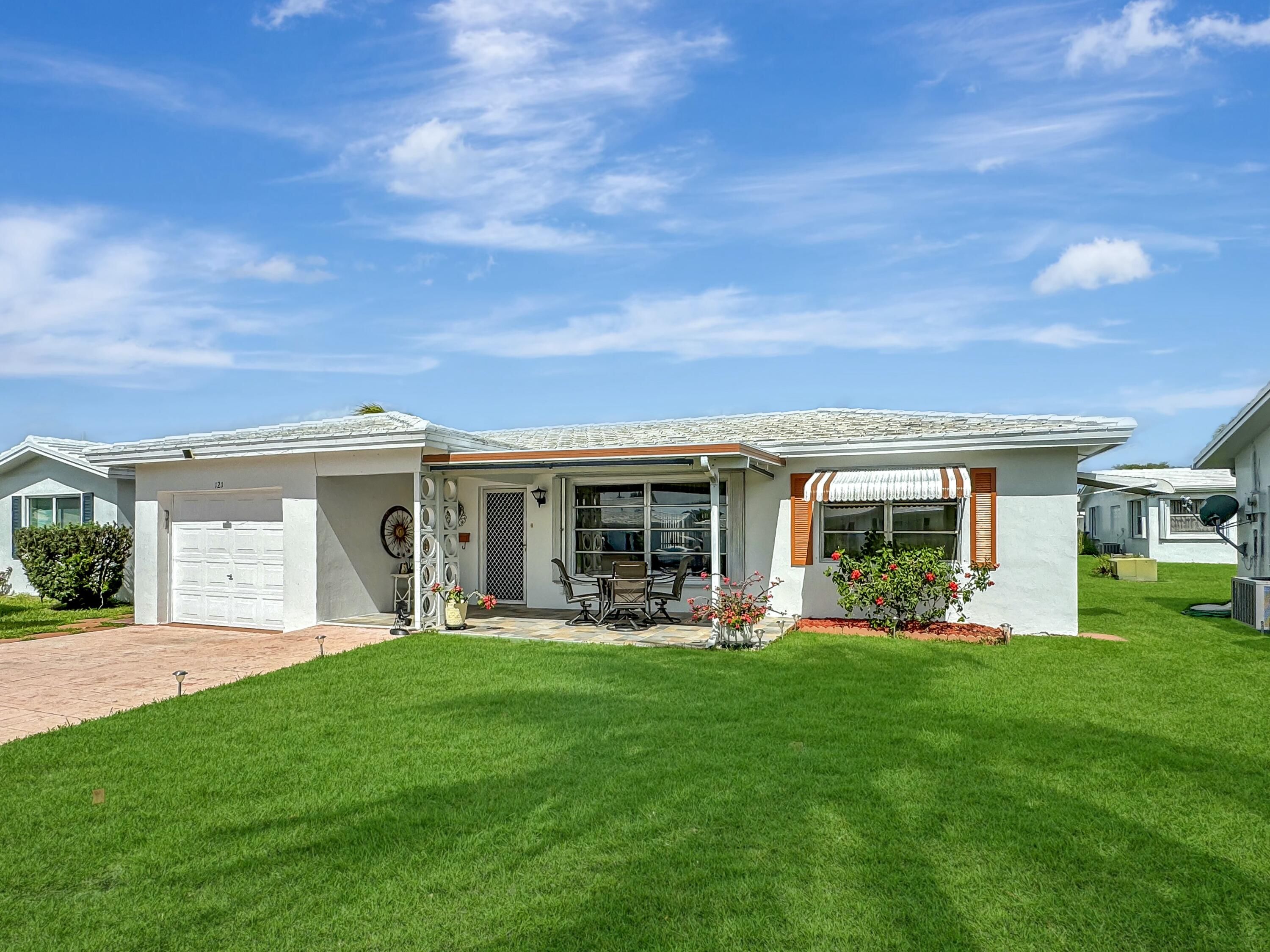 Spacious home in Leisureville. Discover this magnificent concrete home model with land, located in a 55+ community in Leisureville. With a roof redone in 2019, this home offers a garage, parking space for up to 4 cars, and a large covered sunny patio, perfect for relaxation. A large kitchen and an open living room leading into the Florida room create a bright and welcoming living space. This community provides access to a 9-hole (Par 3) golf course, two clubhouses, two heated pools, a sauna, billiards, pétanque, and much more. Minimal fees of $298.00 per month cover water, lawn maintenance, herbicides, as well as exterior house painting and roof maintenance. Only 15 minutes from Florida's beautiful beaches. Don't miss this unique opportunity !