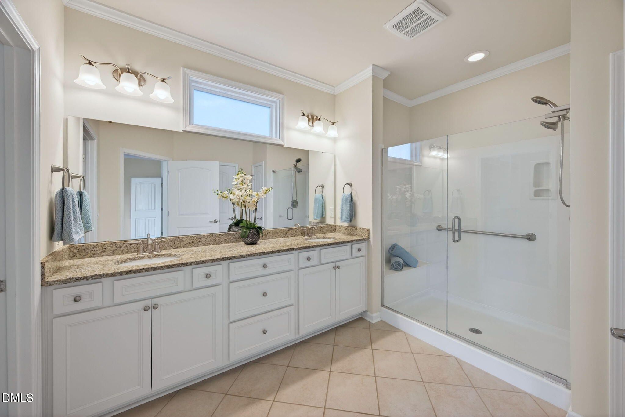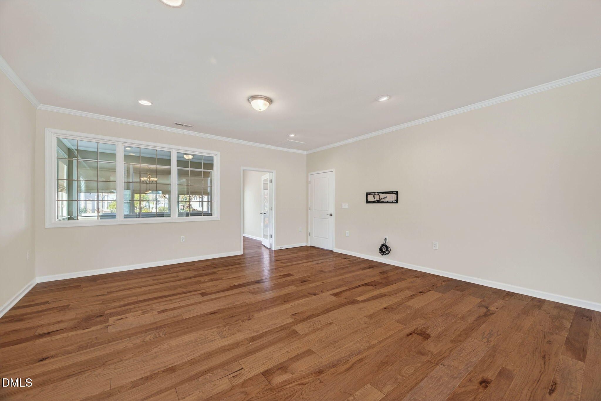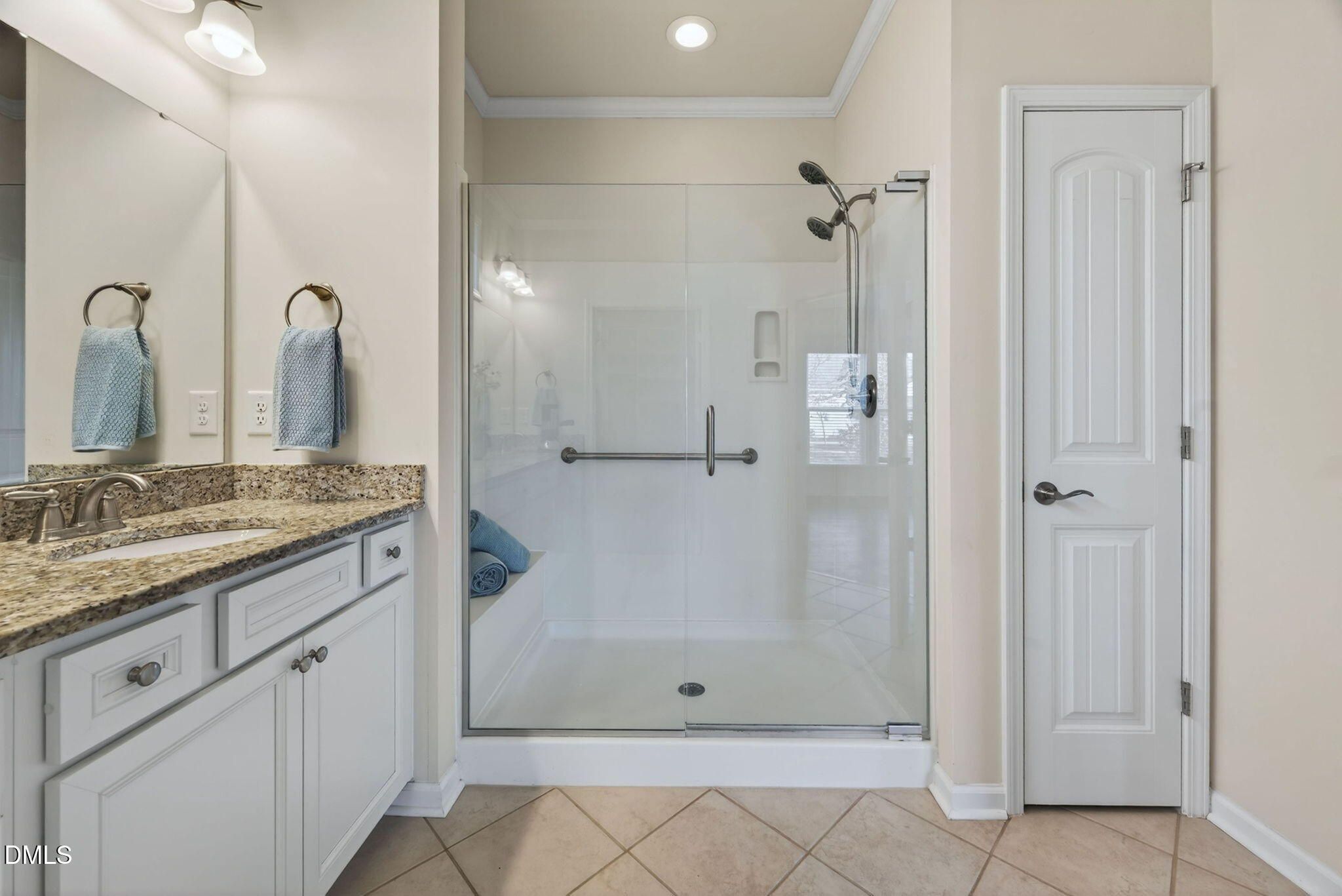 This beautifully maintained 2-story Kendall Park plan offers exceptional space, comfort, and flexibility in one of the Triangle's most sought-after 55+ communities of Carolina Arbors. Featuring 4 bedrooms—3 on the main level plus a private upper-level suite with bedroom, full bath, bonus room, and conditioned storage/flex space—this layout is ideal for guests, hobbies, or multigenerational living. The spacious primary suite is filled with natural light and opens to a private primary bathroom featuring a walk-in shower, dual vanity, and a custom built-in closet system. The main floor's open design includes a spacious kitchen with a center island, generous breakfast area, and seamless flow into the dining room, family room, and a light-filled private sunroom. Warm tones and engineered hardwoods throughout the first floor create an inviting, elegant feel. This home has been meticulously maintained. Enjoy the amenities with a clubhouse, indoor/outdoor pool, fitness center, pickleball and so many clubs and activities. All just minutes to Brier Creek shopping & restaurants, with quick access to RDU Airport.