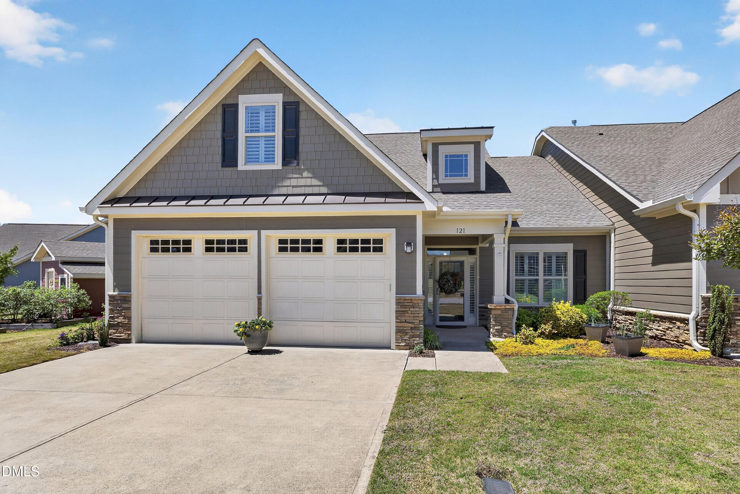 Stunning former model end-unit sought-after 55+ community, perfectly positioned on a premium lot beside the community garden & gathering space--offering the feel of an expansive backyard without the maintenance. Designed to showcase the builder's finest selections, the home features top-tier upgrades throughout, including rich cherry cabinetry with detailed trim, elegant hardwood floors, high-end plush carpeting, custom plantation shutters throughout, storm doors & refined finishes in every room. The open-concept main living area is filled with natural light & anchored by a gas log fireplace, flowing seamlessly into a well-appointed kitchen with granite countertops, tile backsplash, stainless steel appliances, gas range, and generous pantry. The primary suite offers a tray ceiling and a peaceful retreat feel. All 3 bedrooms can be used as primary suites, or the spacious upstairs bonus might be --ideal for guests, hobbies, or private retreat space. Enjoy quiet time on the screened porch, overlooking serene garden views. Additional highlights include a large laundry room with space for a home office, epoxy-coated garage floors with hidden storage areas, and a covered front porch with welcoming entry foyer. Residents enjoy exceptional amenities including a clubhouse with gathering room, kitchen, fitness studio, BBQ area, veranda, and fire pit, along with multiple parks, including bird & dog parks, walking areas, and community garden--all just a short walk away. HOA maintains exterior and landscaping for easy living. No city taxes.