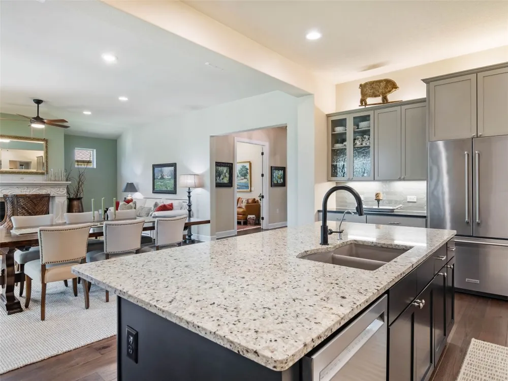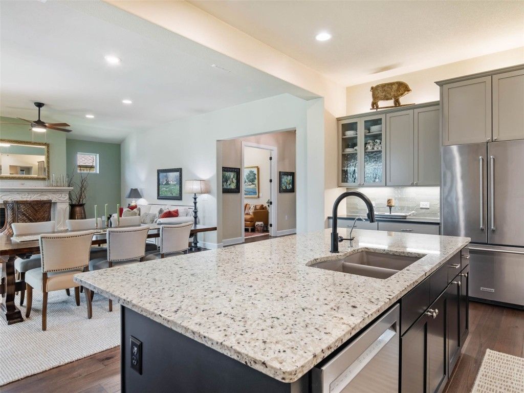 - Breakfast Bar, Ceiling Fan(s), Double Vanity, Eat-in Kitchen, Kitchen Island, Main Level Primary, NoInteriorSteps, Open Floorplan, Pantry, Recessed Lighting, See Remarks, Walk-In Closet(s)