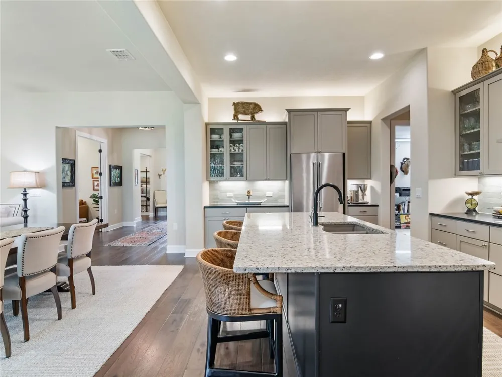 Live the Resort Lifestyle You’ve Dreamed Of! Welcome to the luxurious 55+ community of Kissing Tree, where every day feels like a vacation! Enjoy world-class amenities including pickleball, golf, swimming, a state-of-the-art gym, on-site restaurant, vibrant social groups, and frequent community gatherings—all just steps from your front door. This show-stopper home delivers the ultimate WOW factor and sits right on green 3 of the golf course, offering sweeping views from your oversized covered back patio. Out front, enjoy a tranquil tree-lined preserve for even more natural beauty. Inside, the home boasts designer finishes throughout and thoughtful upgrades made by the current owners that you’ll fall in love with instantly. With a tile roof, stucco siding, and elevated design touches, this home exudes elegance and quality. Offering 2 spacious bedrooms, a dedicated study, and an additional craft/hobby room, the flexible floor plan adapts to your lifestyle. The open-concept living area features a gorgeous fireplace—perfect for relaxing or entertaining in style. This is more than just a home—it's a gateway to living your best life in one of the most sought-after active adult communities in Texas. Don’t miss your chance to experience the Kissing Tree lifestyle—schedule your private showing today!
