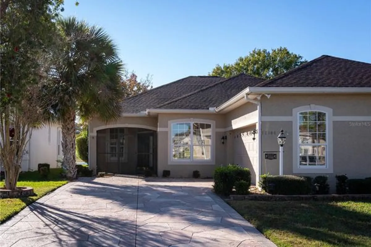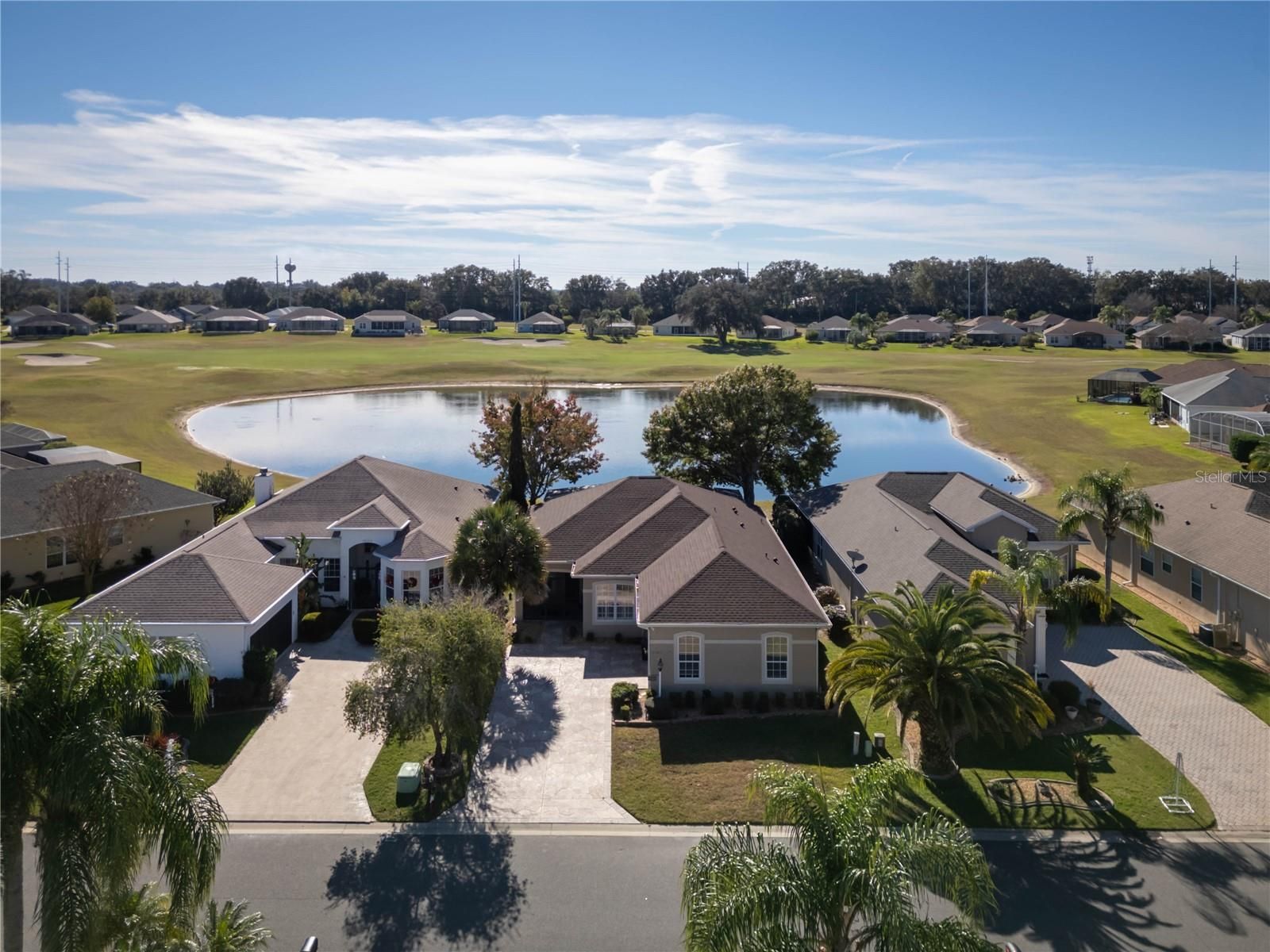 STONECREST GOLF COMMUNITY - WATER VIEW - Looking for a 55+ golf course community to spend your retirement years? Here it is, the perfect location to all types of recreation and activities. You are also just minutes from The Villages nightly entertainment and access to lots of shopping and dining. This location of this community is with a doubt PERFECT. Mature landscape in many areas and this particular home has a beautiful, serene water view and golf course beyond. The screened patio is HUGE and with so much space you could add a pool or spa. The home has great features such as granite counter tops, wood look flooring and some really great appliances. Split bedroom plan has a primary bedroom with a walk-in closet to die for. So much organized space. Primary bath has dual sinks, a garden tub, walk-in shower and water closet, granite counter tops and up to date bathroom cabinets. The second bath also has granite counters and plenty of space for guests. The 2nd bedroom is just off the living area and the den/bedroom that is just off the living area as well is very spacious, this room has no closet. New Roof in 2025, new A/C in 2016. Double doors lead into this space. What else can you ask for in this beautiful Retirement Community.