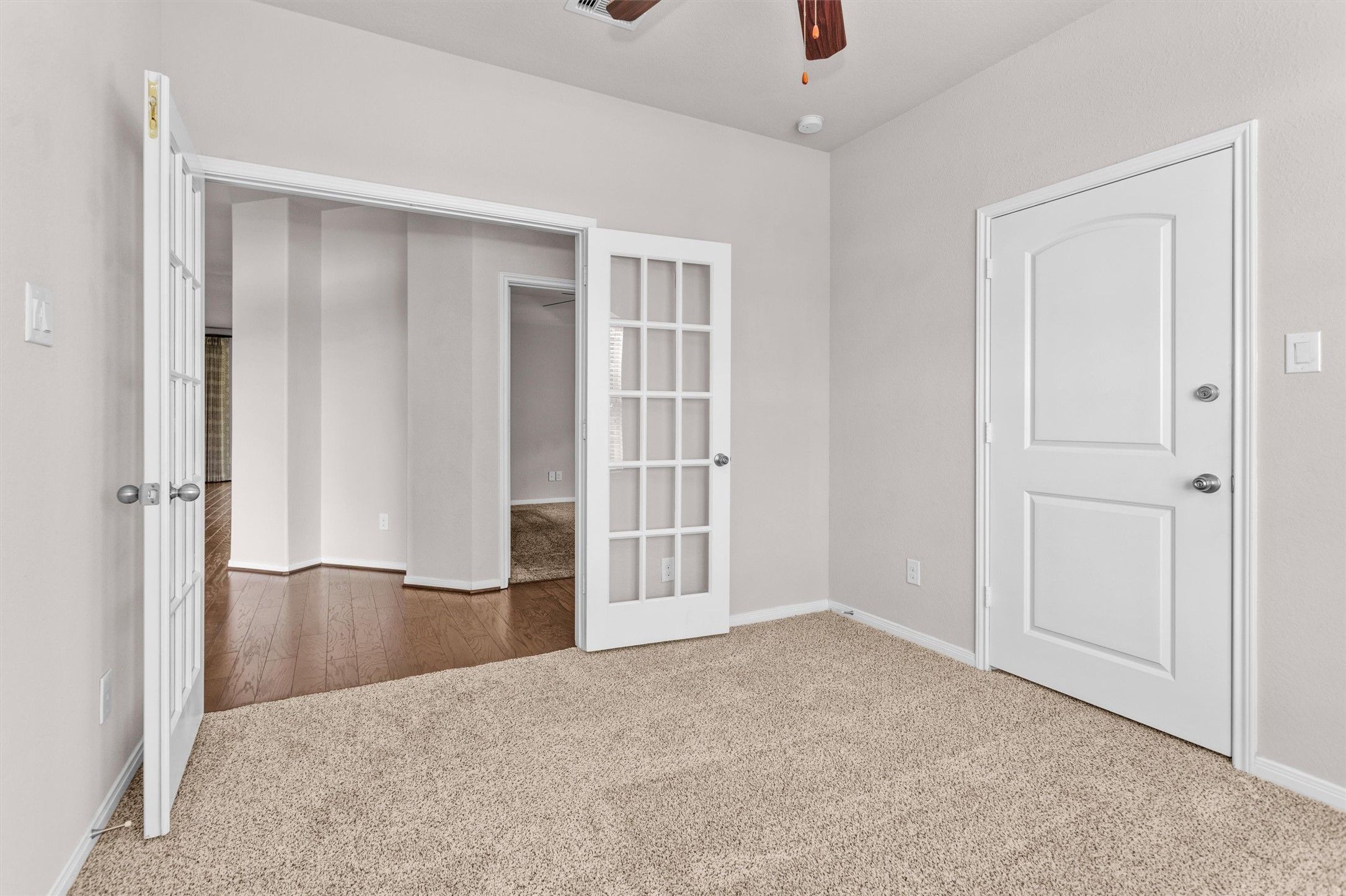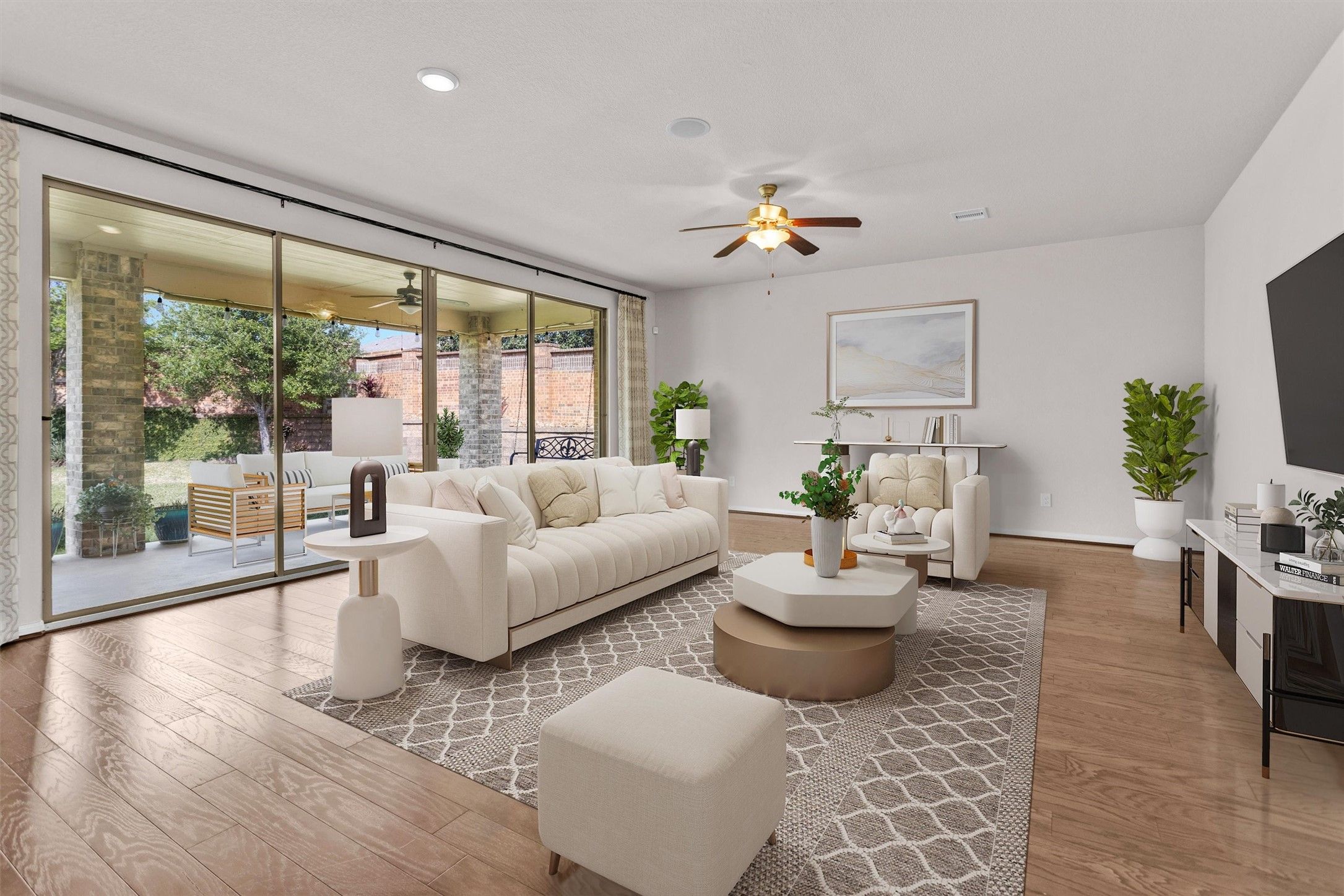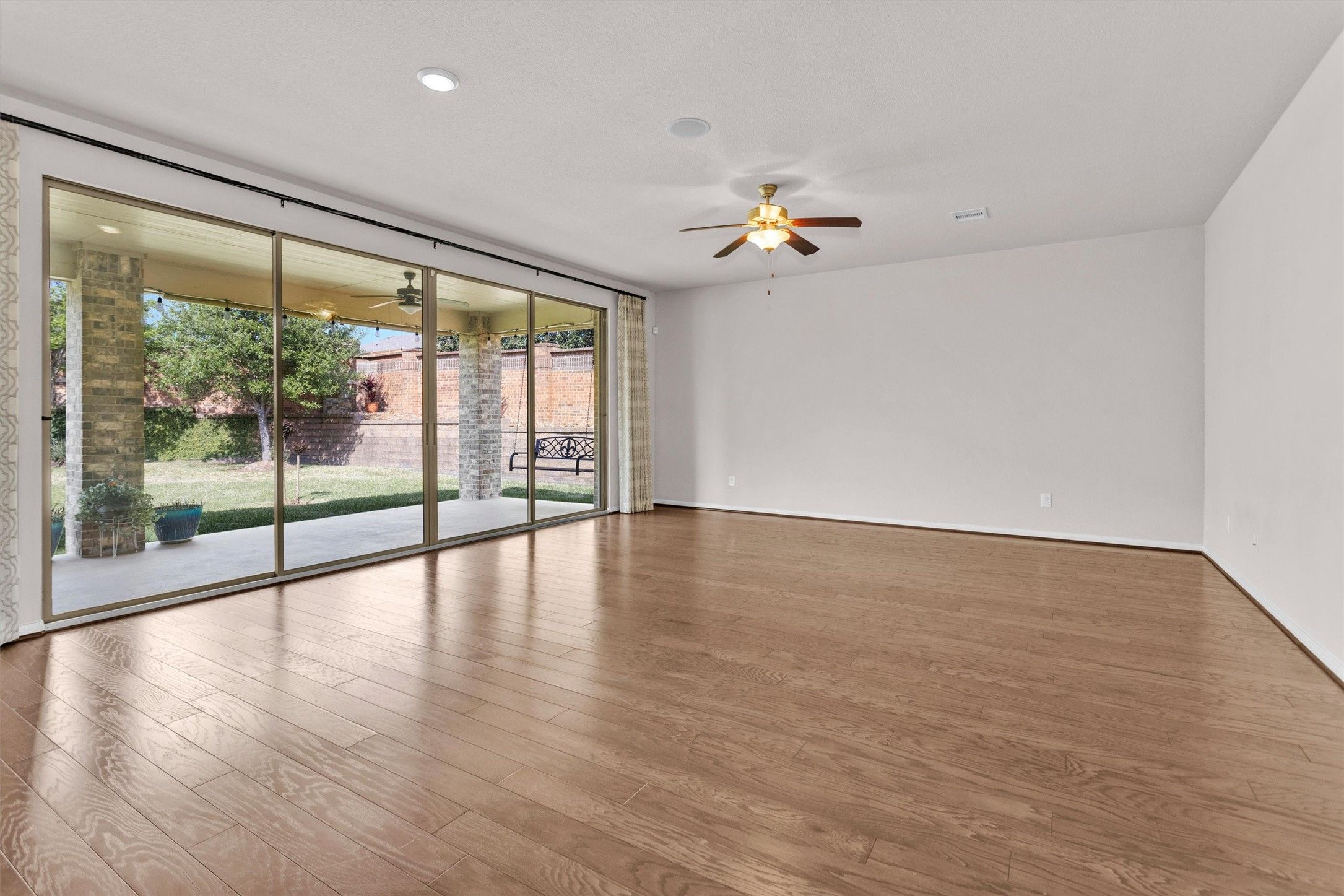 Immaculate home in quaint, over 55 gated community. Just a few blocks away is complete access to Lake Conroe to launch your boat or fish off the pier. One short block away, is the neighborhood clubhouse, playground and 2 pools. Miles of tranquil walking paths and ponds throughout the community. This former model boasts superior finishes such as a wall of sliding doors off the living room blending nature and indoors, creating additional living space off expansive back patio. Back of property is surrounded by 12' brick privacy wall. Wide door ways for disability access, generously sized walk-in closets. Laundry features sink with folding countertop and charming window. Expansive open floor plan great for entertaining, with kitchen over-looking the living room. Also features home office which could be 3rd bedroom. This home truly checks all the boxes!