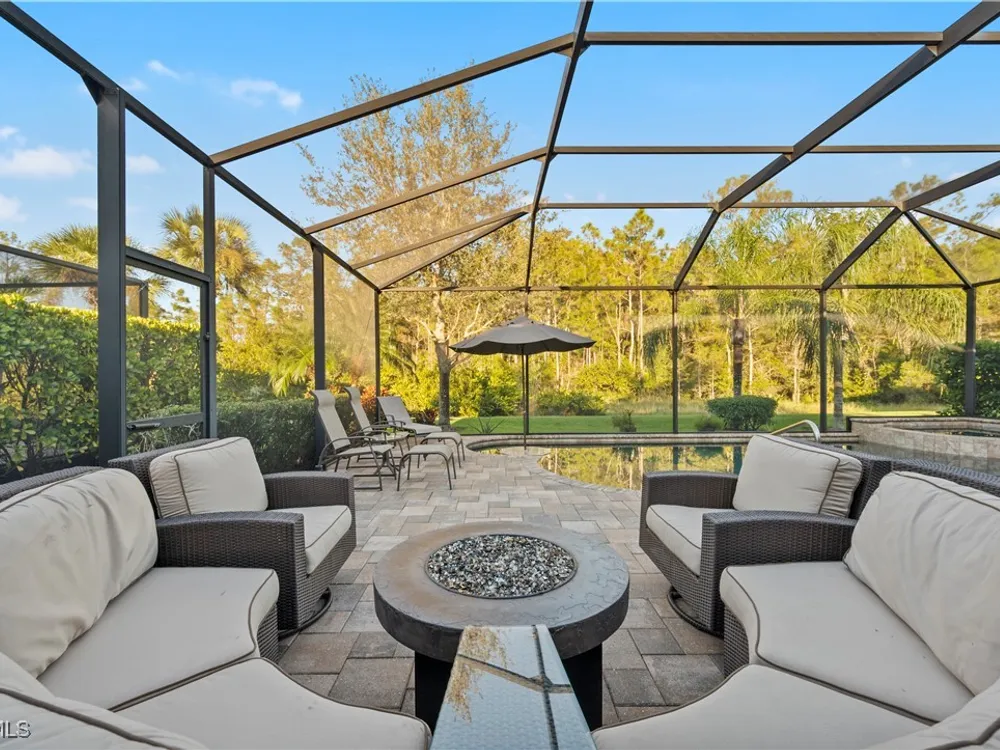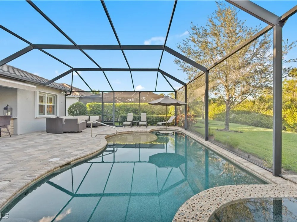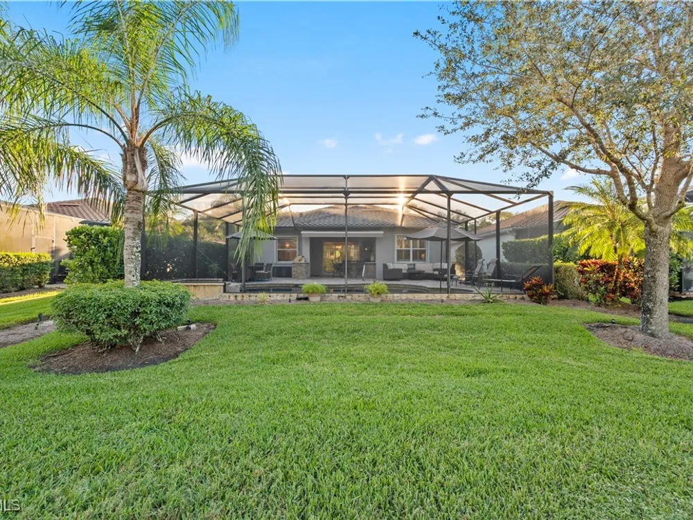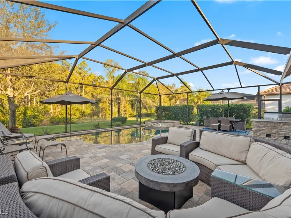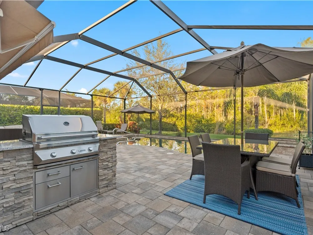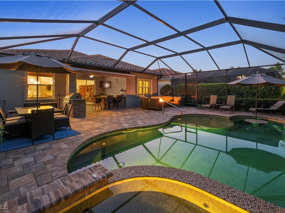 Luxury living meets everyday comfort in this stunning home in Somerset at The Plantation! Step inside to an expansive great room with coffered ceilings and crown molding, where sliding glass doors frame serene preserve views and invite you to the spectacular outdoor living space. The oversized lanai is truly a showstopper—complete with a saltwater pool and spa, tanning ledge with in-water table, and a full outdoor kitchen with bar seating that’s perfect for entertaining or relaxing in total privacy. Inside, the kitchen is beautifully updated with quartz countertops, stainless steel appliances, a coffee bar, custom glass tile backsplash, and a pantry for extra storage. The open layout flows naturally from the kitchen and dining area to the main living space, creating a bright, welcoming atmosphere for gatherings large or small. The primary suite offers a peaceful retreat with tray ceilings, a spacious walk-in closet, and an ensuite bath featuring dual sinks, a makeup vanity, and a walk-in shower. Two additional bedrooms, a full guest bath, and a den/home office provide flexibility for family, guests, or workspace needs. Thoughtful details like plantation shutters, tile throughout (no carpet!), and consistent crown molding elevate every room. Plus, there’s a whole-home water treatment system! Located within the highly sought-after gated community of Somerset at The Plantation Golf & Country Club, residents enjoy resort-style amenities including a clubhouse with dining, resort pool and spa, fitness center, tennis, pickleball, and a championship Hurdzan-Fry golf course. Conveniently close to I-75, RSW Airport, shopping, dining, and the beaches—this home embodies the best of the Southwest Florida lifestyle! This FURNISHED TURNKEY home with custom pool and amazing outdoor space is the BEST VALUE in the community!