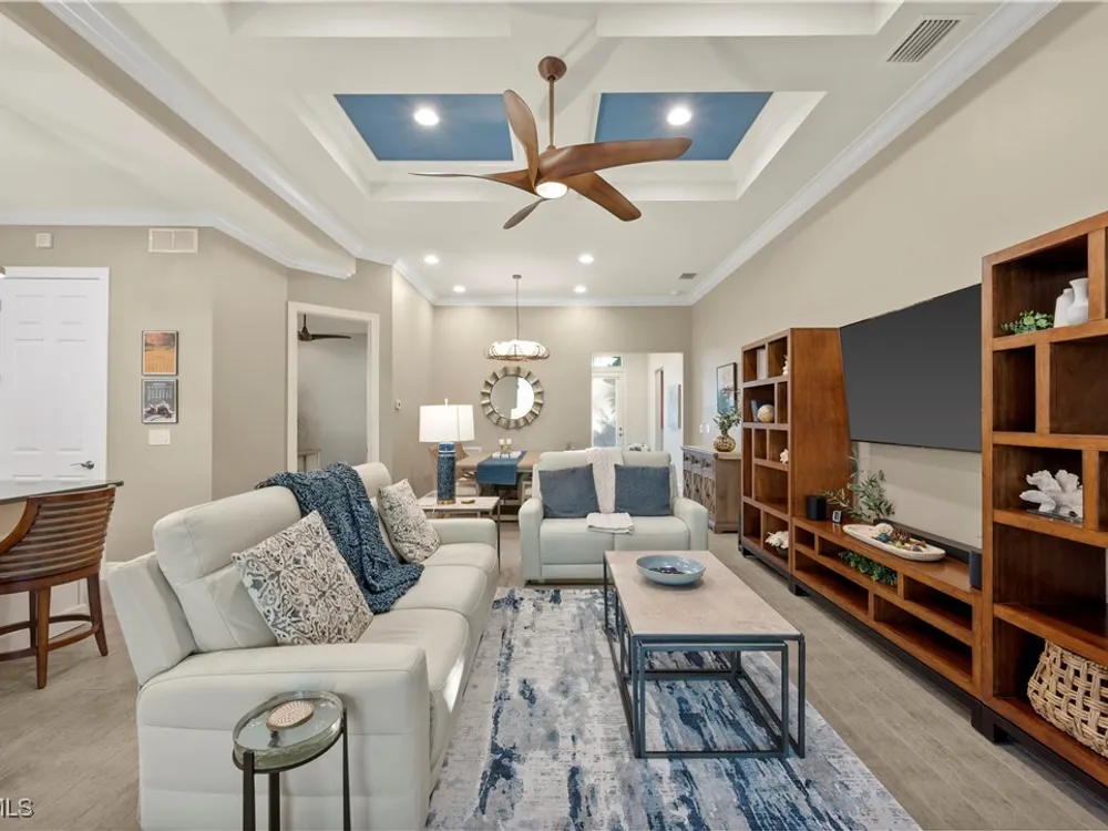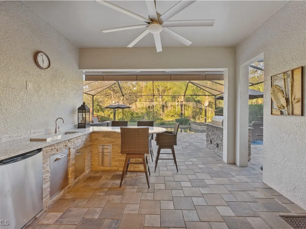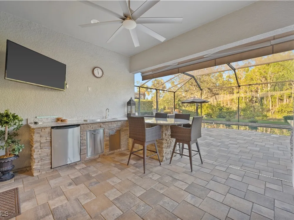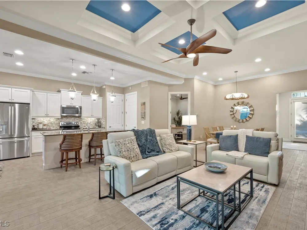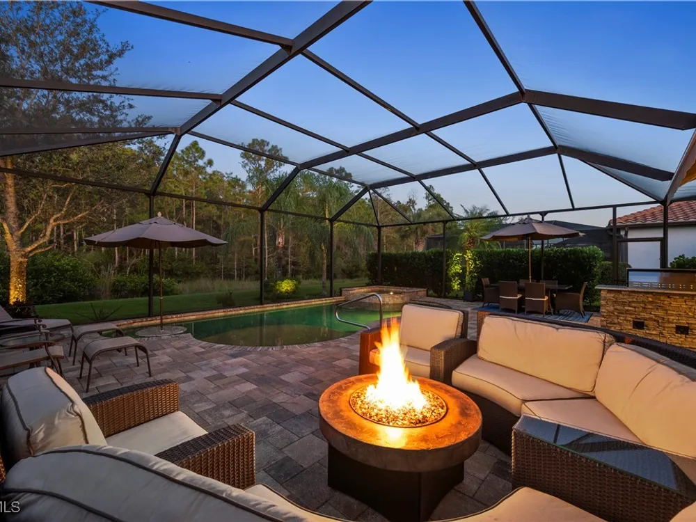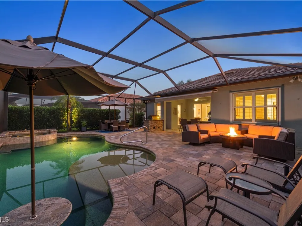 Luxury living meets everyday comfort in this stunning home in Somerset at The Plantation! Step inside to an expansive great room with coffered ceilings and crown molding, where sliding glass doors frame serene preserve views and invite you to the spectacular outdoor living space. The oversized lanai is truly a showstopper—complete with a saltwater pool and spa, tanning ledge with in-water table, and a full outdoor kitchen with bar seating that’s perfect for entertaining or relaxing in total privacy. Inside, the kitchen is beautifully updated with quartz countertops, stainless steel appliances, a coffee bar, custom glass tile backsplash, and a pantry for extra storage. The open layout flows naturally from the kitchen and dining area to the main living space, creating a bright, welcoming atmosphere for gatherings large or small. The primary suite offers a peaceful retreat with tray ceilings, a spacious walk-in closet, and an ensuite bath featuring dual sinks, a makeup vanity, and a walk-in shower. Two additional bedrooms, a full guest bath, and a den/home office provide flexibility for family, guests, or workspace needs. Thoughtful details like plantation shutters, tile throughout (no carpet!), and consistent crown molding elevate every room. Plus, there’s a whole-home water treatment system! Located within the highly sought-after gated community of Somerset at The Plantation Golf & Country Club, residents enjoy resort-style amenities including a clubhouse with dining, resort pool and spa, fitness center, tennis, pickleball, and a championship Hurdzan-Fry golf course. Conveniently close to I-75, RSW Airport, shopping, dining, and the beaches—this home embodies the best of the Southwest Florida lifestyle! This FURNISHED TURNKEY home with custom pool and amazing outdoor space is the BEST VALUE in the community!