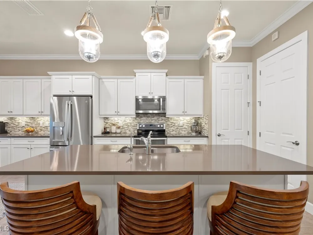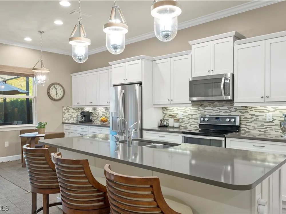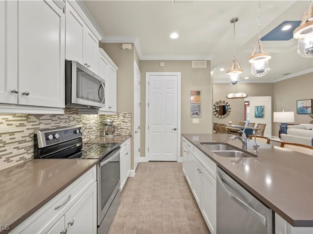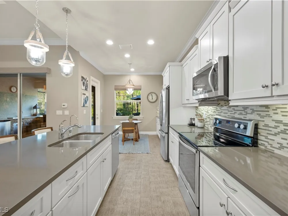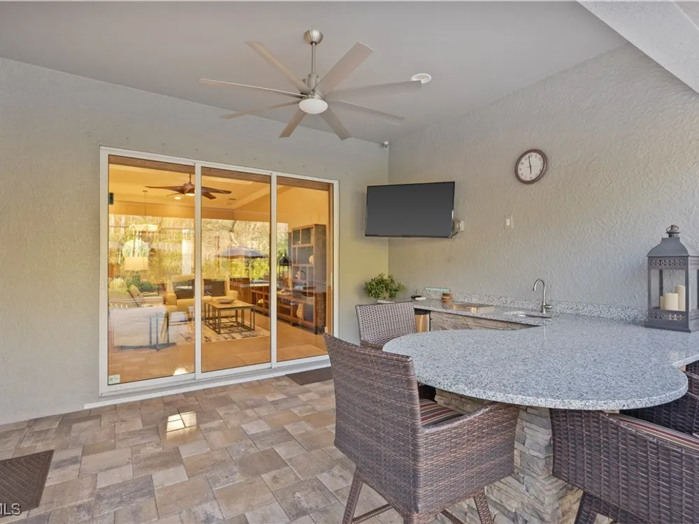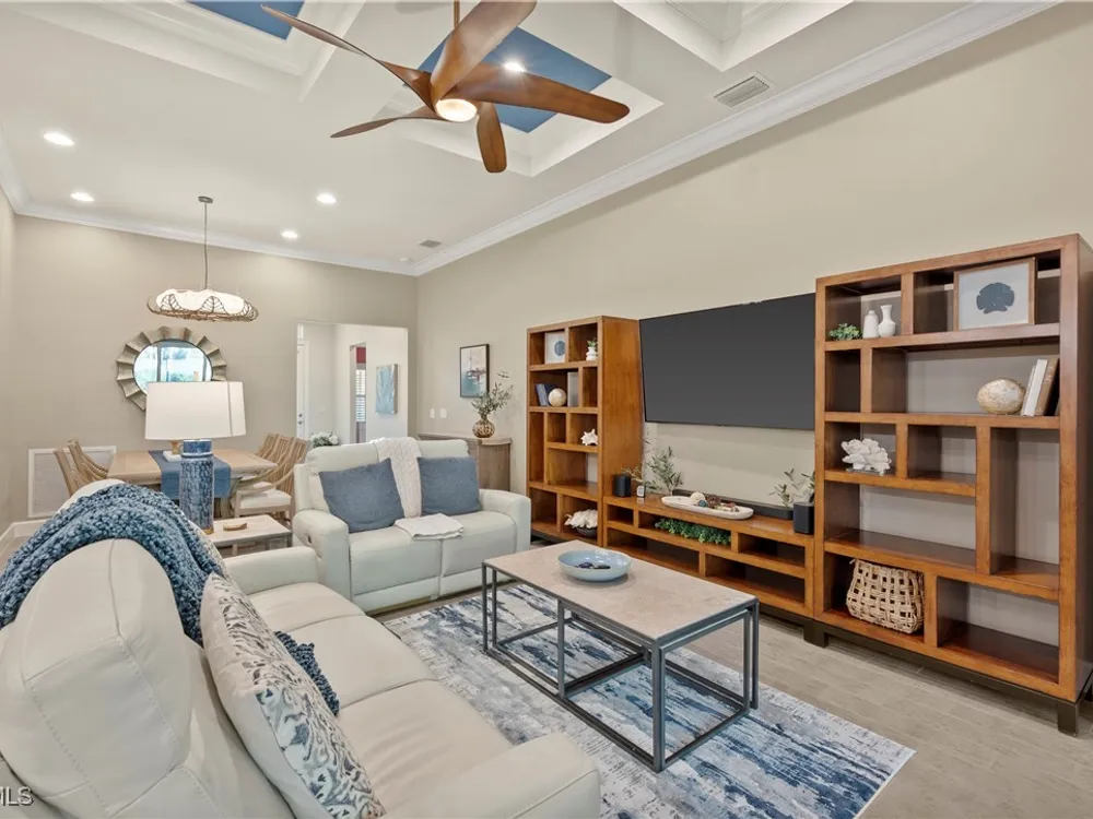 Luxury living meets everyday comfort in this stunning home in Somerset at The Plantation! Step inside to an expansive great room with coffered ceilings and crown molding, where sliding glass doors frame serene preserve views and invite you to the spectacular outdoor living space. The oversized lanai is truly a showstopper—complete with a saltwater pool and spa, tanning ledge with in-water table, and a full outdoor kitchen with bar seating that’s perfect for entertaining or relaxing in total privacy. Inside, the kitchen is beautifully updated with quartz countertops, stainless steel appliances, a coffee bar, custom glass tile backsplash, and a pantry for extra storage. The open layout flows naturally from the kitchen and dining area to the main living space, creating a bright, welcoming atmosphere for gatherings large or small. The primary suite offers a peaceful retreat with tray ceilings, a spacious walk-in closet, and an ensuite bath featuring dual sinks, a makeup vanity, and a walk-in shower. Two additional bedrooms, a full guest bath, and a den/home office provide flexibility for family, guests, or workspace needs. Thoughtful details like plantation shutters, tile throughout (no carpet!), and consistent crown molding elevate every room. Plus, there’s a whole-home water treatment system! Located within the highly sought-after gated community of Somerset at The Plantation Golf & Country Club, residents enjoy resort-style amenities including a clubhouse with dining, resort pool and spa, fitness center, tennis, pickleball, and a championship Hurdzan-Fry golf course. Conveniently close to I-75, RSW Airport, shopping, dining, and the beaches—this home embodies the best of the Southwest Florida lifestyle! This FURNISHED TURNKEY home with custom pool and amazing outdoor space is the BEST VALUE in the community!