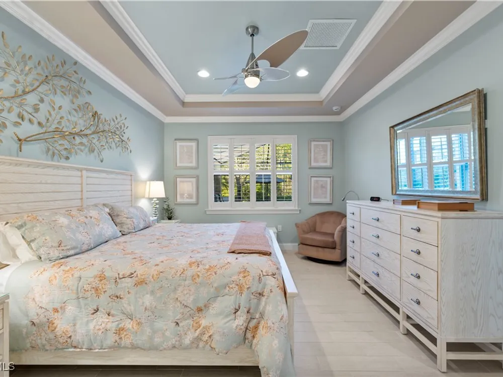 - Wet Bar, Breakfast Bar, Bedroom on Main Level, Breakfast Area, Tray Ceiling(s), Coffered Ceiling(s), Dual Sinks, Entrance Foyer, Family/Dining Room, Kitchen Island, Living/Dining Room, Main Level Primary, Pantry, Separate Shower, Cable TV, Walk-In Closet(s), Window Treatments, High Speed Internet, Home Office, Split Bedrooms