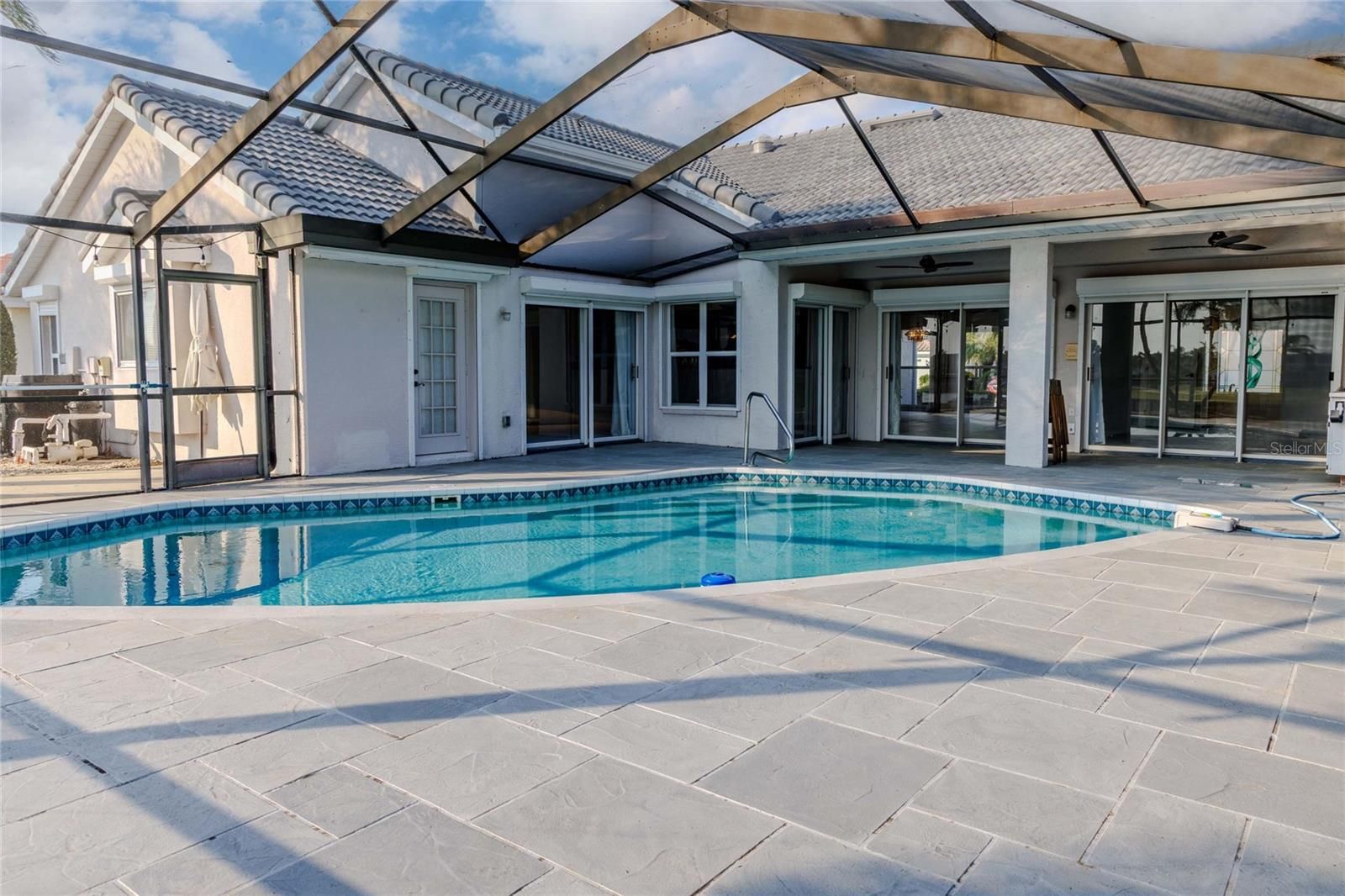 NEW TILE ROOF, NEW LUXURY VINYL FLOORING, NEW POOL HEATER - Great opportunity to own one of the most popular 3/2 split floor plans on a waterfront and golf course lot with one of the best views in Sun City Center. The light and bright home provides new luxury vinyl flooring throughout, living areas that open to the lanai and beautiful pool, a spacious open kitchen with beautiful wood cabinets, a new dishwasher, newer double oven and microwave, a breakfast bar and island. Plus - the house was replumbed in 2023, an upgrade that new owners will not have to undertake and has attached hurricane shutters for added safety. Each of the three bedrooms offers buyers different options. The primary bedroom opens onto the lanai and pool, includes double walk-ins, en-suite bath with double sinks, garden tub and separate shower and water closet. The second bedroom has another en-suite bathroom that leads to the lanai and pool, and the third bedroom has built-in shelves providing an office/den option. The split bedroom plan ensures privacy for all occupants. The laundry room, with washer and dryer included, is located just off the kitchen and provides abundant cabinets, laundry tub and workspace and connects to the garage. The large 2-car garage has one wall of built-in storage. Plus - what makes this home really stand out are the spacious screened lanai with outdoor kitchen, heated pool, outside portable hot tub, and the gorgeous view. In addition to your private pool and beautiful view from this home, owners also have access to all the facilities and amenities of the Sun City Center Master Association, including a state-of-the-art fitness center, indoor and outdoor pools, tennis courts, pickleball courts, lawn bowl greens, horseshoe pits, volleyball courts, dog parks and a billiards room. The Sun City Center and Hillsborough County's Southshore areas provide an abundance of additional options for recreation, shopping, medical services, with three international airports with an hour's drive time. Now's the time to start living the resort lifestyle in Sun City Center!