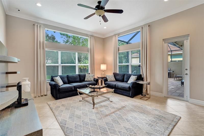 Don’t miss out on the 3 bedroom + den, 3 bath Lydia model located on an oversized, very private lot with canal backdrop and a large fenced yard. Enjoy Florida living with a sparkling saltwater chlorinated heated pool featuring a sun shelf and an expanded screened patio perfect for relaxing evenings. Thoughtful upgrades include a whole-house generator, interior/exterior camera system, central vacuum, fitted walk-in closets, crown molding, high hat lighting, a new 2023 high-efficiency A/C, epoxy garage floor and a 2024 Smart wireless garage door opener. The chef’s kitchen features a center island and walk-in pantry. Beautifully landscaped and move-in ready—this house feels like home.