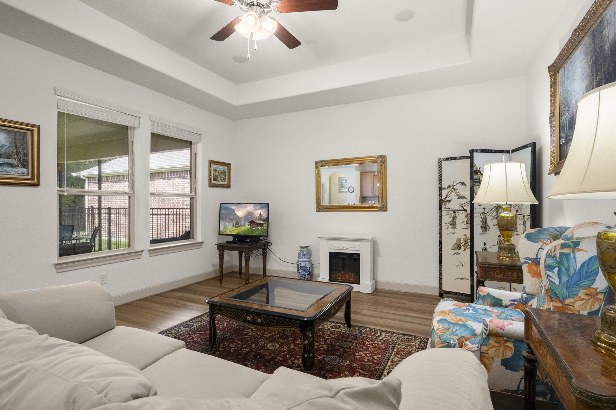 Discover exclusive lakefront living in the prestigious White Oak Ranch community on Lake Conroe. 2 Bedroom plus a flex room. Open kitchn with breakfast bar looks out into the den area. Two nice size bedrooms. Flex room can be used as home office, dining area or spare bedroom. Screened patio is great for entertaining, morning coffee or an evening glass of wine. Reverse Osmosis water filter. This 55+ gated enclave offers ultimate tranquility with luxury amenities, including a clubhouse, swimming pool, fitness center, bocce and pickleball courts, and a community boat launch. Activities are scheduled throughout the month for the 55+ from bible study, plant clubs, happy hours and art classes. Enjoy serene wooded surroundings, scenic views, and low-maintenance living—all with no MUD tax. Embrace this exceptional opportunity for a remarkable lakeside retreat in White Oak Ranch.