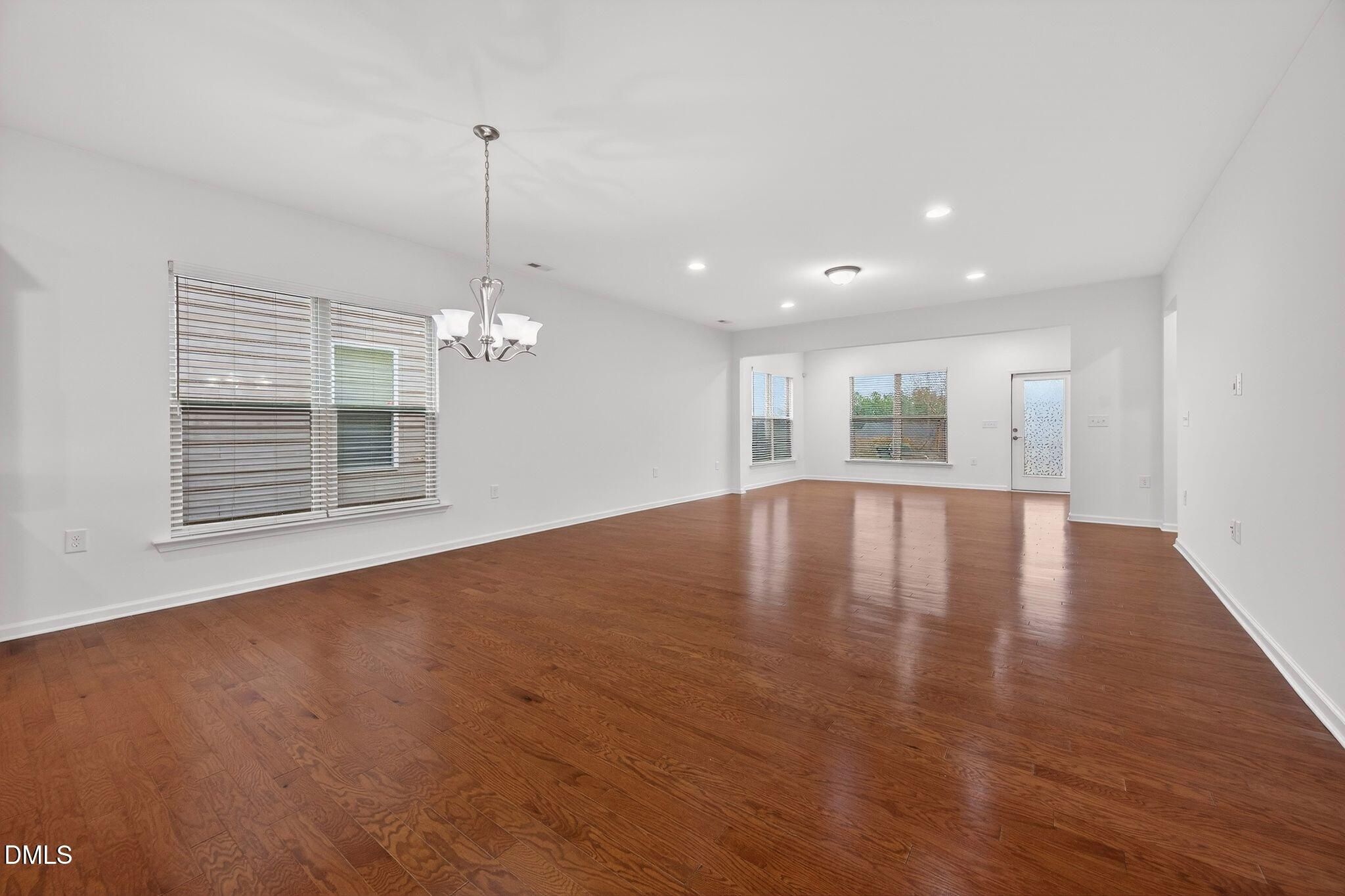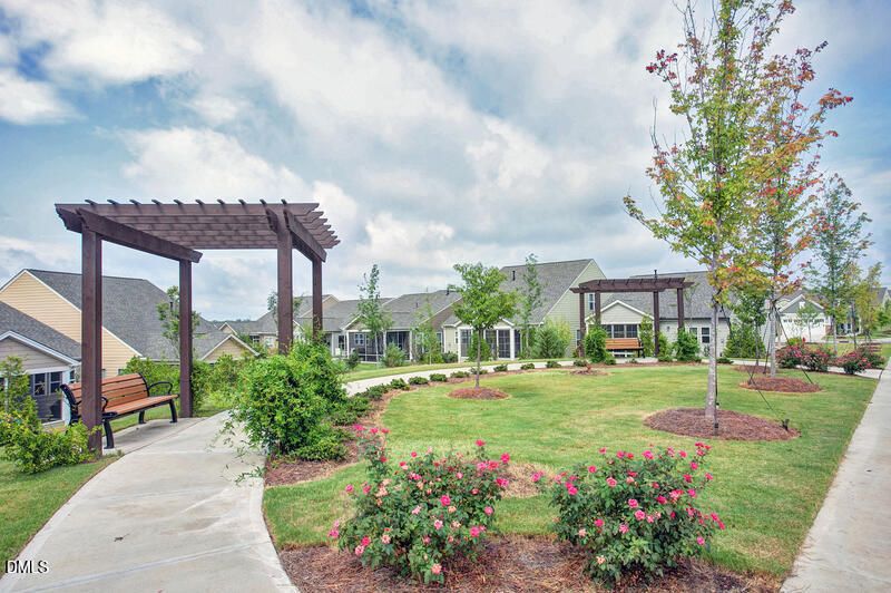 Stunning one level, Kendall Park home in one of Raleigh / Durham's top 55+ communities! This unique home features generous sized rooms with plenty of storage and extra living space. Open and bright, the kitchen boasts a large center island, a breakfast nook with separate space ideal for a cabinet or writing desk, gas range, large pantry and bright windows overlooking the gardens. The great room offers plenty of room for full sized dining table and generous furniture space. The sunroom off the great room is bright and open filled with natural light. Gorgeous hardwoods floors in main areas. The large primary suite will easily accommodate a king bed with side tables, dressers and extra seating. Primary bath with dual vanities, step in shower, linen closet and large walk-in closet. Secondary bedroom has a walk-in closet, linen closet and is adjacent to a full bath. Mud room / drop zone off garage is handy for everyday storage. You will love the extra large extended garage with separate workshop / golf cart space! Floored attic with pull down stairs for overflow storage also! Relax on the covered porch with views of the tree tops. Enjoy resort style amenities with indoor and outdoor pools, fitness, pickleball, tennis, and endless events and activities! Located in the convenient Brier Creek area near great shopping, restaurants, service and world class medical!