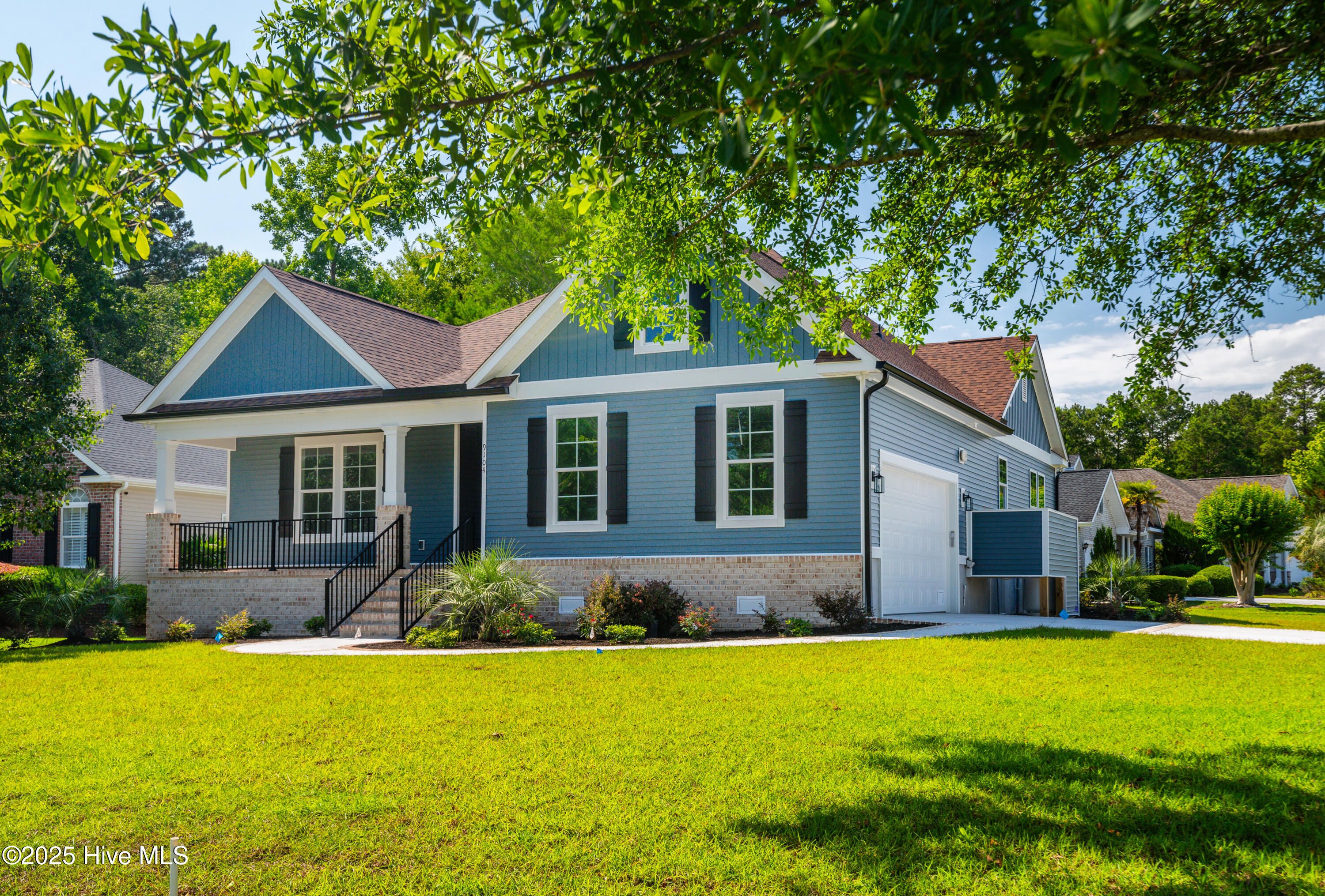 Pre sale/ Features and options may vary.* Are you looking for a new home with tons of details and craftsmanship? Look no further! Fox Homes, a local custom builder, will be building this 3 bedroom/ 2 bathroom 2000+/- sqft Craftsman style home in the gated golf community of Brunswick Plantation. The exterior of the home will have stonework accents and a front loading garage for exceptional curb appeal. With this open floor plan, you will find 9-foot+ ceilings throughout, along with a vaulted ceiling with wood beams in the open concept kitchen, living and dining area, along with tray ceilings in the master bedroom, and foyer. The home will feature built-in cabinetry and crown molding throughout, as well as, custom wainscoting in the entryway and great room. Your kitchen will boast custom cabinetry, quartz countertops, subway tile backsplash and a nine-foot island. The large master suite includes an oversized walk-in closet with built-in shelving. The en-suite master bathroom will feature an oversized shower with floor to the ceiling tile, water closet, and double vanities with granite countertops. Enjoy your late afternoon on the back porch. The laundry room and mud room are situated off the 2 car garage will have a drop zone bench for convenience. The homeowners of Brunswick Plantation enjoy many amenities, such as both indoor and outdoor pools, a hot tub, fitness center, and tennis and pickleball courts. Located close to the restaurants and shopping of downtown Calabash, you are minutes to Sunset Beach and close to the SC border and all the attractions of the Myrtle Beach area. *Photos are of a model home and are for illustration purposes only. Features and options may vary.*