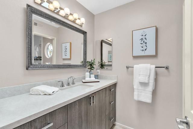 Step into this enchanting Lake San Marcos home and prepare to be captivated by breathtaking 180 degree hillside views from the moment you open the door. Every room is designed to showcase these stunning vistas, creating a serene escape you will love coming home to. The primary suite offers a large walk in closet and fabulous hillside views. The living room greets you with soaring ceilings and a cozy fireplace adorned with elegant ledgestone accents, perfect for unwinding after a long day. The bright and inviting kitchen boasts Corian countertops, ample cabinet space, stainless steel appliances, and a delightful breakfast nook. Both bathrooms have been beautifully updated, featuring sleek walk-in showers with modern tilework, chic new vanities, and stylish fixtures. Outside, the wraparound yard offers multiple patio areas, including a gated front courtyard, where you can relax, entertain, or simply soak in the incredible views. Additional highlights include newer windows throughout, an attached two-car garage, and the privacy of an end unit with only one shared wall. Nestled on a peaceful cul-de-sac, this home is just a short stroll from the Lakehouse Hotel & Resort and all the fantastic community amenities that Lake San Marcos has to offer. This is more than a home, it is your personal retreat, ready and waiting for you!