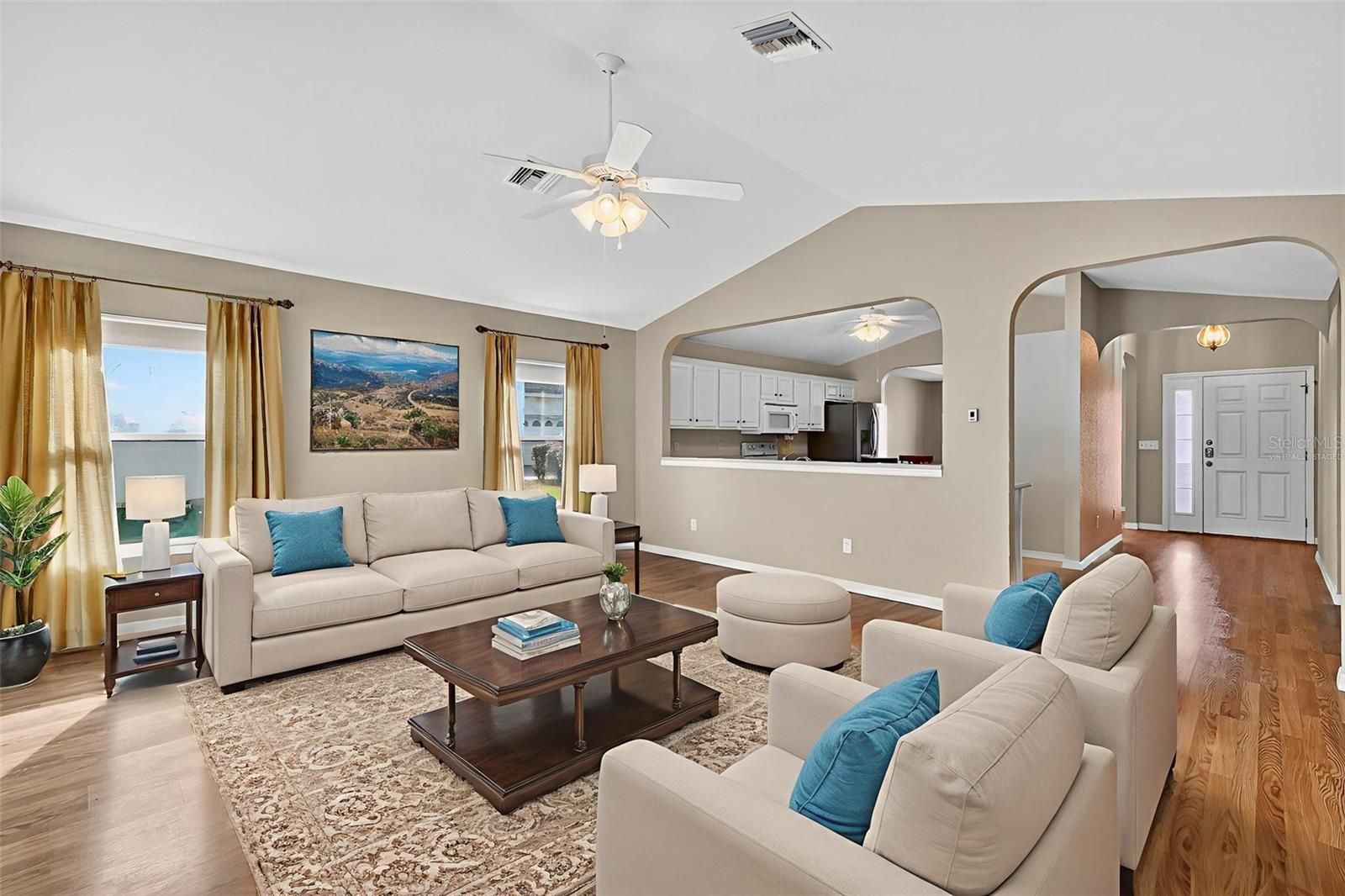 Welcome to Stonecrest, a vibrant 55+ gated golf community just outside The Villages, where resort-style living meets everyday convenience. Start your mornings with a round of golf or a dip in one of four pools, including an indoor option. Enjoy a golf cart lifestyle with a private gate access connecting you to nearby shops, restaurants, and medical offices. With two community centers, pickleball and tennis courts, a fitness center, library, and endless clubs and activities, every day feels like a getaway. This 3 bedroom, 2 bathroom Hickory model built by Armstrong is move-in ready and beautifully maintained. Highlights include a screened 2-car garage, enclosed lanai with upgraded Energy Star windows (2019), new roof (2023), water heater (2025), and A/C (2020). Inside, the thoughtful layout features an eat-in kitchen that opens to a bright living area, a private primary suite with a walk-in closet, and two welcoming guest rooms. Enjoy comfort, convenience, and community all in one place.