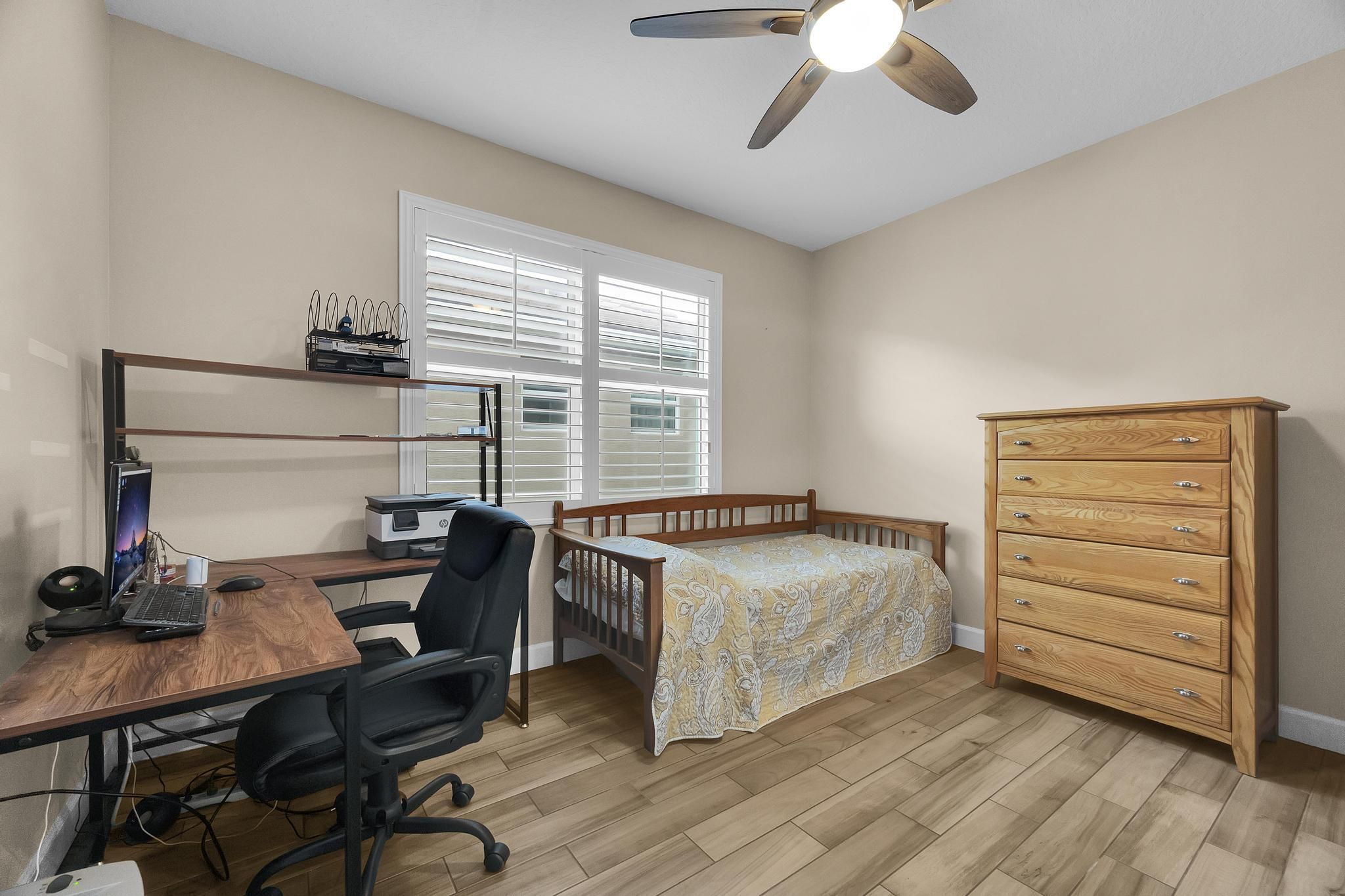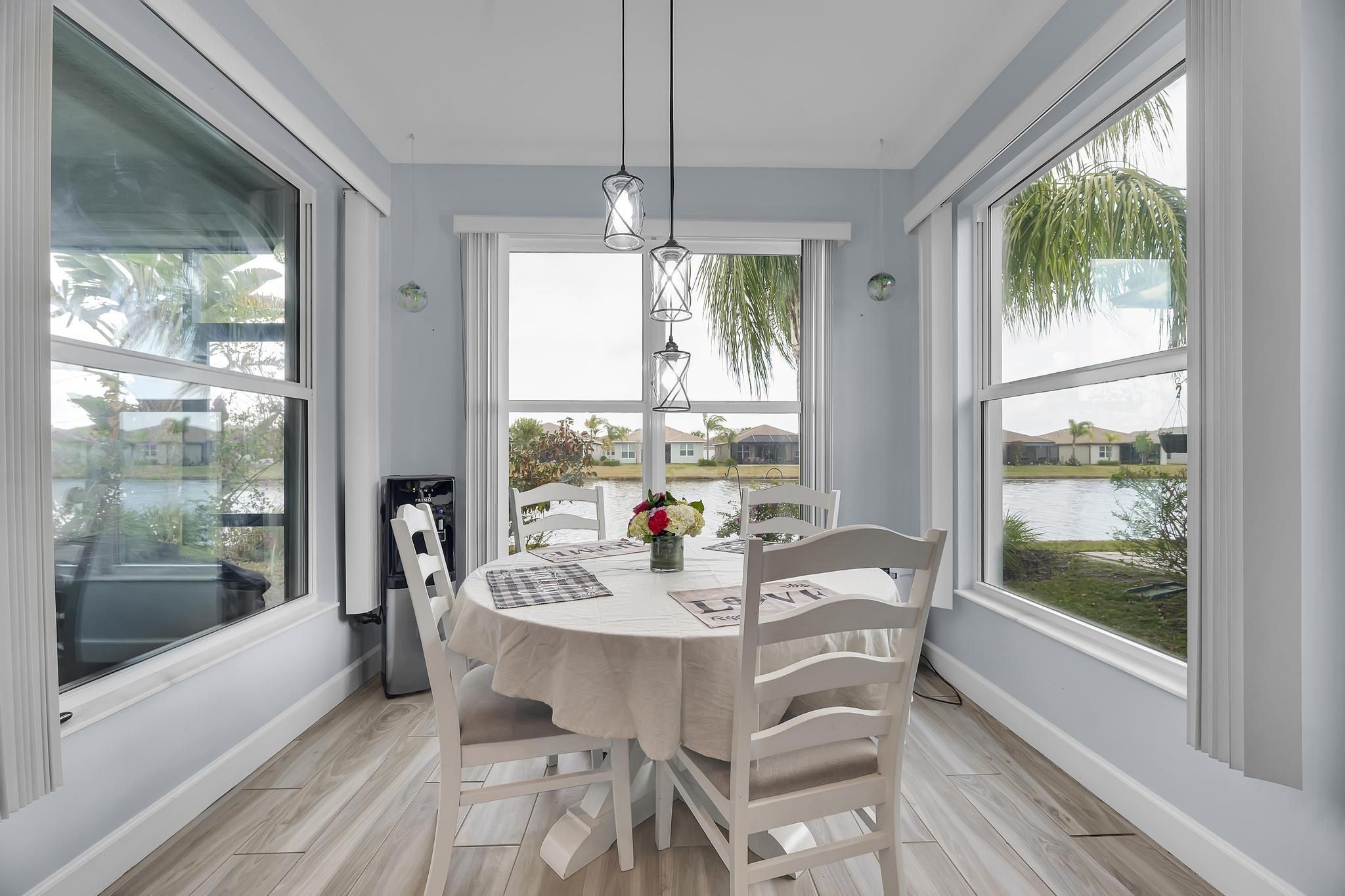 Welcome to 12127 SW Jasper Lake way in beautiful Port Saint Lucie, a 2019 lakefront home in a sought-after 55+ community with lawn care included. Enjoy peaceful water views and maintenance-free living. This well-maintained home With 2 spacious bedrooms, 2 full baths + a den. Features impact windows throughout & added recessed lighting for a bright, modern feel. No carpet, tile flooring throughout. Both baths offer shaded shower windows; guest bath has a walk-in shower and the primary bath features full mirrors. Upgraded kitchen with full backsplash and extended cabinetry. Water softener, hard-wired smoke alarms, and plantation blinds. Resort-style, Residents enjoy an impressive lineup of amenities • Basketball • Bike & Jog Paths • Billiards • Pool • Café/Restaurant • Clubhouse • Fitne