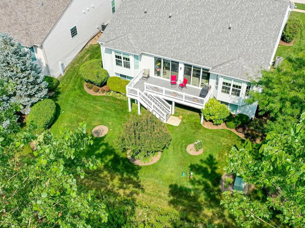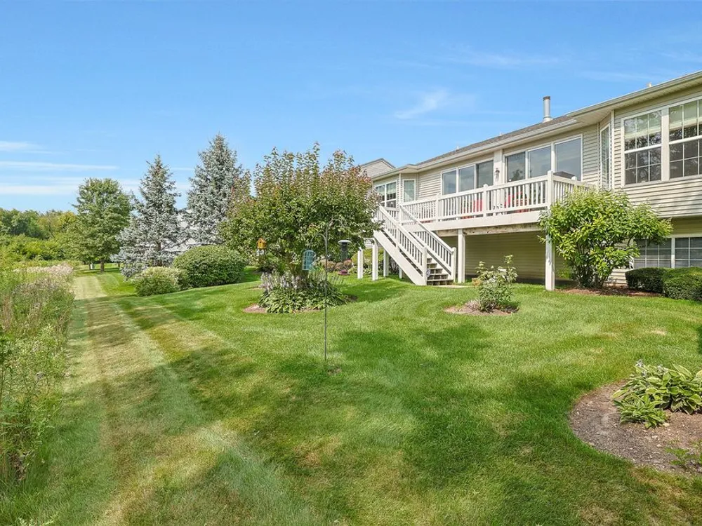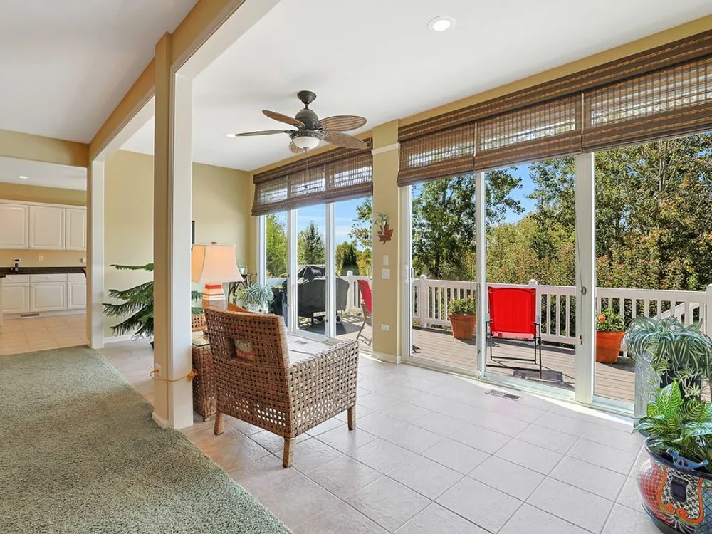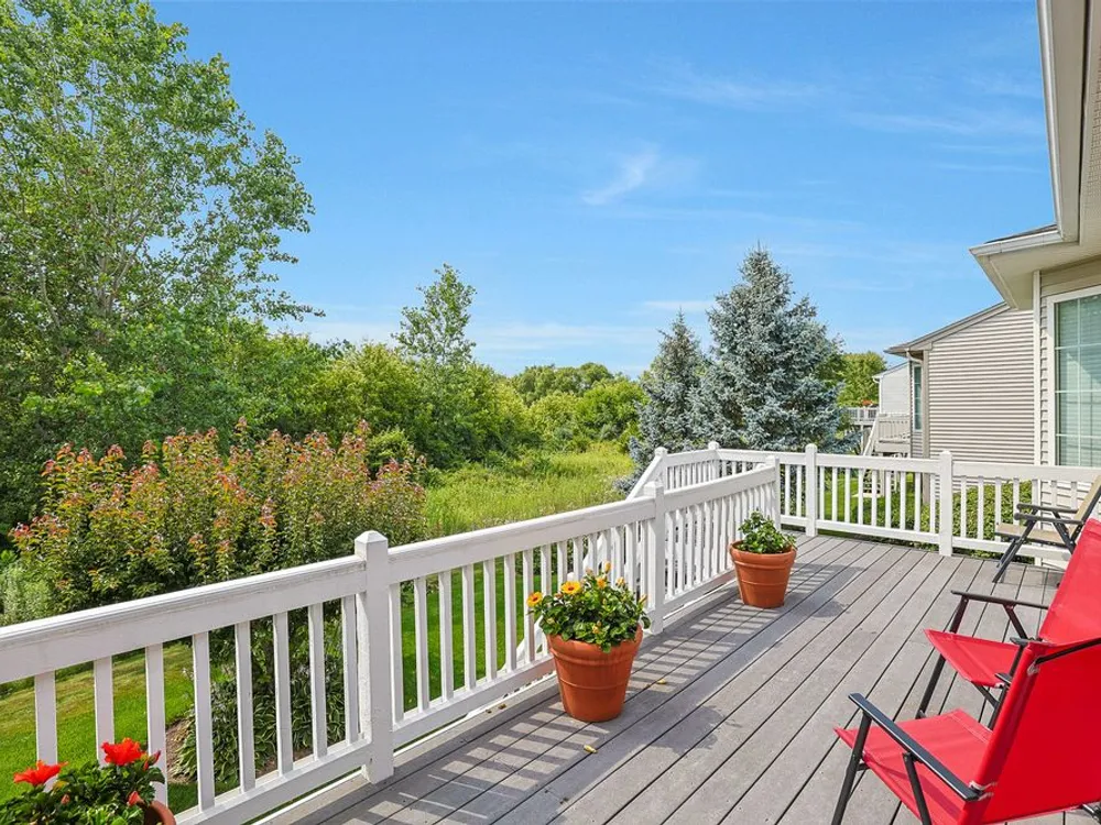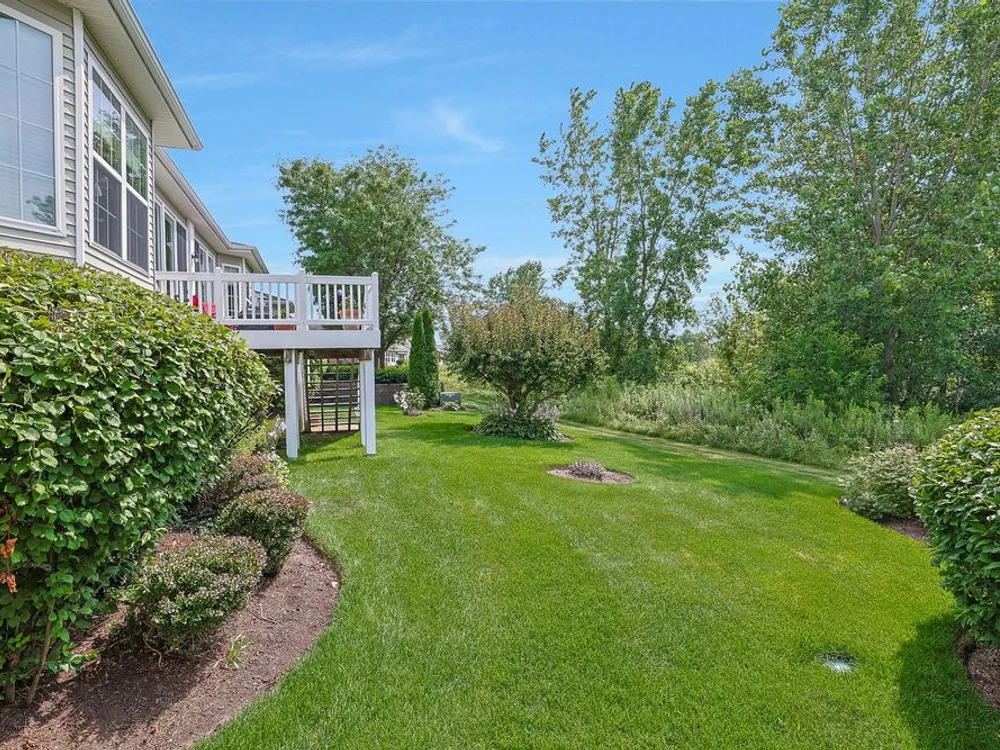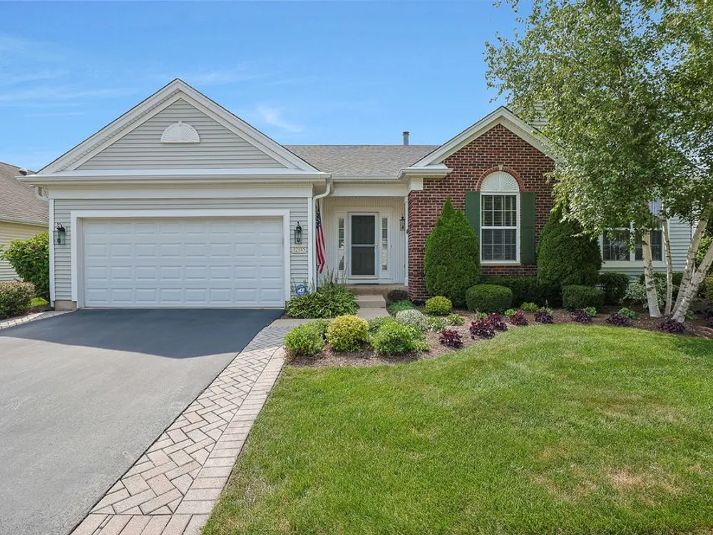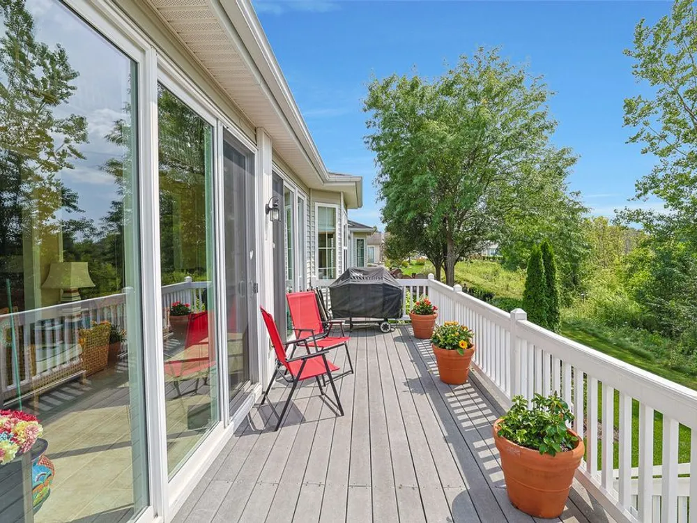 Welcome to this rarely available, meticulously maintained Dearborn model in Del Webb's Sun City. Perfectly nestled on a quiet street and backing to lush trees and wetlands -This home offers the peace and privacy you've been waiting for. Designed for comfort and convenience, this spacious home features an open concept floorplan with 3 generously sized bedrooms, a versatile den, and 2 full bathrooms, all on the main level. The light-filled garden room features floor to ceiling windows with amazing year-round views and 2 sliders walking out the maintenance free Trex deck. The cozy family room with surround sound system and gas fireplace offer beautiful views, while the large kitchen impresses with quartz countertops, GE Profile appliances, recessed lighting, a spacious snack bar and a large eating area with bay window overlooking the lush wetlands, ideal for both casual meals and entertaining. Retreat to the serene primary suite complete with a bay window, crown molding, large walk-in closet with custom organizers and a spa-style ensuite bath with whirlpool tub, dual vanity, and separate shower with tile surround. Additional highlights include extended cabinets in the kitchen and laundry room, professional landscaping with lawn irrigation system, driveway ribbons and an expansive English basement with rough-in plumbing for a future bathroom. Updates include Roof 2013, HVAC 2024 and Water Heater 2023!! All of this in Del Webb's vibrant, amenity-rich 55+ community-where every day feels like a getaway.
