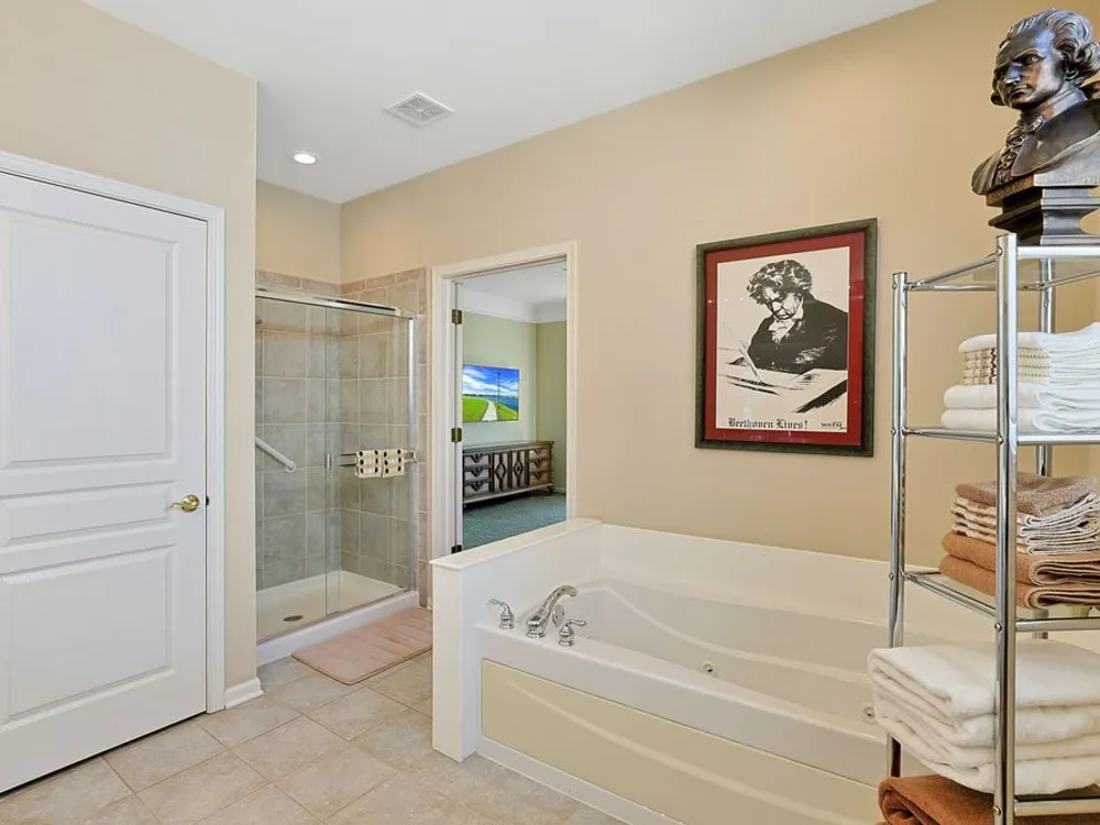 - Bedroom on Main Level, Full Bathroom, Walk-In Closet(s), High Ceilings, Open Floorplan, Pantry, Quartz Counters, Dining Area, Sunroom, Den, Whirlpool, Separate Shower, Dual Sinks, Separate/Formal Dining Room